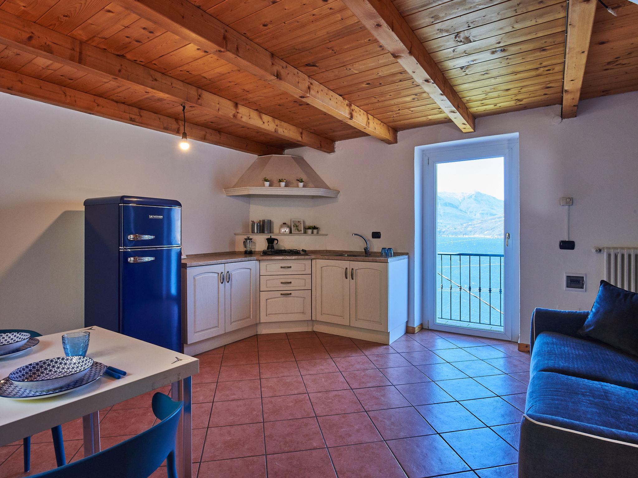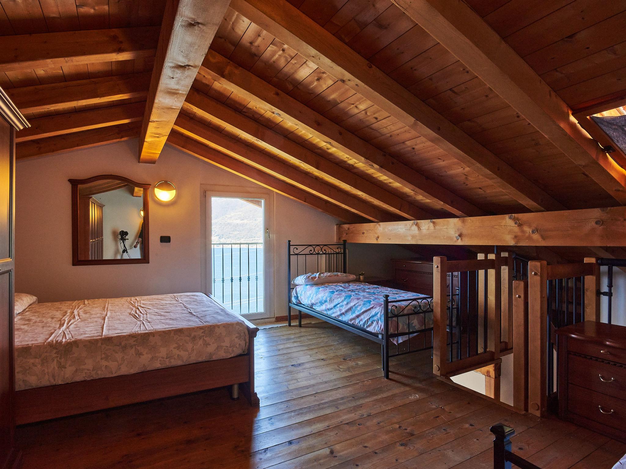 "Dado", 2-room apartment 55 m2, on the upper floor, south-east facing position. Bright, partly renovated in 2022, comfortable furnishings: open living/dining room with 1 sofabed, dining table and digital TV. Open kitchen (4 gas rings, toaster, microwave). Exit to the garden, to the balcony. Shower/WC. Gas heating, air-conditioning. Top floor: (steep stair) open gallery with sloping ceilings with 2 beds and 1 double bed. Small balcony, large terrace 16 m2. Terrace furniture, balcony furniture, deck chairs (2). Marvellous panoramic view of the lake and the mountains. Facilities: Internet (WiFi). Parking (fenced 1 car). Please note: maximum 1 pet/ dog allowed. Private entrance. Instead of an enclosed bedroom, some sleeping areas are located in an open-plan area (gallery, alcove, etc.). IT097008C2UHBBLSNG