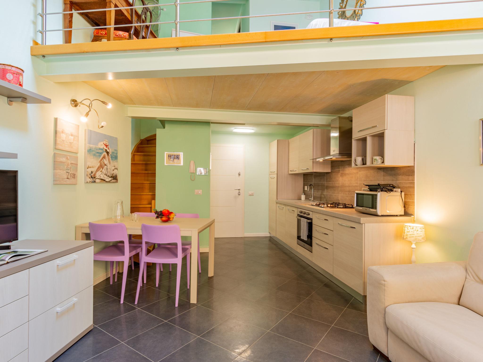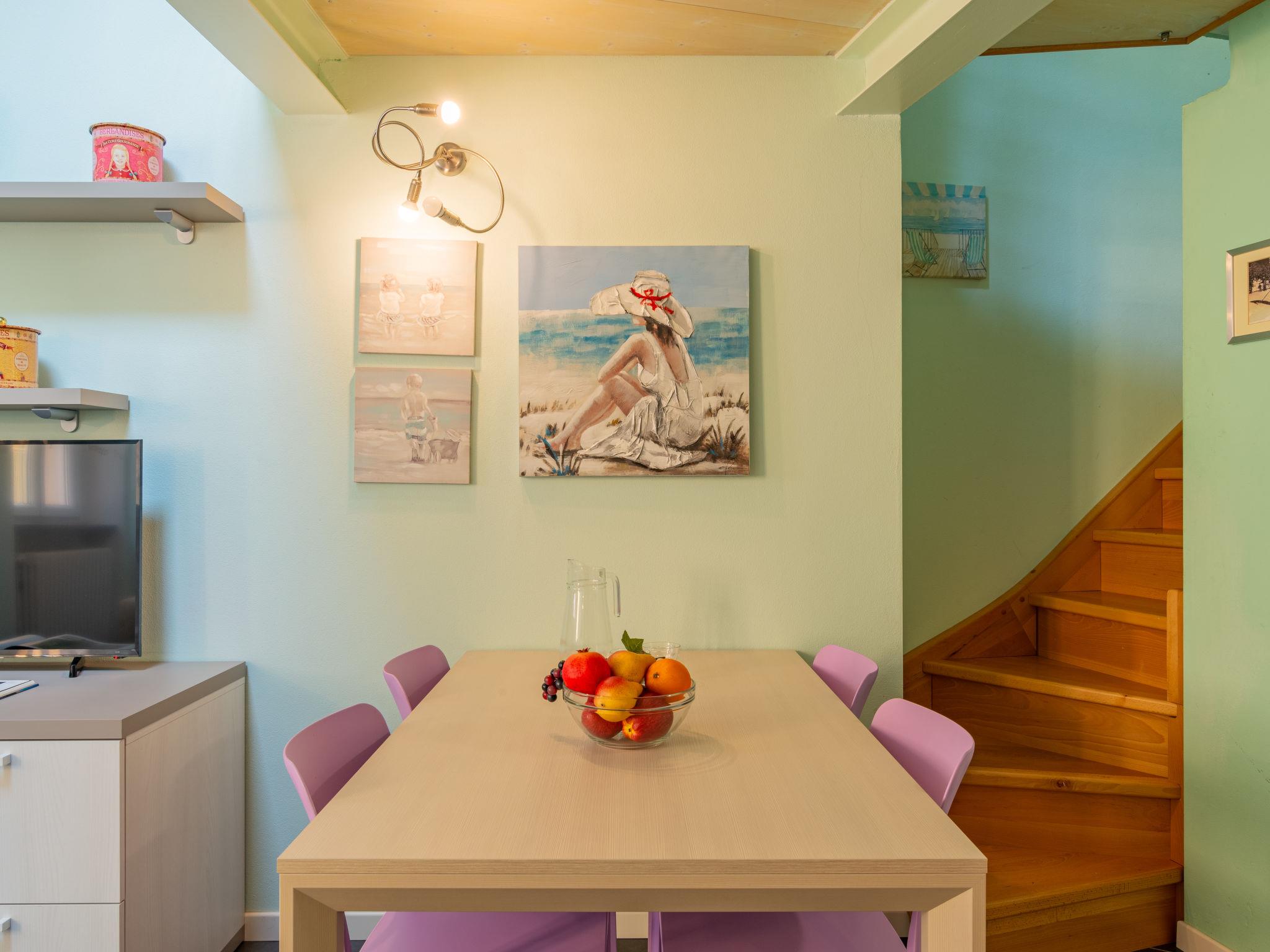 "Blue Diamond", 3-room apartment 79 m2 on 2 levels on 2nd floor. Tasteful furnishings: open living/sleeping room with 1 double sofabed and dining table. Open kitchen (oven, dishwasher, 4 gas rings, toaster, microwave). Upper floor: 1 double bedroom. Open gallery with 1 bed. Shower/bidet/WC. Gas heating. Heating available only from 15.10. to 15.04. Terrace. Terrace furniture, deck chairs (2). Very beautiful view of the mountains and the resort. Facilities: washing machine, hair dryer. Internet (WiFi, free). Please note: non-smokers only. Maximum 1 pet/ dog allowed. No lift. Instead of an enclosed bedroom, some sleeping areas are located in an open-plan area (gallery, alcove, etc.). IT097008C2N7HW5T4M