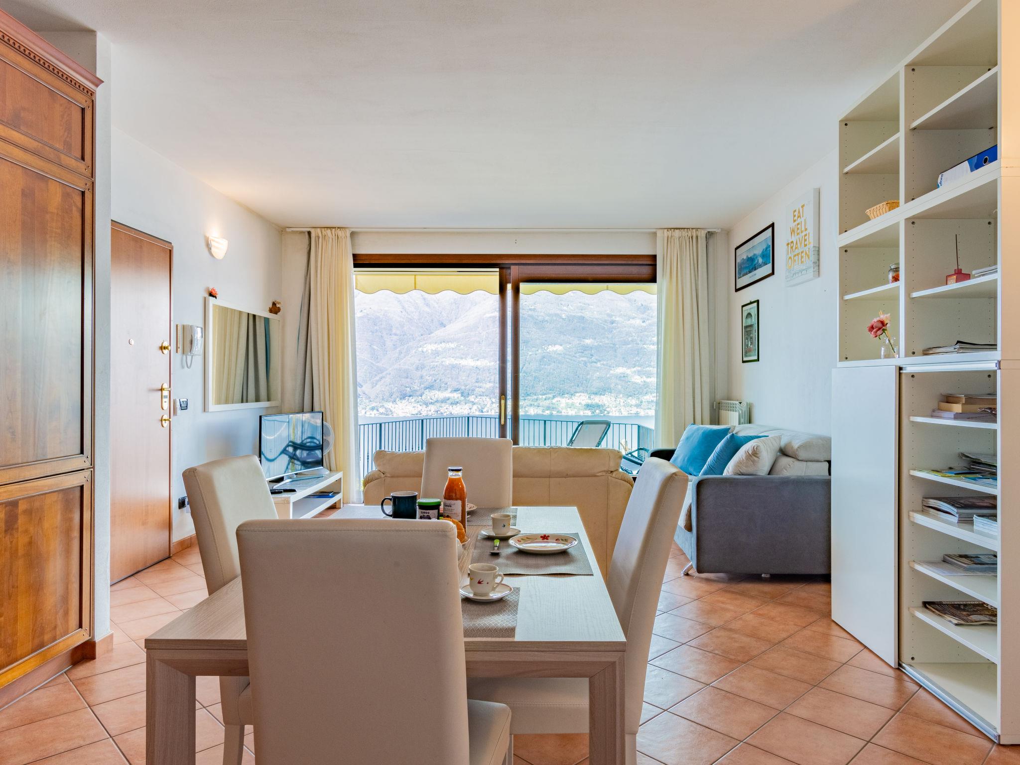 3-room apartment 70 m2 on 1st floor. Comfortable furnishings: living/dining room with panoramic window with TV. Exit to the terrace. 1 double bedroom. 1 room with 2 beds. Kitchenette (4 hot plates, oven, freezer). Shower/bidet/WC. Gas heating (extra). Terrace 20 m2. Terrace furniture. Beautiful panoramic view of the lake and the mountains. Facilities: washing machine, hair dryer. Internet (WiFi, free). Garage. Please note: non-smoking house. Maximum 1 pet/ dog allowed. IT097008C2MUP37JXG