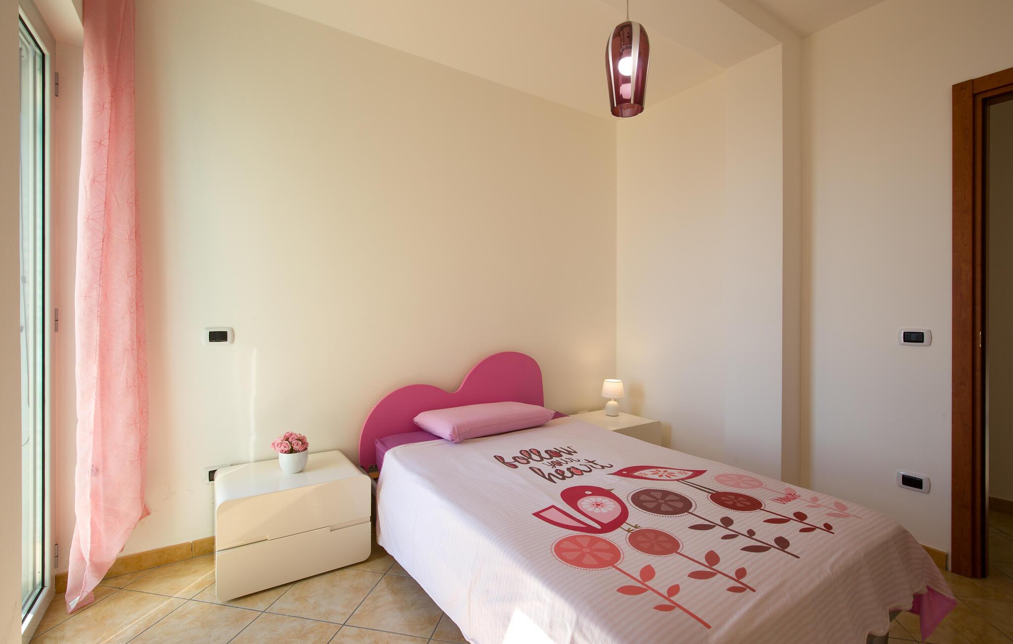 I finder dette hyggelige feriehus tæt på de skønne sandstrande og dejlige kyststrækninger i Calabrien. Det er meget praktisk og komfortabelt og er ideelt til en familie med børn og et kæledyr. Træd ud på terrassen hver morgen og nyd jeres første kop kaffe, mens I planlægger dagen i ro og mag. På terrassen og i haven finder I både plads til at slappe af og til at lege og have det sjovt. Sæt jer godt til rette i havemøblerne med en kold forfriskning, mens børnene gynger eller leger i haven.