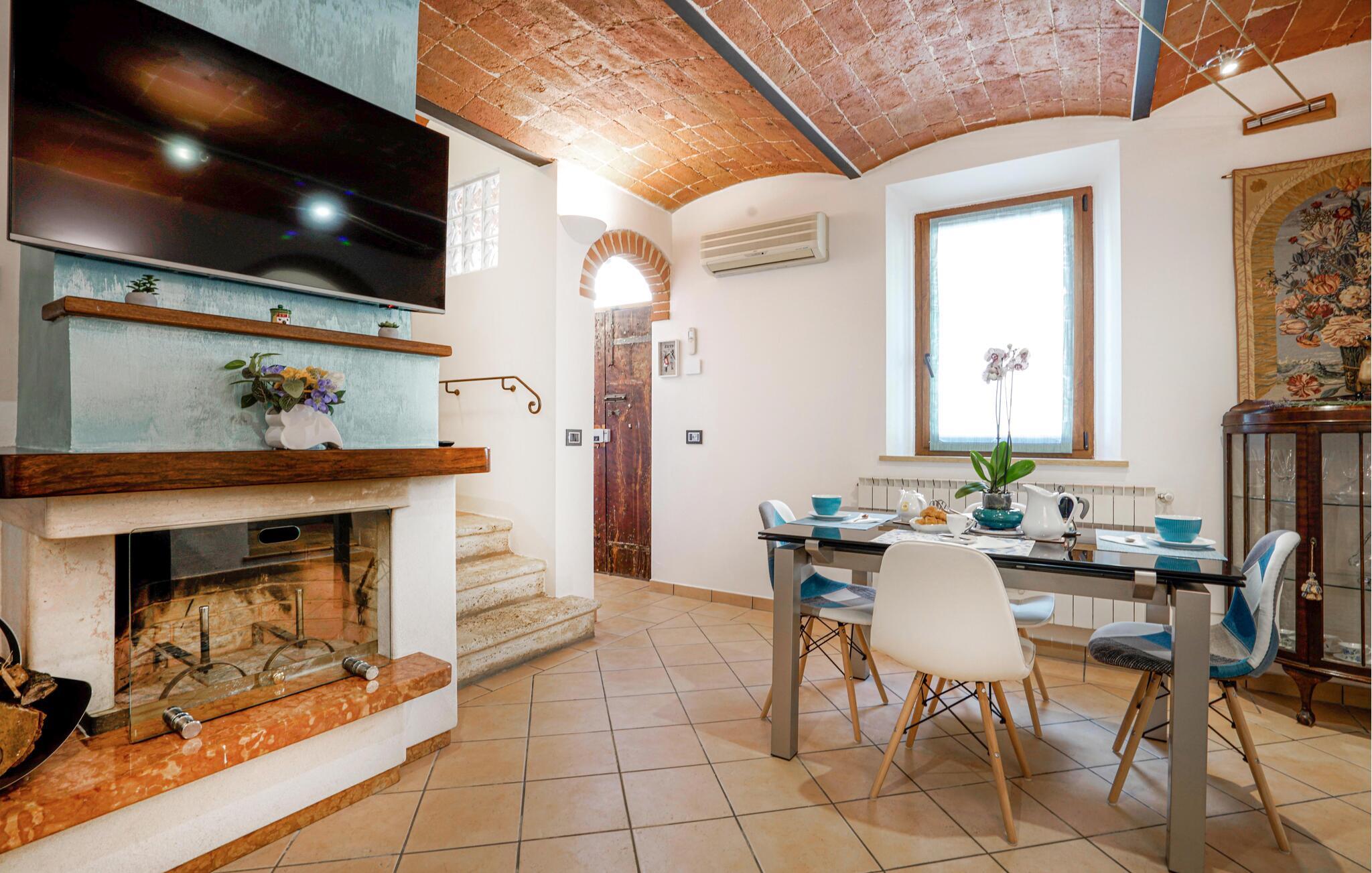 Den rustikke, typisk toscanske stil i denne lejlighed i Bettolle gør brug af varme farver og har en hyggelig atmosfære. Den åbne stue og spiseplads lægger op til afslappende aftener. Slå jer ned i den komfortable sofa og nyd et glas lokal vin efter en begivenhedsrig dag. Tilbered jeres egne måltider i køkkenet med friske råvarer fra det lokale marked. På markedet i Bettolle finder I ikke kun friske produkter, men også typiske toscanske specialiteter.