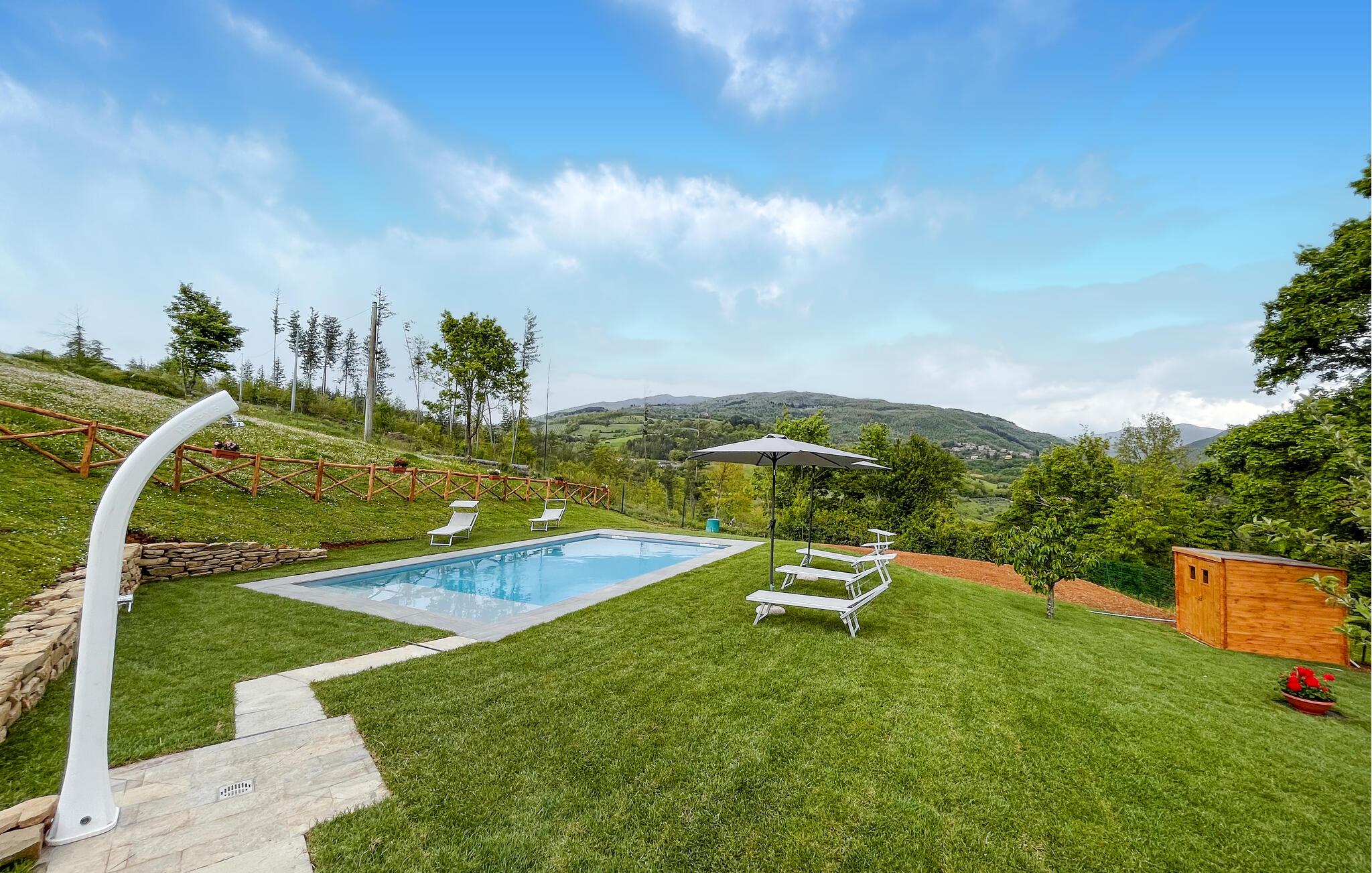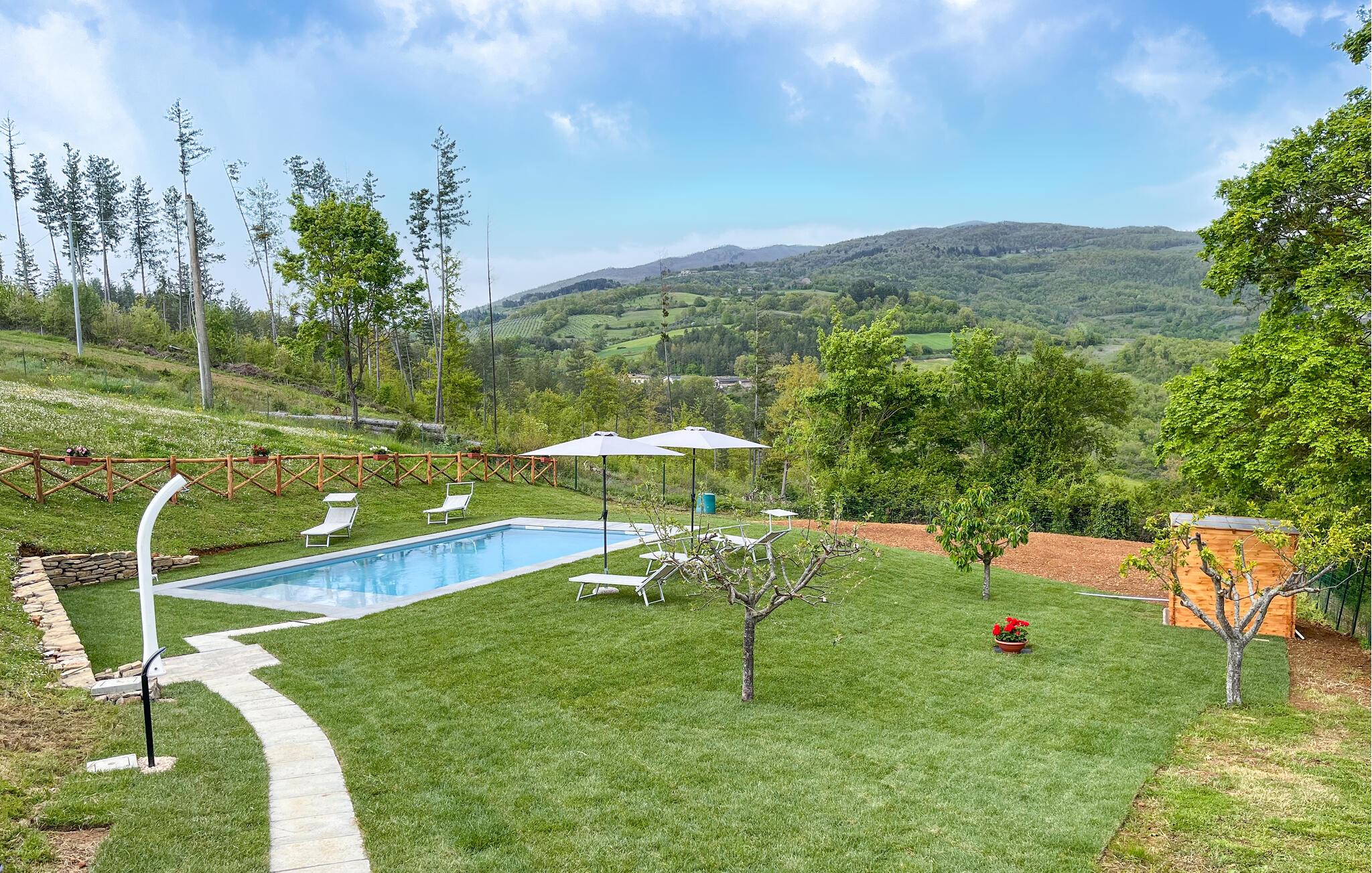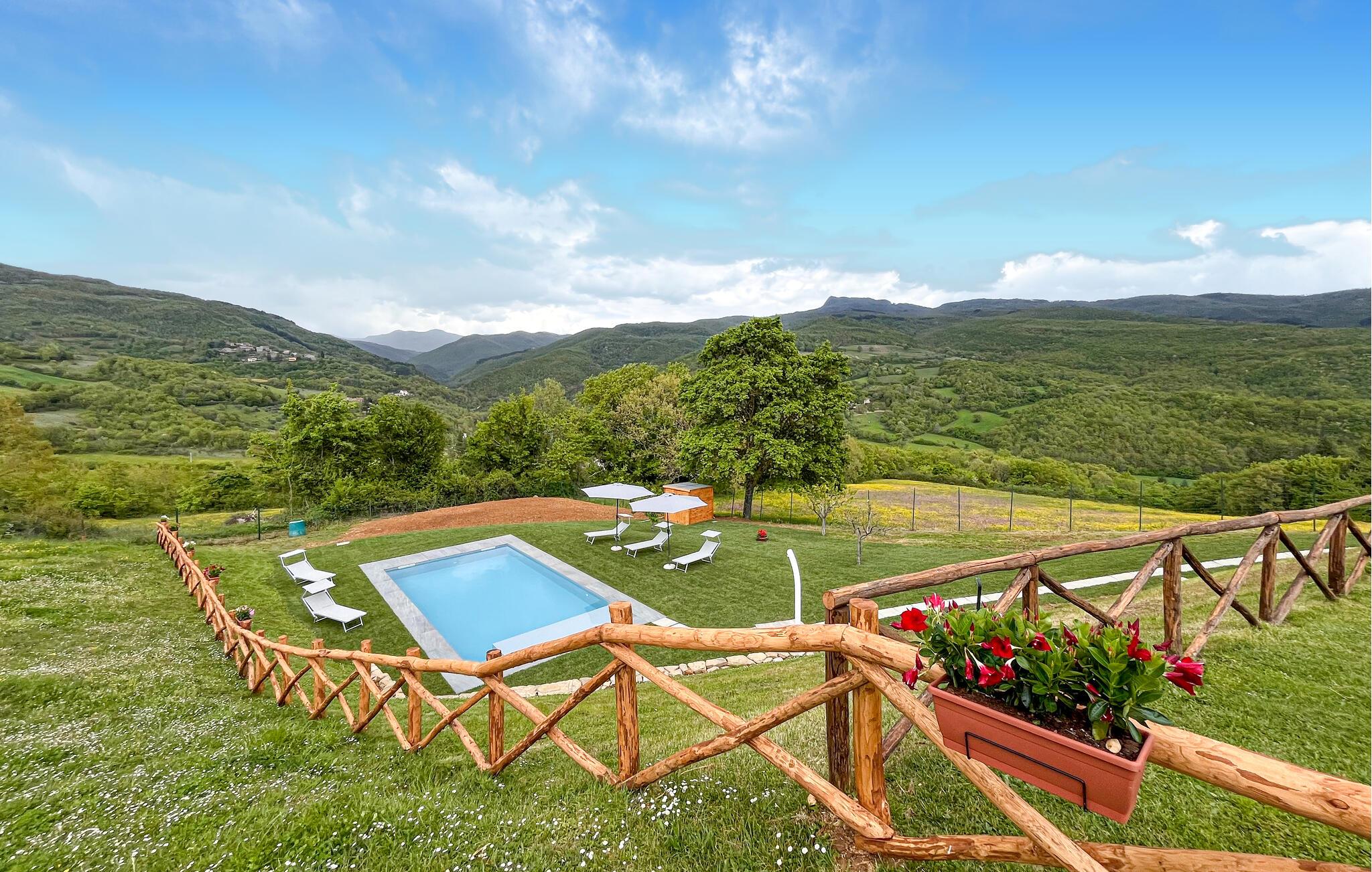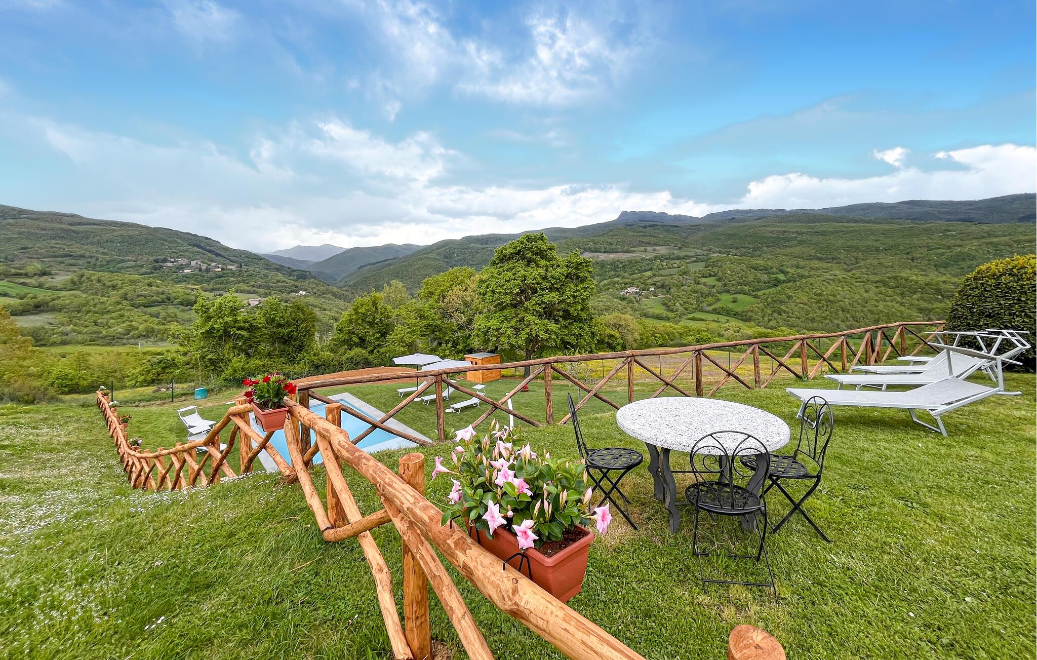 Med en idyllisk beliggenhed indbyder dette historiske landsted med udendørs pool og spabad til et ophold langt væk fra hverdagens stress og jag. Indenfor er atmosfæren autentisk, rustik og varm. Ja, her vil I straks mærke følelsen af velvære. Nyd den storslåede udsigt over det maleriske landskab, spis jeres måltider sammen ved spisebordet og snak om dagens skønne oplevelser i sofaen foran den knitrende pejs. I den store anlagte have står den på ren afslapning. Luk øjnene på en af liggestolene eller lad jer massere i spabadet under åben himmel med et glas rosé og en fortryllende panoramaudsigt over det magiske grønne landskab. Nyd de lune sommeraftener under den sydlandske nattehimmel. Måske flytter I alle måltiderne udenfor.