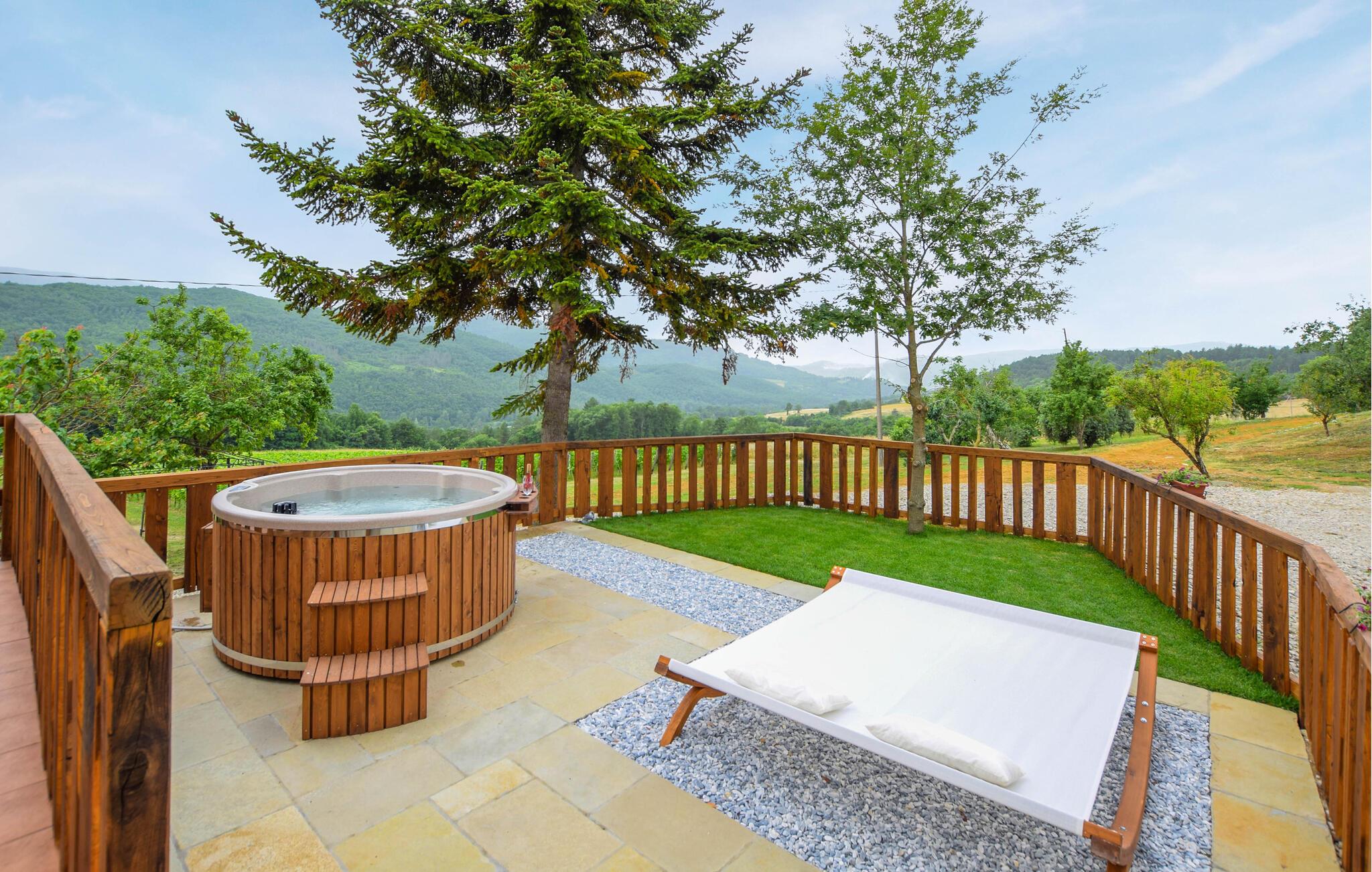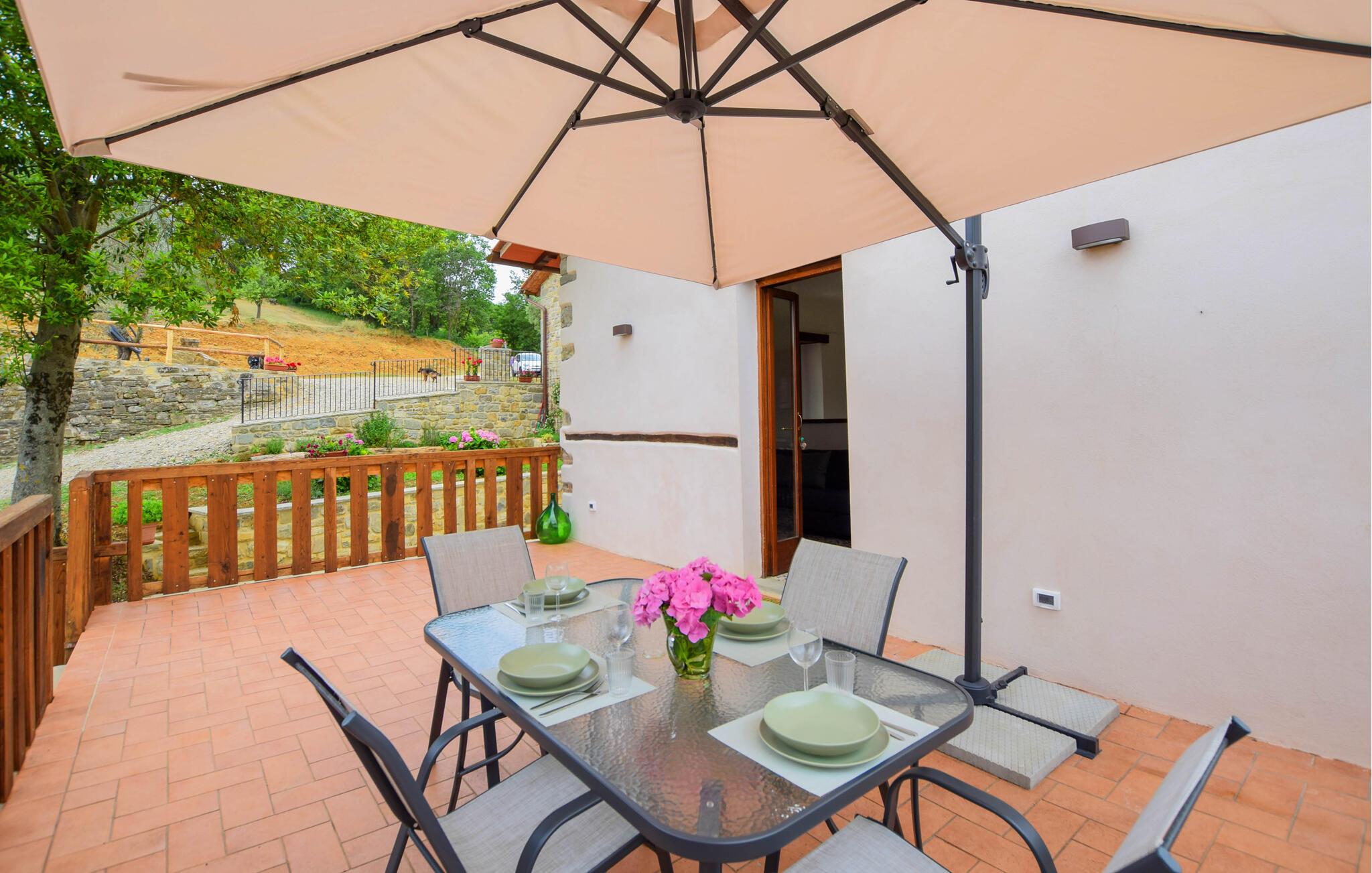 Slap af i dette moderne feriehus med et vildmarksbadeværelse. Dette charmerende dobbelthus ligger midt i de grønne bakker i Casentino Park. Møblerne kombinerer rustik charme med moderne komfort, hvilket skaber en hyggelig, afslappende atmosfære, hvor I kan føle jer hjemme. Sammen med jeres kære kan I lægge jeres hverdag bag jer, lave mad sammen eller blot lægge fødderne op i sofaen. Nyd jeres tid i den private, indhegnede have med et vildmarksbad og en betagende udsigt over de omkringliggende vinmarker og bjerge. Den eksklusive terrasse lægger op til at blive hængende - optimal til morgenmad i morgensolen eller afslappede aftener for at afslutte dagen i fred. Området omkring Bibbiena byder på utallige muligheder for udflugter og udforskning. Beliggende i hjertet af Casentino National Park, kan I nyde det betagende landskab på vandre- eller cykelture. Kulturinteresserede vil få noget for pengene i nærliggende byer som Arezzo og Firenze, som er rige på kunst og historie. Udforsk middelalderlandsbyer, smag lokale vine eller slap af ved bredden af Arno-floden – Bibbiena er den perfekte base for en uforglemmelig tid i Toscana.