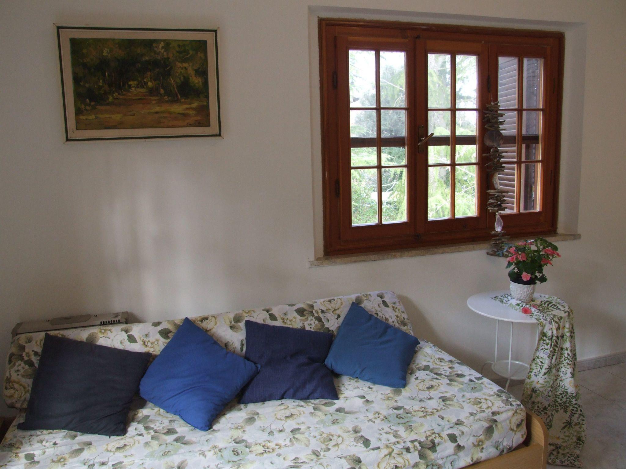 Lilla is an elegant flat with a large garden located on the first floor of a villa surrounded by greenery. The flat consists of a kitchenette with a dining area, a living room with a double sofa bed, two double bedrooms and a bathroom with shower and bidet. The accommodation has access to the garden where there is an open dining area with barbecue and wood-burning oven. Lilla is located in the pine forest of Sassetta, in the calm and tranquillity of the countryside. It is about 800 metres from the centre of Sassetta and 12 km from the sea at Castagneto Carducci. Guests have free access to a botanical garden and a private beach located 17 kilometres from the Villa.