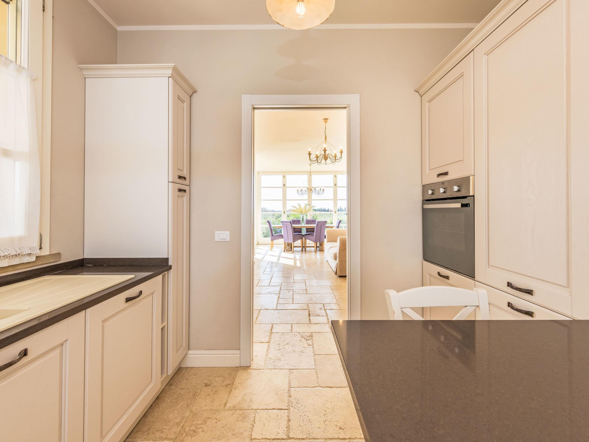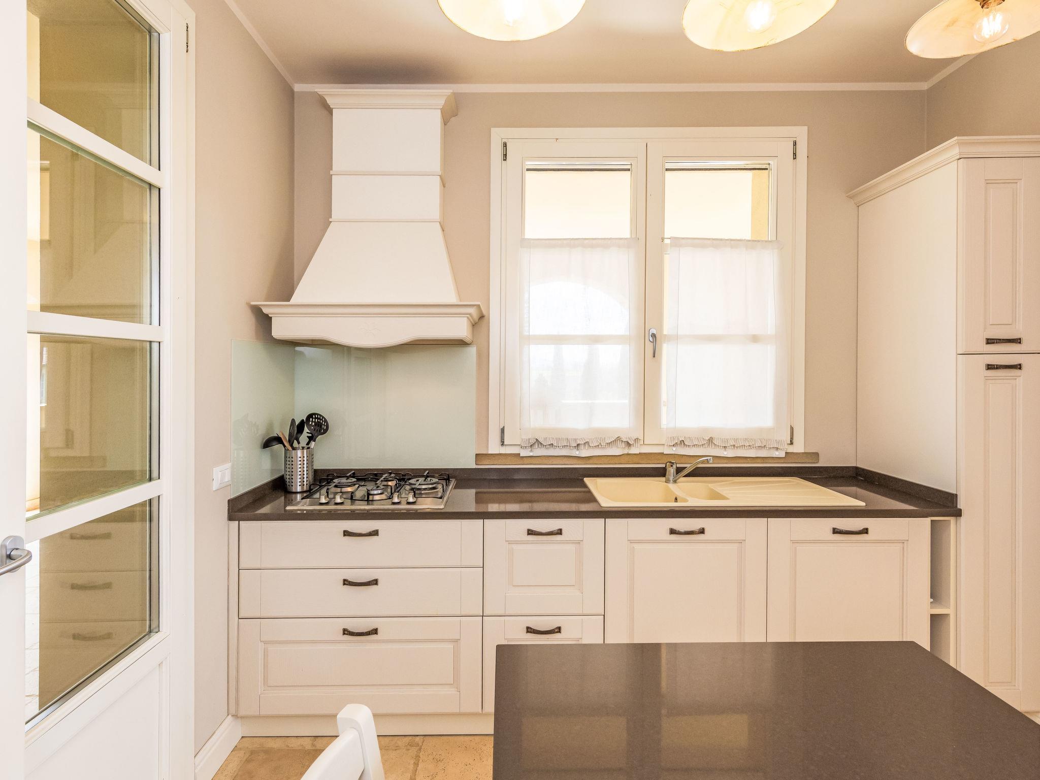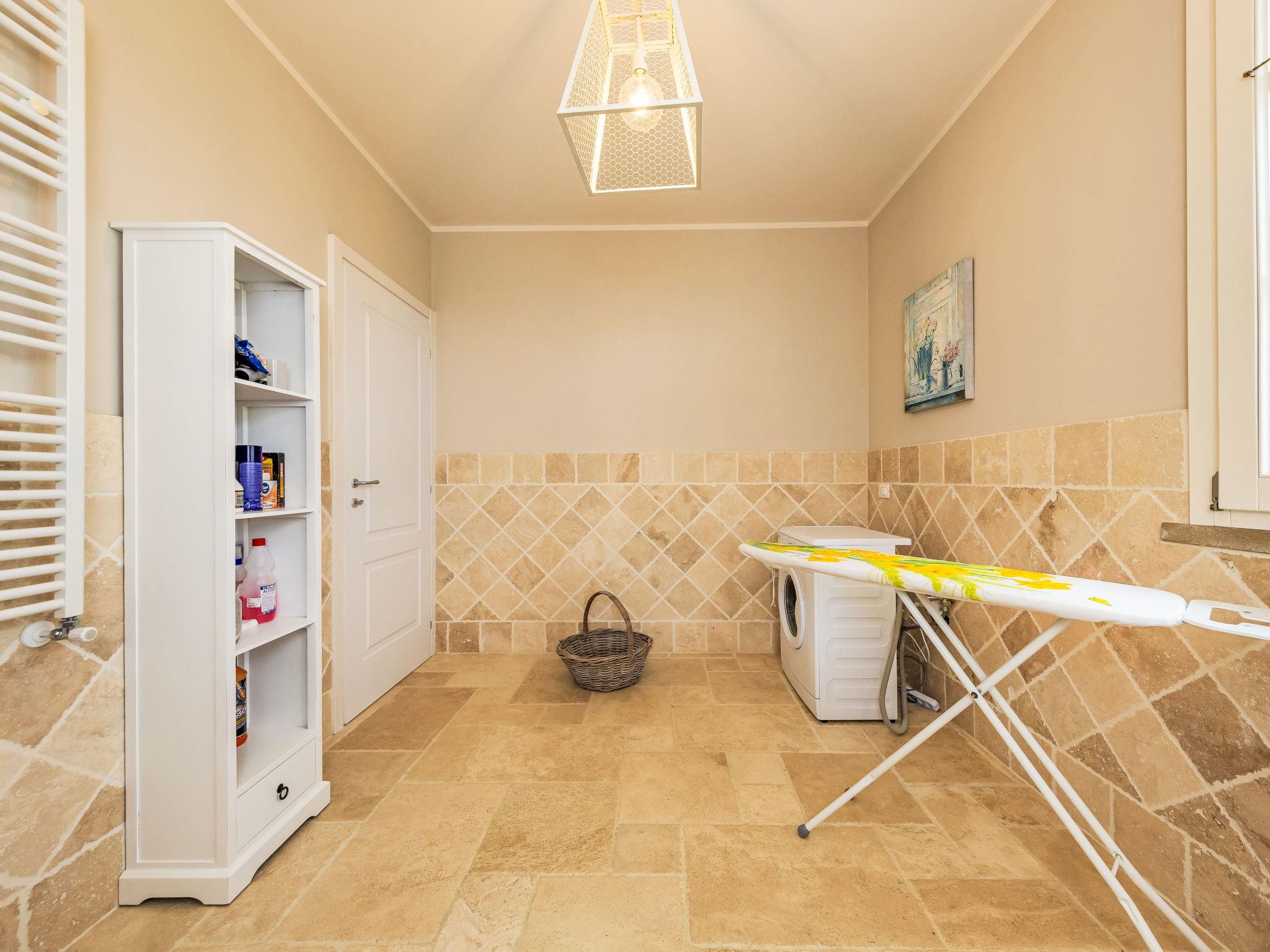 5-room villa 150 m2. Spacious, comfortable and tasteful furnishings: living/dining room with panoramic window with 1 double sofabed, dining table and air conditioning. Exit to the veranda. 1 room with 1 double bed. 1 room with 1 double bed. Exit to the loggia. Open kitchen (dishwasher, Gas stove, 4 gas rings, toaster, kettle, electric coffee machine). Shower/bidet/WC. Electric heating, gas heating, air-conditioning. On the lower ground floor: 1 room with 1 double bed. 1 room with 2 beds. 2 showers/bidet/WC. Terrace 70 m2, roofed. Terrace furniture, box-room. Beautiful panoramic view of the swimming pool and the countryside. Facilities: washing machine, dryer, iron, mosquito net, children's high chair, baby cot, hair dryer. Internet (WiFi, free). Parking. Please note: non-smokers only. 2 small pets/ dogs allowed. Smoke alarm, fire extinguisher. IT049001B4IKBDUL7V