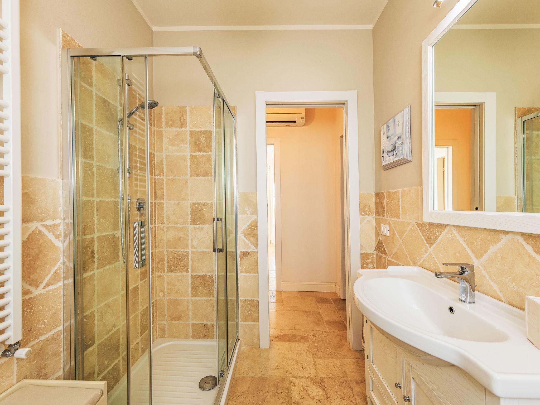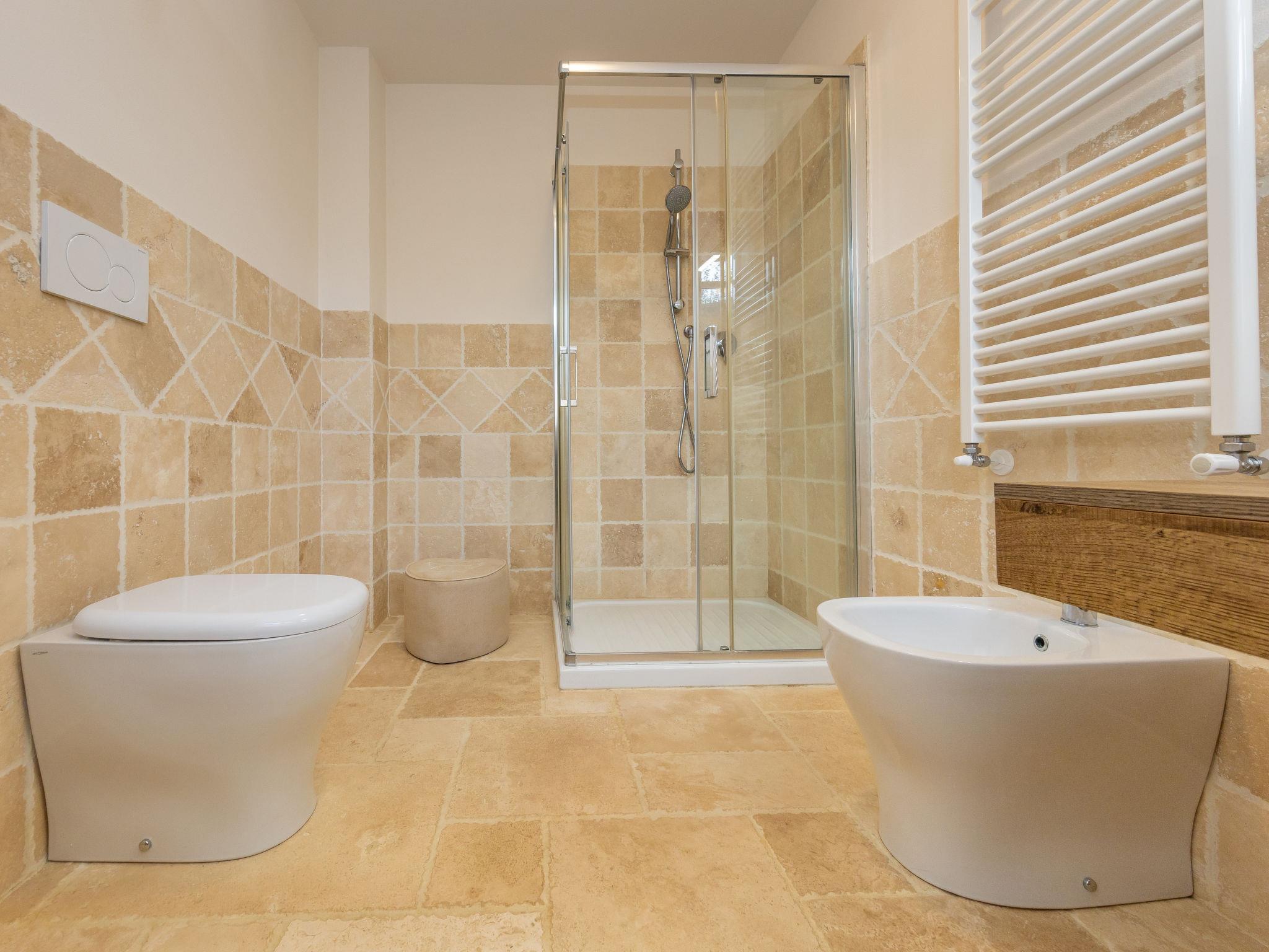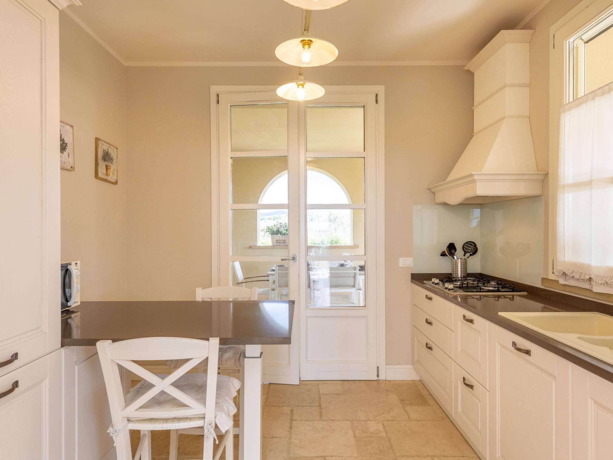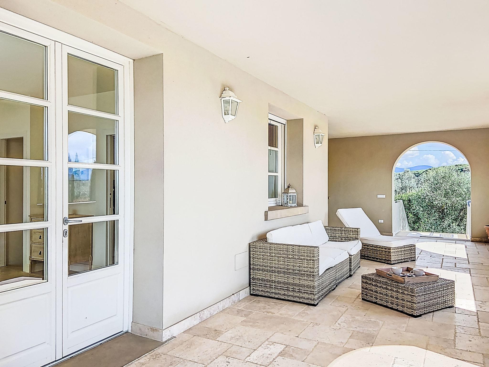 5-room villa 150 m2. Spacious, comfortable and tasteful furnishings: living/dining room with panoramic window with 1 double sofabed, dining table and air conditioning. Exit to the veranda. 1 room with 1 double bed. 1 room with 1 double bed. Exit to the loggia. Open kitchen (dishwasher, Gas stove, 4 gas rings, toaster, kettle, electric coffee machine). Shower/bidet/WC. Electric heating, gas heating, air-conditioning. On the lower ground floor: 1 room with 1 double bed. 1 room with 2 beds. 2 showers/bidet/WC. Terrace 70 m2, roofed. Terrace furniture, box-room. Beautiful panoramic view of the swimming pool and the countryside. Facilities: washing machine, dryer, iron, mosquito net, children's high chair, baby cot, hair dryer. Internet (WiFi, free). Parking. Please note: non-smokers only. 2 small pets/ dogs allowed. Smoke alarm, fire extinguisher. IT049001B4IKBDUL7V