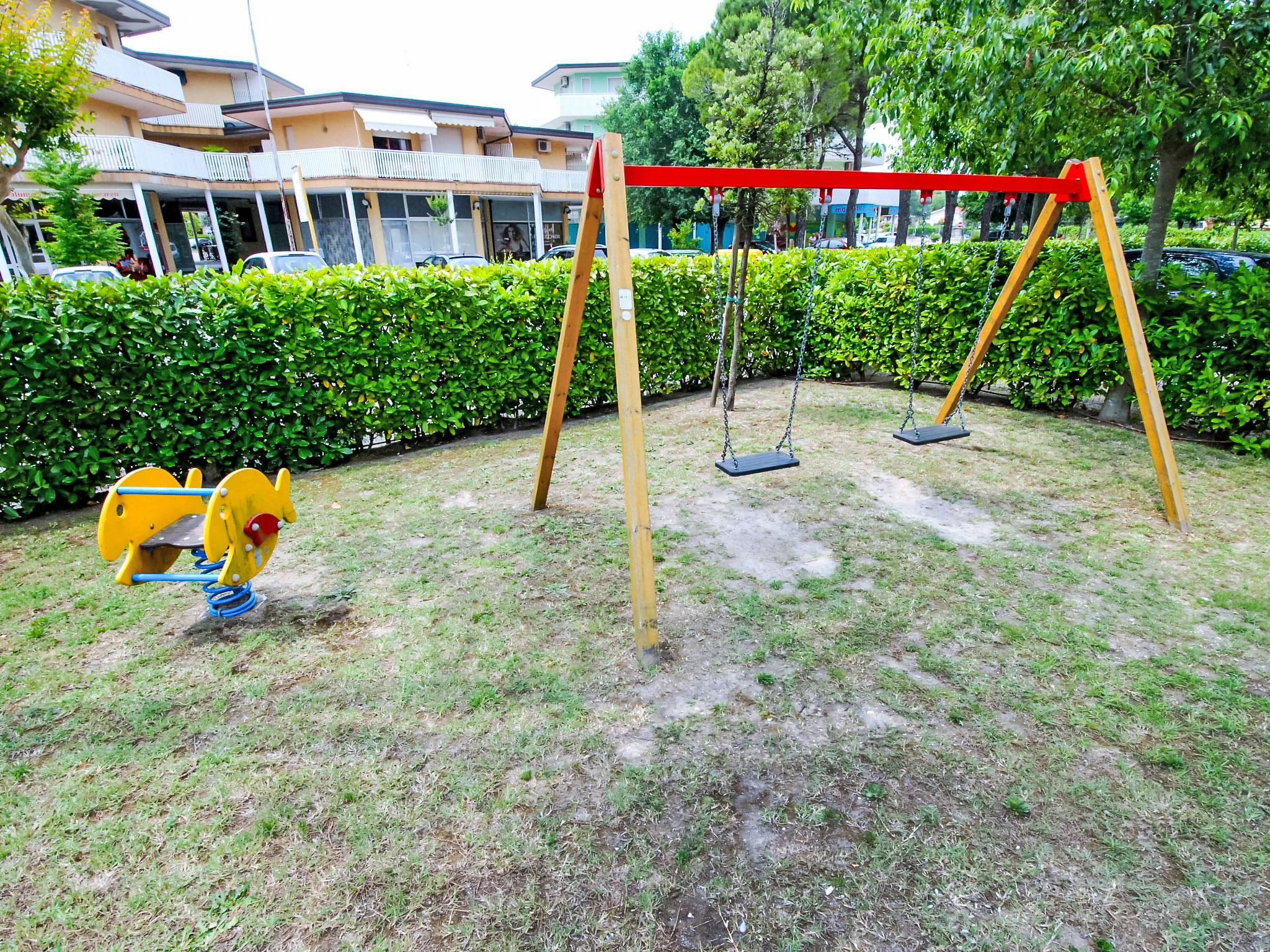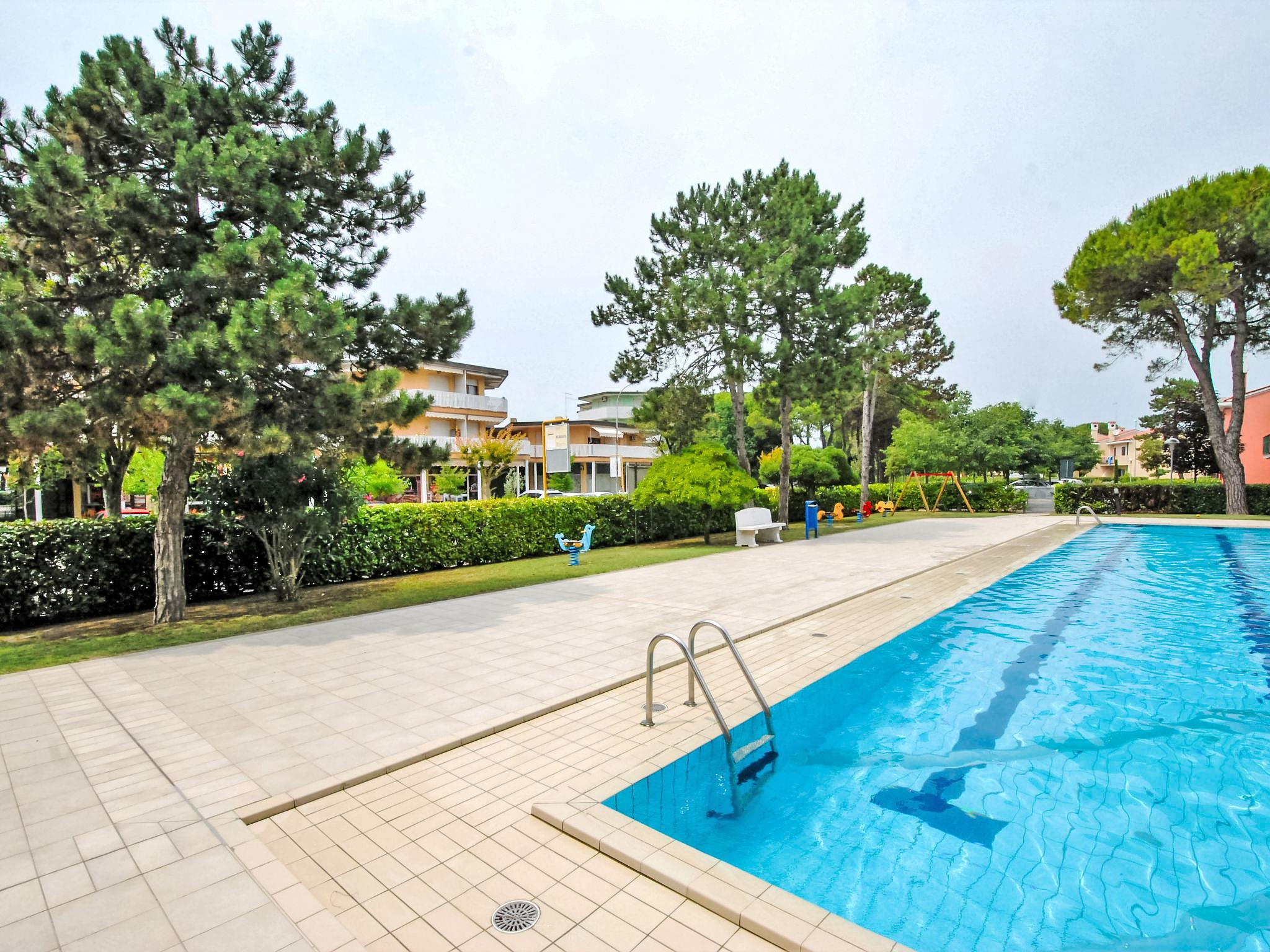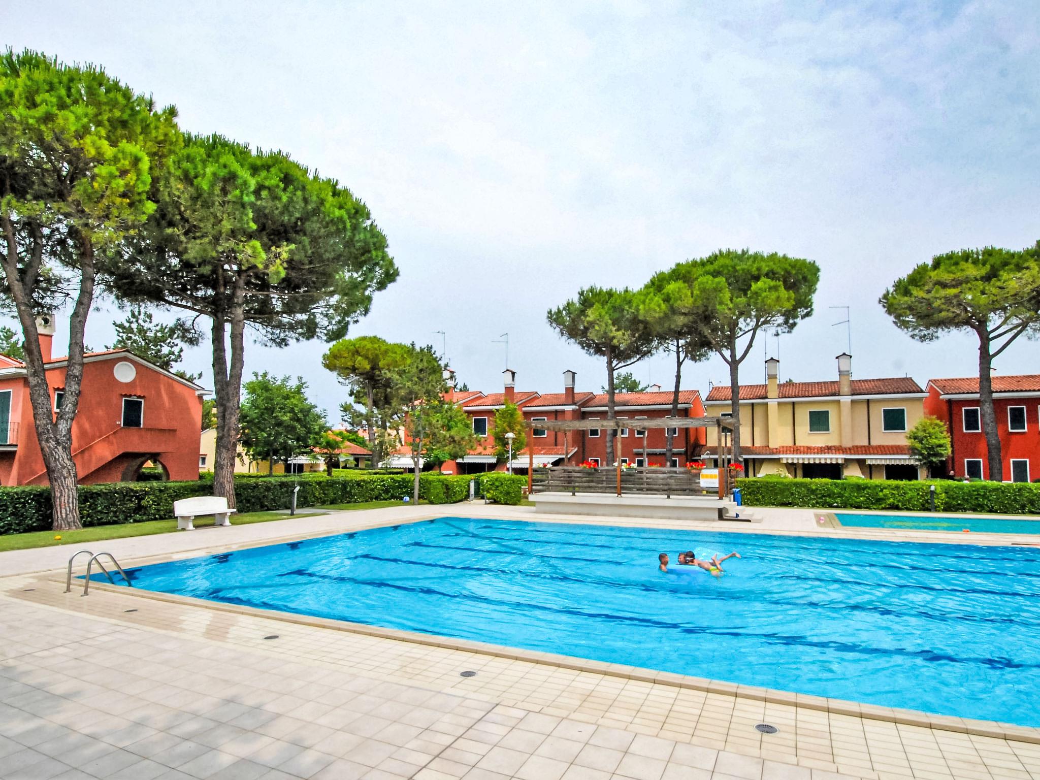 Cosy, comfortable residence "Michelangelo", terraced. In the centre of Bibione, excellent location: right in the centre but still quiet, 850 m from the sea, from the beach. For shared use: large garden with lawn and trees, swimming pool fenced (25 x 35 m, depth 150 - 150 cm, seasonal availability: 15.May. - 15.Sep.). Children's pool, outdoor shower, children's playground, parking at the house. Supermarket 500 m, restaurant, bar, café 300 m, bus stop 150 m, sandy beach, thermal baths 850 m. Please note: suitable for families. The photograph shows a typical example. Additional accommodations can be booked.