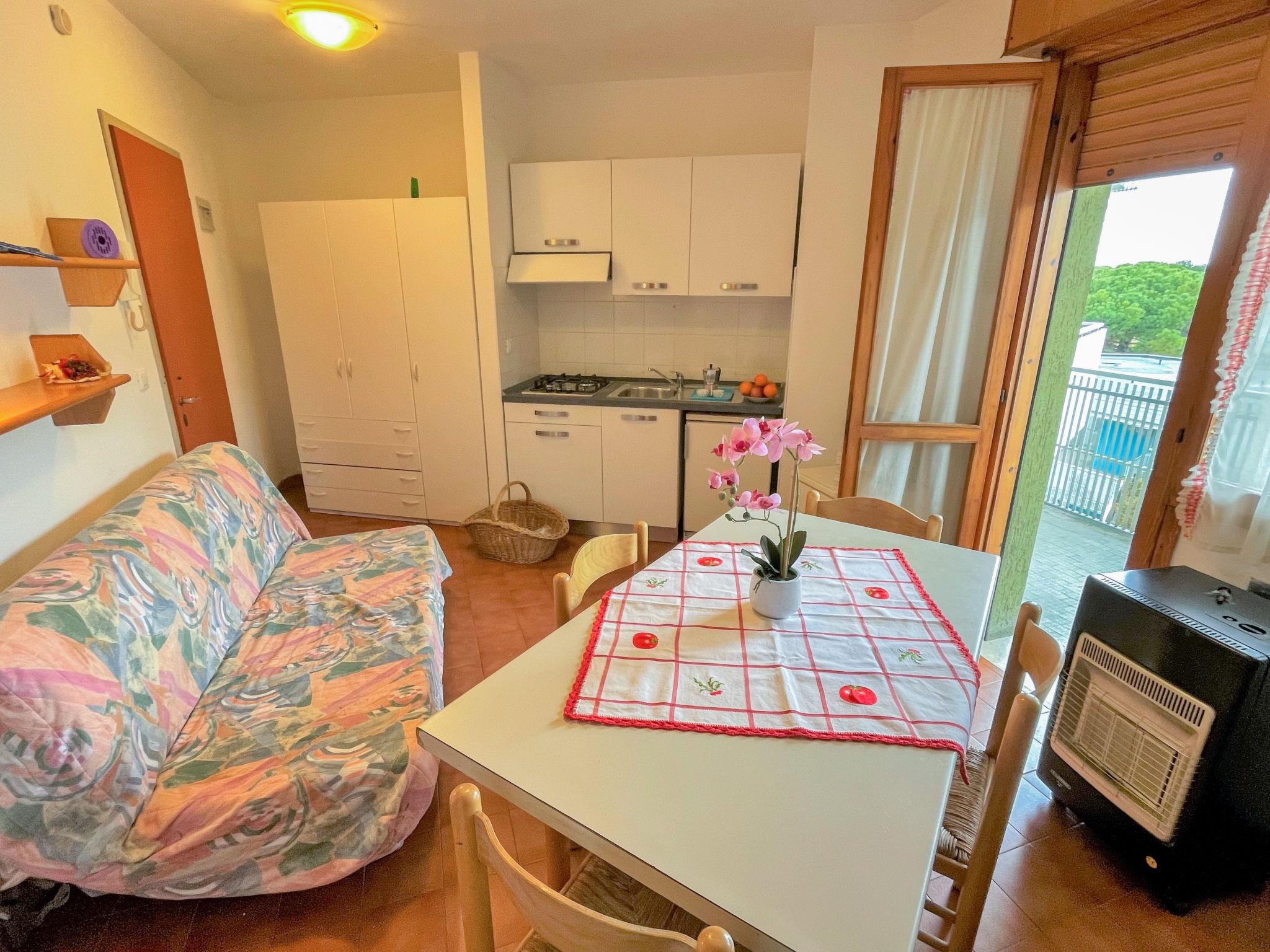 Residence "Moschettieri". In the centre of Bibione, from the sea, 650 m from the beach. Public parking on the road. Supermarket, restaurant, bar 500 m, café 200 m, bus stop 100 m, sandy beach 400 m, thermal baths 300 m. Please note: the photograph shows a typical example. Additional accommodations can be booked.
