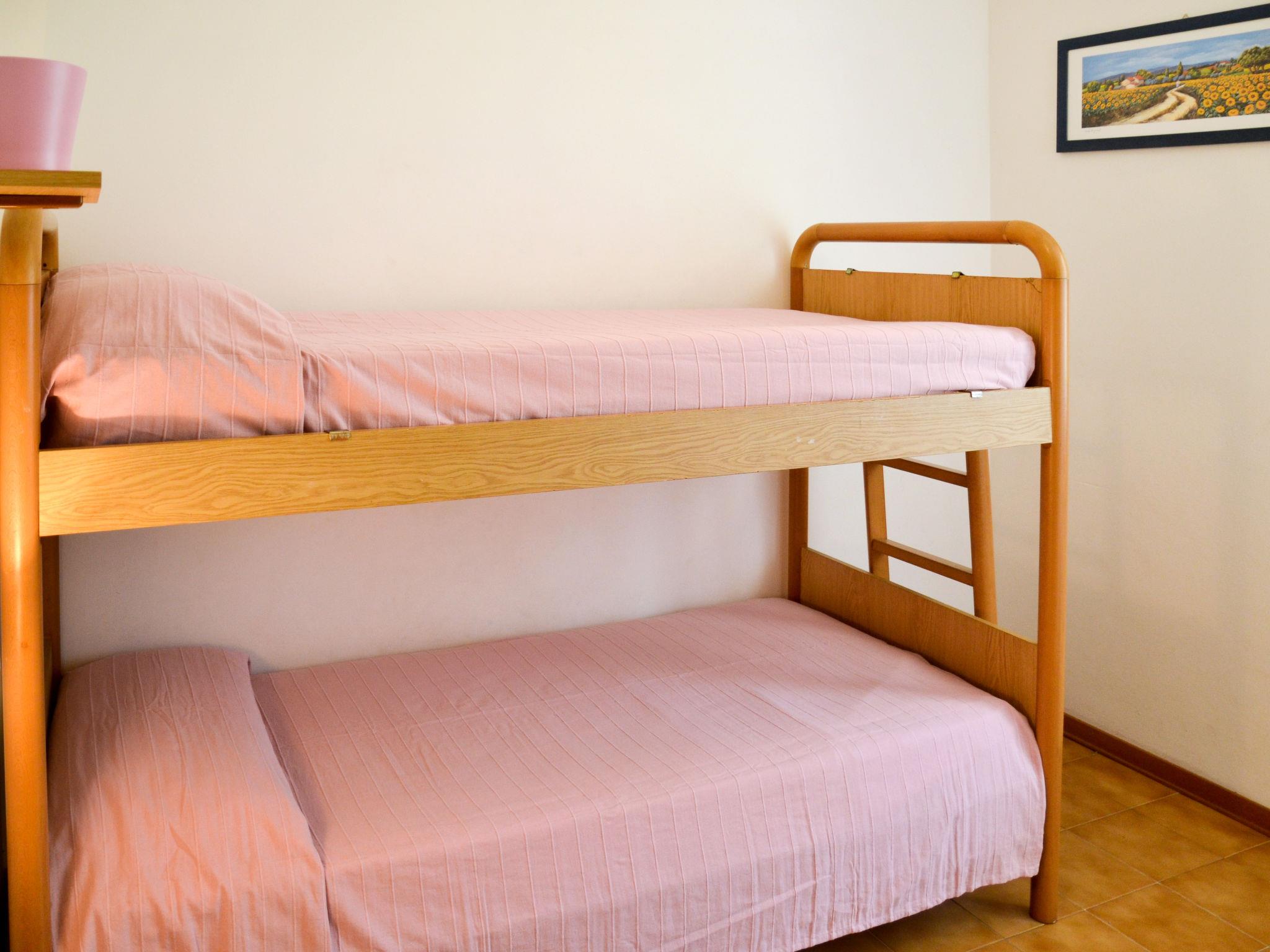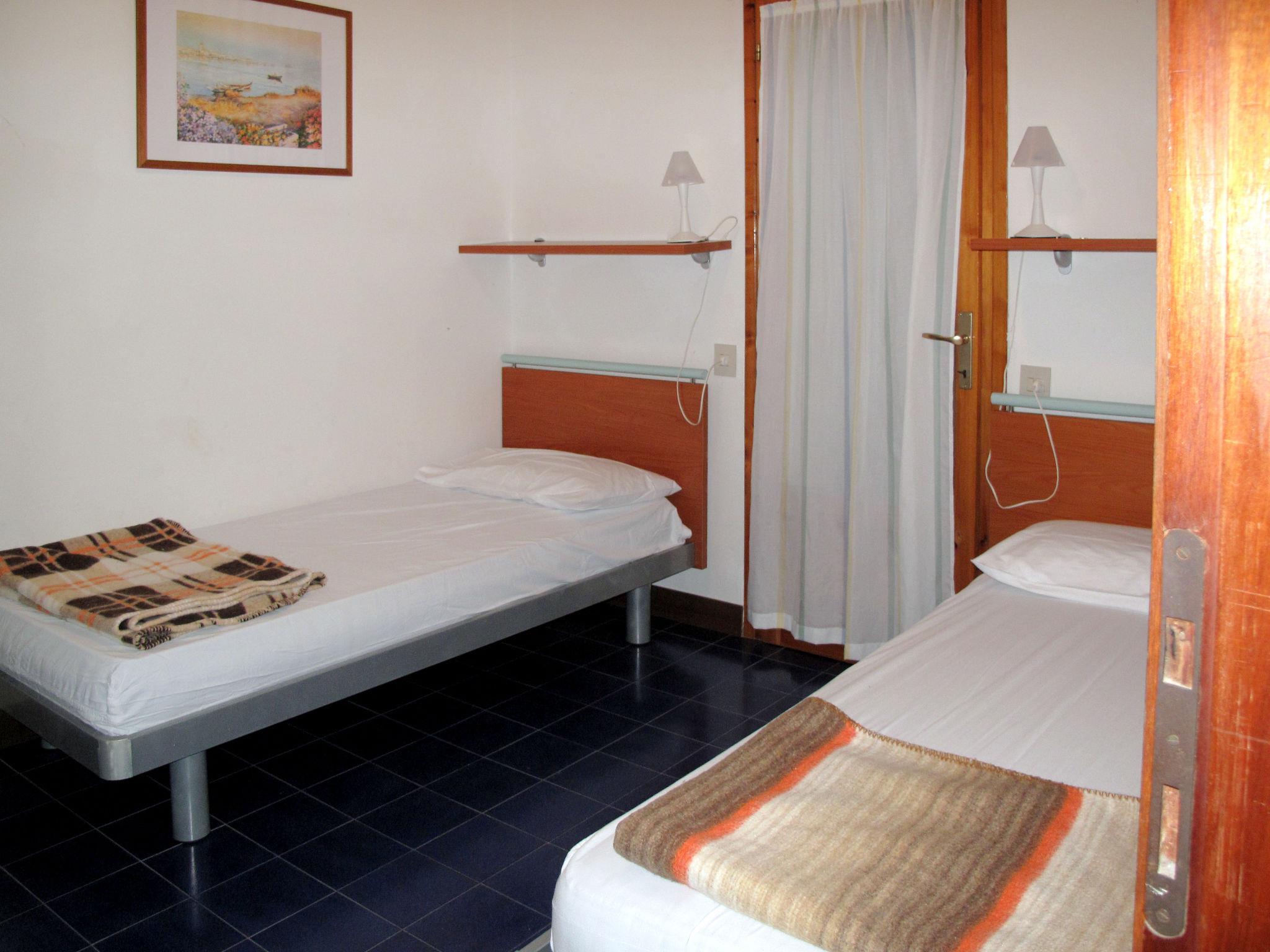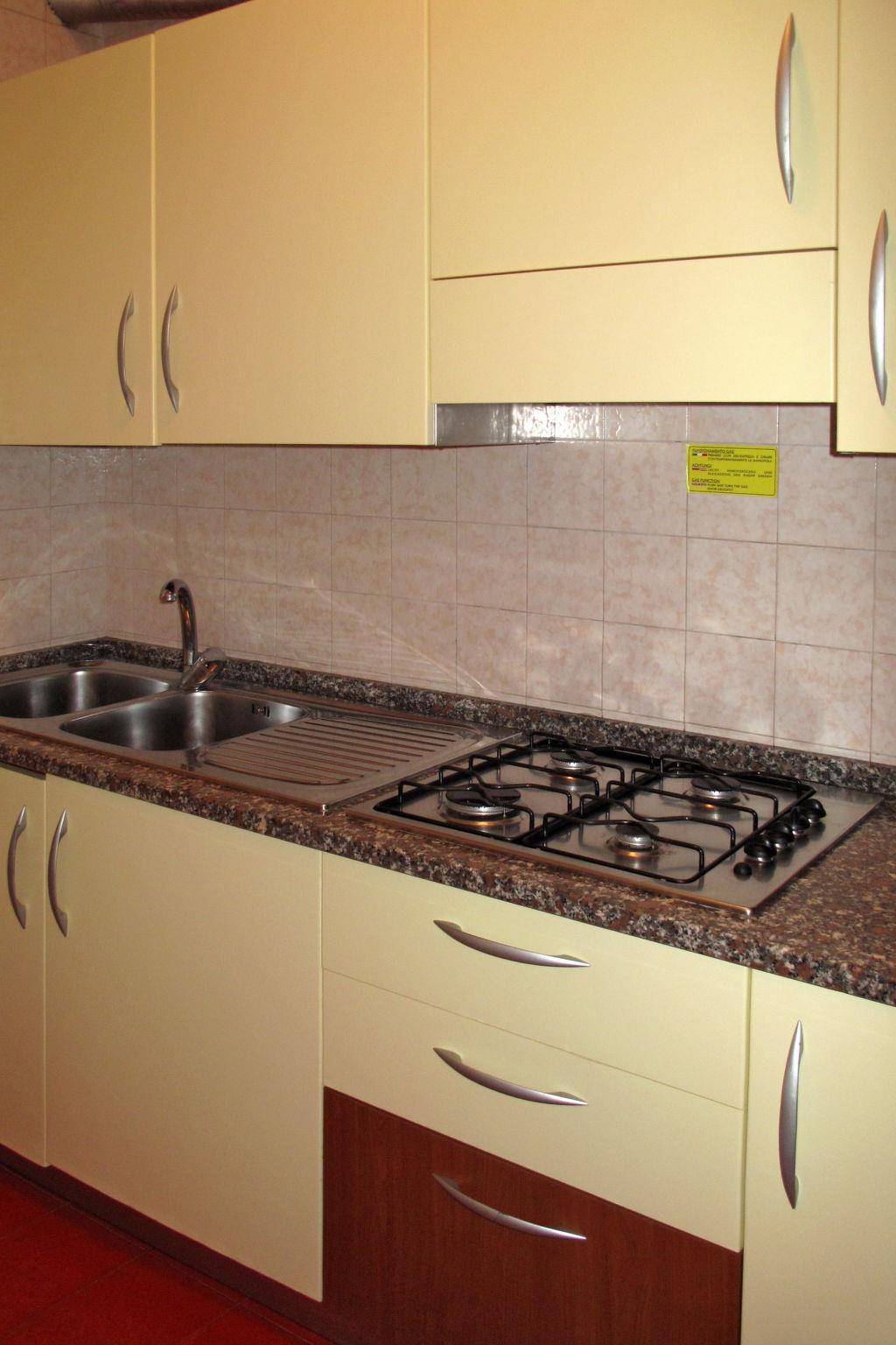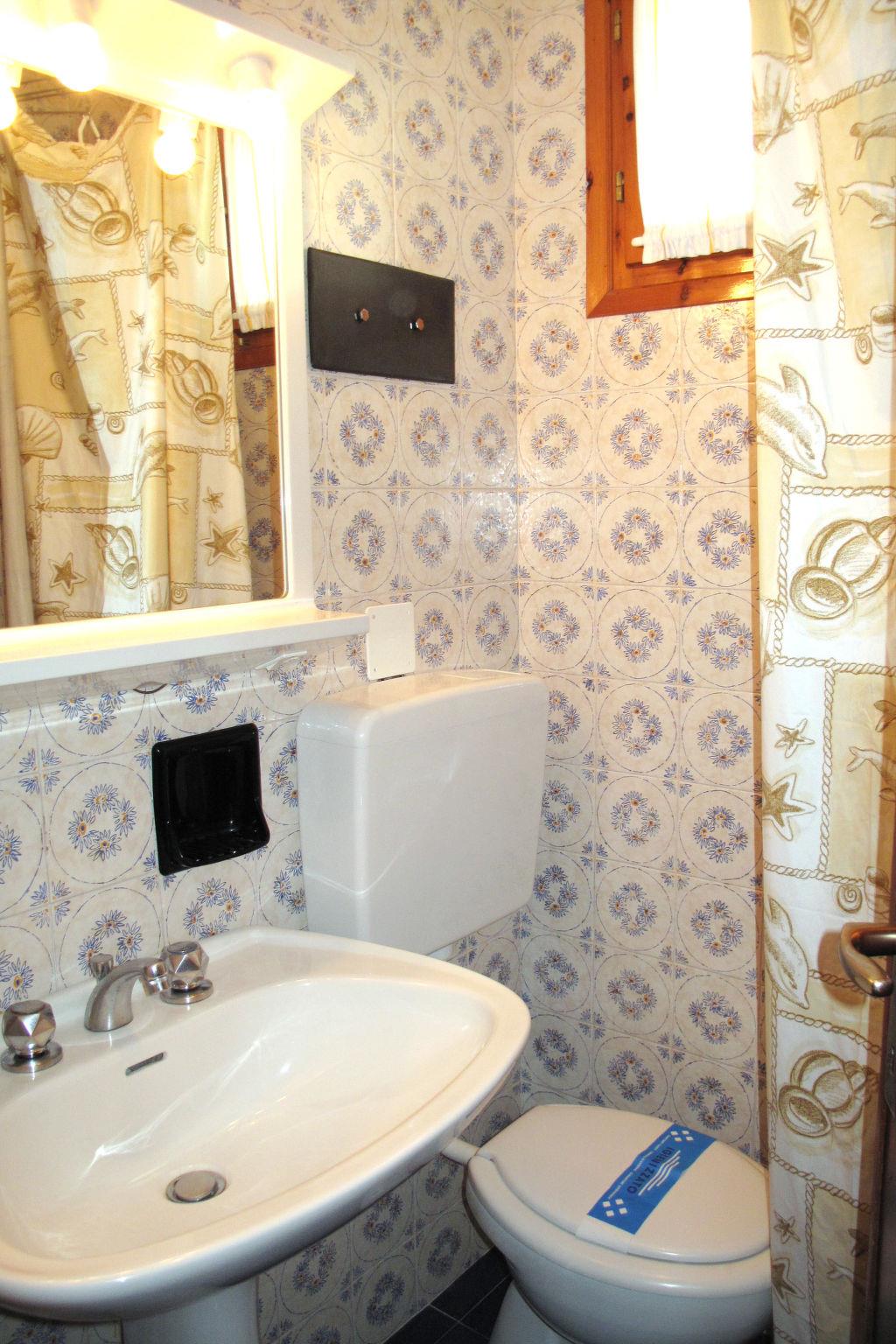 4-room terraced house 70 m2 on 3 levels. Practical furnishings: living/sleeping room with 1 double sofabed, dining table, kitchen corner and satellite TV. Exit to the terrace. 1 small room with 1 x 2 bunk beds. Kitchenette (Gas stove, 3 gas rings, microwave, freezer, electric coffee machine). Shower/WC. Upper floor: 1 double bedroom. 1 room with 2 beds. Shower/WC. Air-conditioning, forced-air heating. Heating not available in all rooms. Balcony, terrace partly roofed, large terrace. Terrace furniture. Facilities: safe, children's high chair, baby cot. Parking (2 cars) at the house. Maximum 1 pet/ dog allowed. IT027034B43GTJCFY5