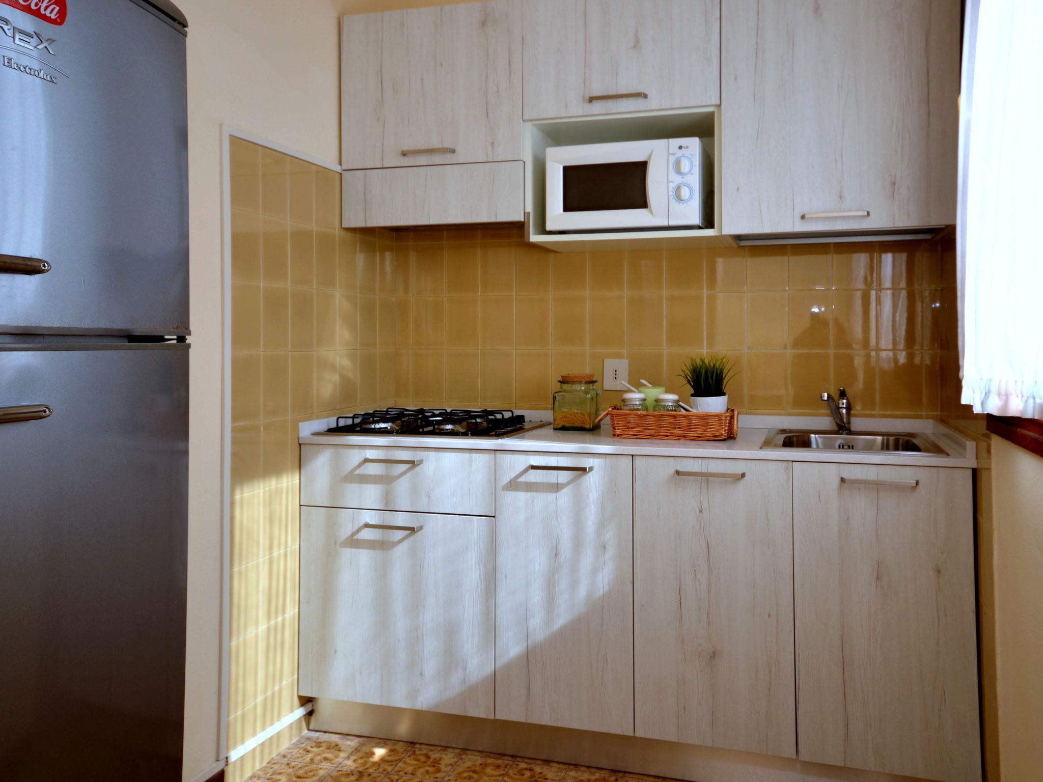 3-room apartment 45 m2, on the upper floor. Partly renovated in 2020, practical furnishings: living/sleeping room with 1 sofabed, dining table and satellite TV. 1 room with 1 bed and 1 double bed. 1 room with 1 x 2 bunk beds. Kitchenette (4 gas rings, microwave, freezer, electric coffee machine). Shower/bidet/WC. Air-conditioning, forced-air heating. Small balcony. Facilities: safe, children's high chair, baby cot for up to 2 year olds (extra). Maximum 1 pet/ dog allowed. IT027034B43D33MABG