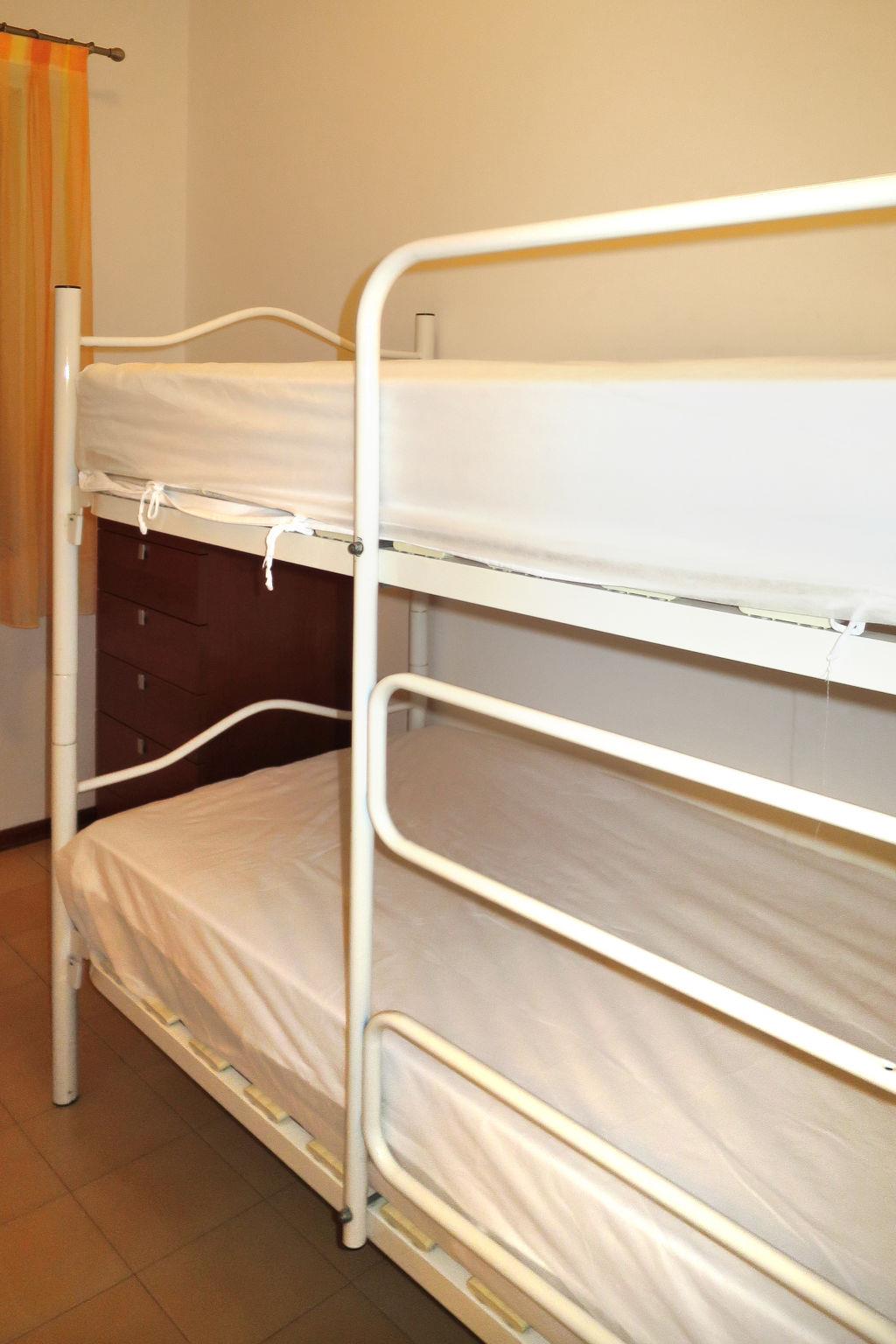 3-room apartment 42 m2. Practical furnishings: living/sleeping room with 1 double sofabed, dining table and TV. 1 room with 1 double bed. 1 room with 1 x 2 bunk beds. Kitchenette (4 gas rings, microwave, freezer, electric coffee machine). Shower/WC. Air-conditioning, forced-air heating. Balcony 9 m2. Balcony furniture. Facilities: safe, children's high chair, baby cot for up to 2 year olds (extra). Parking (1 car). Please note: maximum 1 pet/ dog allowed. Private entrance. IT027034B4S3H7DX2S