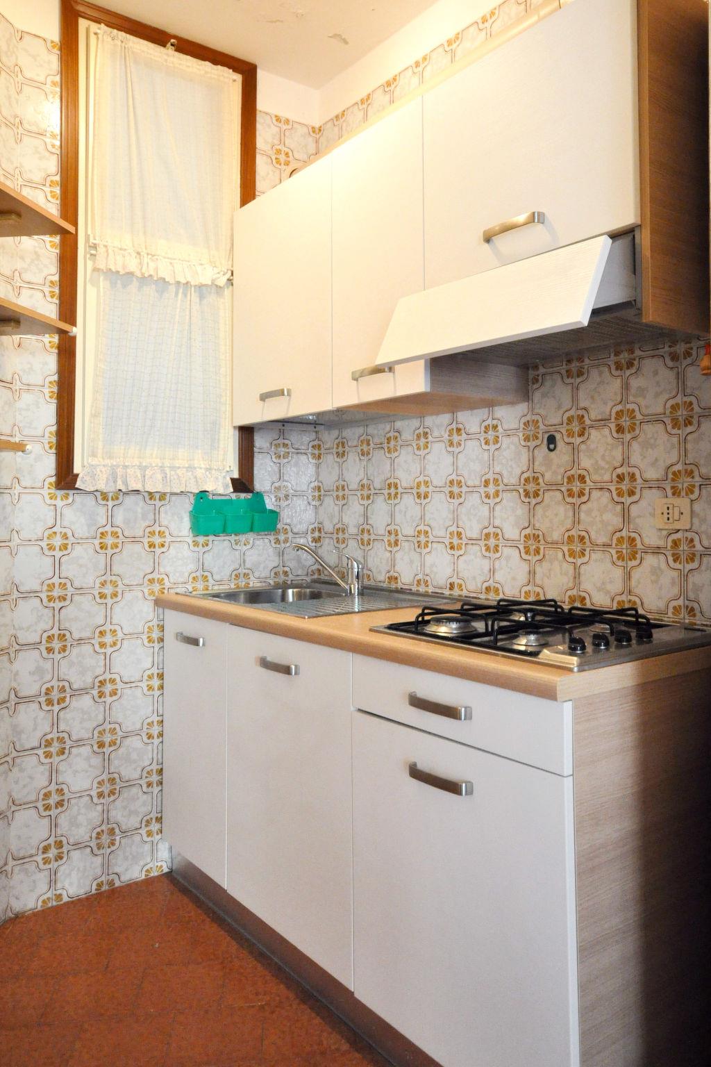 3-room apartment 50 m2 on 2 levels. Practical furnishings: living/sleeping room with 1 double sofabed, dining table, kitchen corner and TV. Exit to the terrace. Kitchenette (Gas stove, 4 gas rings, microwave, freezer, electric coffee machine). Upper floor: (spiral staircase), 1 double bedroom. 1 room with 2 beds. Shower/WC. Air-conditioning, forced-air heating. Terrace partly roofed, small garden. Terrace furniture, barbecue. Facilities: safe, children's high chair, baby cot (extra). Parking (1 car) at the house. Please note: maximum 1 pet/ dog allowed. Private entrance. The property is one of a type of property or apartment. IT027034C25VIMJEBD