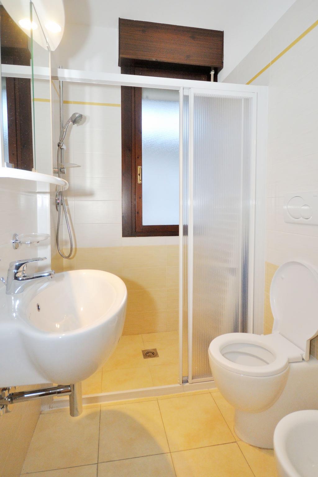 3-room apartment 48 m2, on the upper floor. Practical furnishings: living/sleeping room with 1 double sofabed, dining table, kitchen corner and satellite TV. Exit to the balcony. 1 double bedroom. Exit to the balcony. 1 room with 2 beds. Kitchenette (Gas stove, 4 gas rings, microwave, freezer, electric coffee machine). Shower/WC. Air-conditioning, forced-air heating. Heating not available in all rooms. Balcony. Balcony furniture. Facilities: safe, children's high chair, baby cot (extra). Internet (WiFi, free). Parking (fenced 1 car) at the house. Maximum 1 pet/ dog allowed. The property is one of a type of property or apartment. IT027034C2M752QJDD