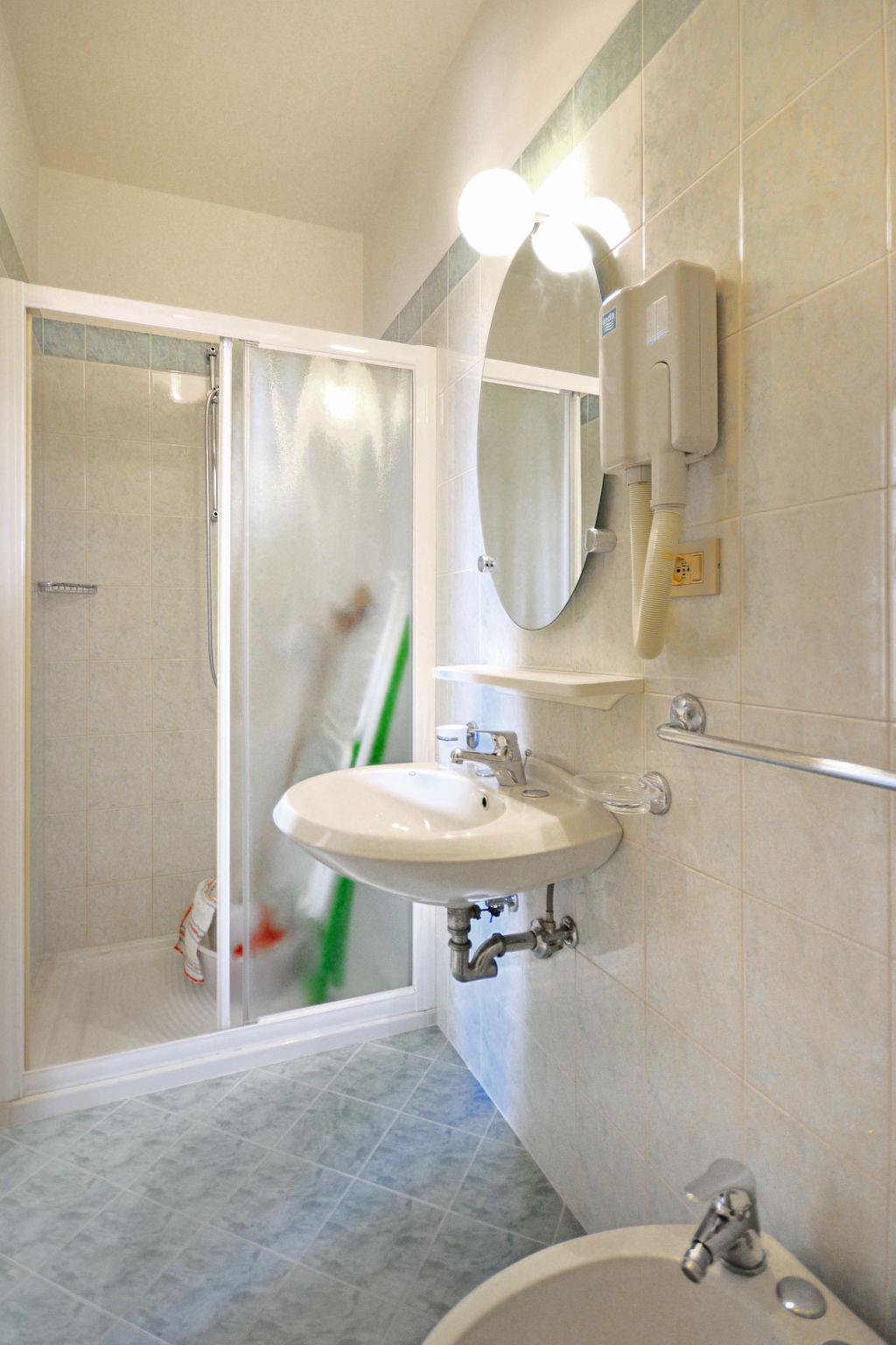 3-room apartment 55 m2. Practical furnishings: living/sleeping room with 1 sofabed, dining table and satellite TV. 1 room with 1 bed and 1 double bed. 1 room with 2 beds. Small, open kitchen (Gas stove, 3 gas rings, microwave, freezer). Shower/WC. Air-conditioning, forced-air heating. Heating not available in all rooms. Balcony or terrace, small garden. Terrace furniture. Facilities: safe, children's high chair, baby cot (extra). Parking (1 car) at the house. Please note: maximum 1 pet/ dog allowed. Private entrance. The property is one of a type of property or apartment. Apartment on ground floor or first floor. IT027034C27JRNPIU6