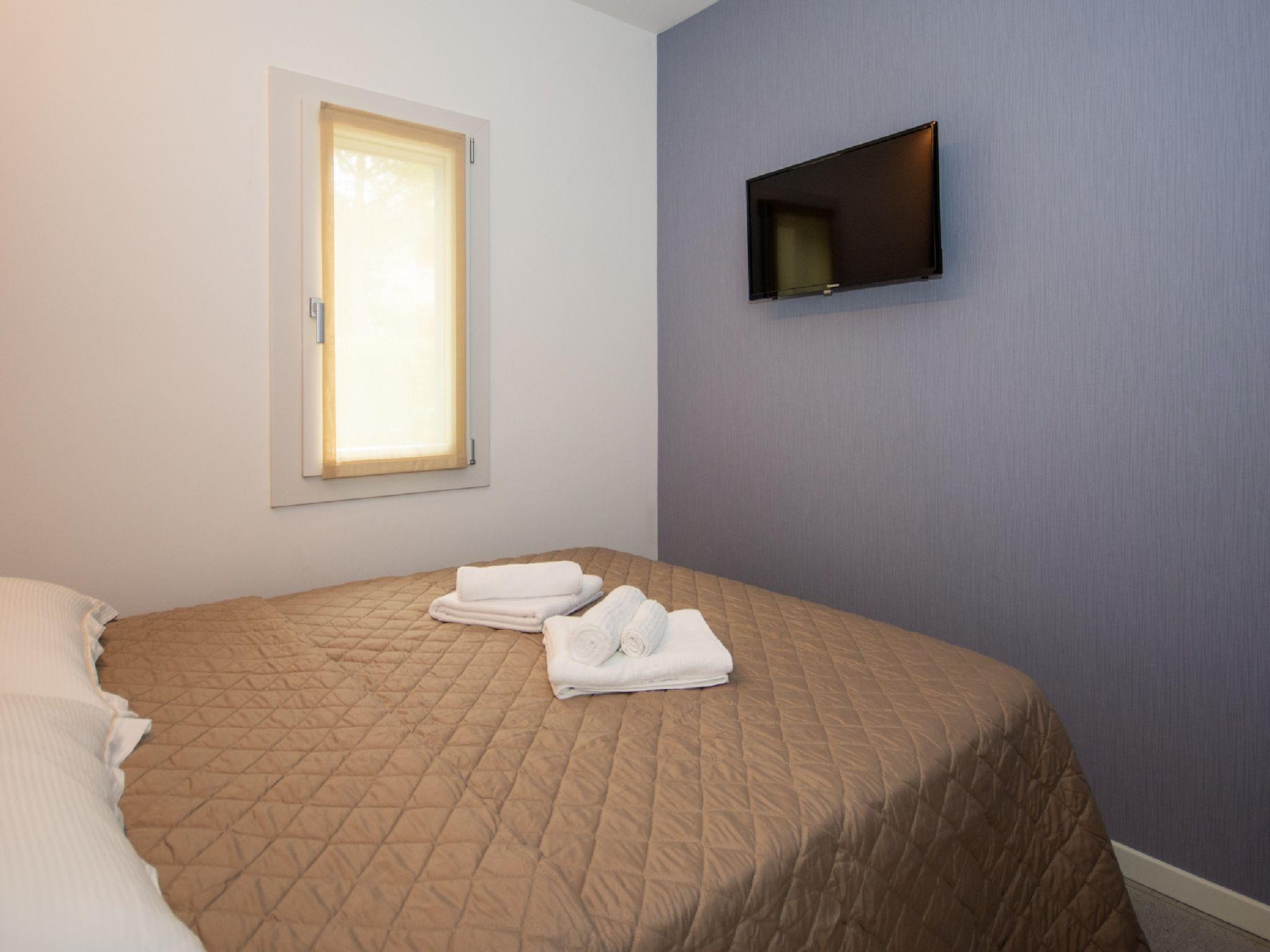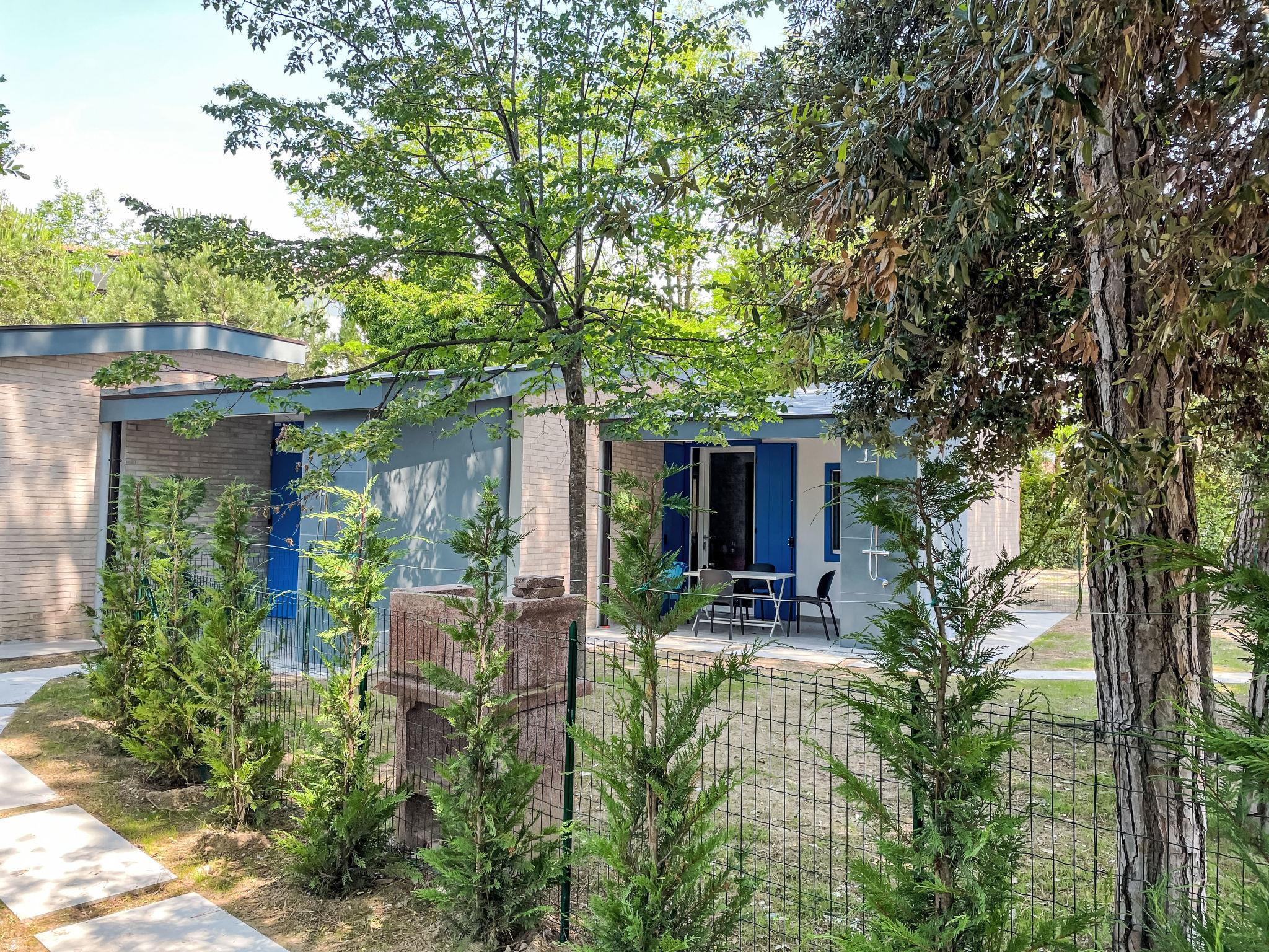 Terraced house "Tiny House". 3 houses in the residence. In the district of Pineda 300 m from the centre of Bibione-Pineda, 13 km from the centre of Lignano, 100 km from the centre of Venezia, 280 m from the sea. Private: natural state property (fenced) with trees. Outdoor shower. Supermarket 400 m, restaurant, bar 100 m, bus stop 500 m, railway station "Latisana (Milano-Venezia-Triest)" 21 km, sandy beach 280 m. Golf course (18 hole) 11 km. Nearby attractions: Oasi Naturalistica Val Grande - Bibione. The photo is just an example.