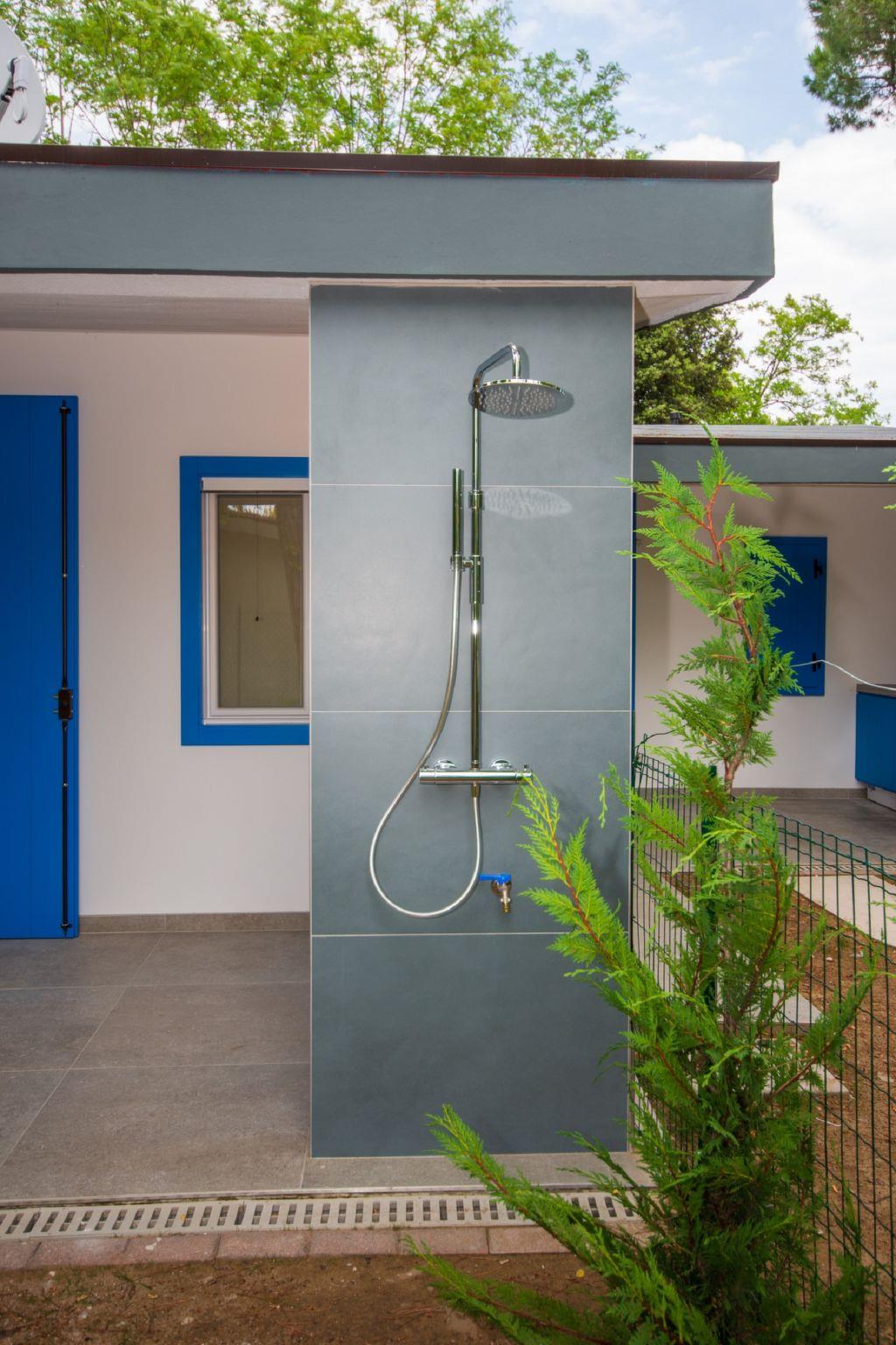 Terraced house "Tiny House". 3 houses in the residence. In the district of Pineda 300 m from the centre of Bibione-Pineda, 13 km from the centre of Lignano, 100 km from the centre of Venezia, 280 m from the sea. Private: natural state property (fenced) with trees. Outdoor shower. Supermarket 400 m, restaurant, bar 100 m, bus stop 500 m, railway station "Latisana (Milano-Venezia-Triest)" 21 km, sandy beach 280 m. Golf course (18 hole) 11 km. Nearby attractions: Oasi Naturalistica Val Grande - Bibione. The photo is just an example.