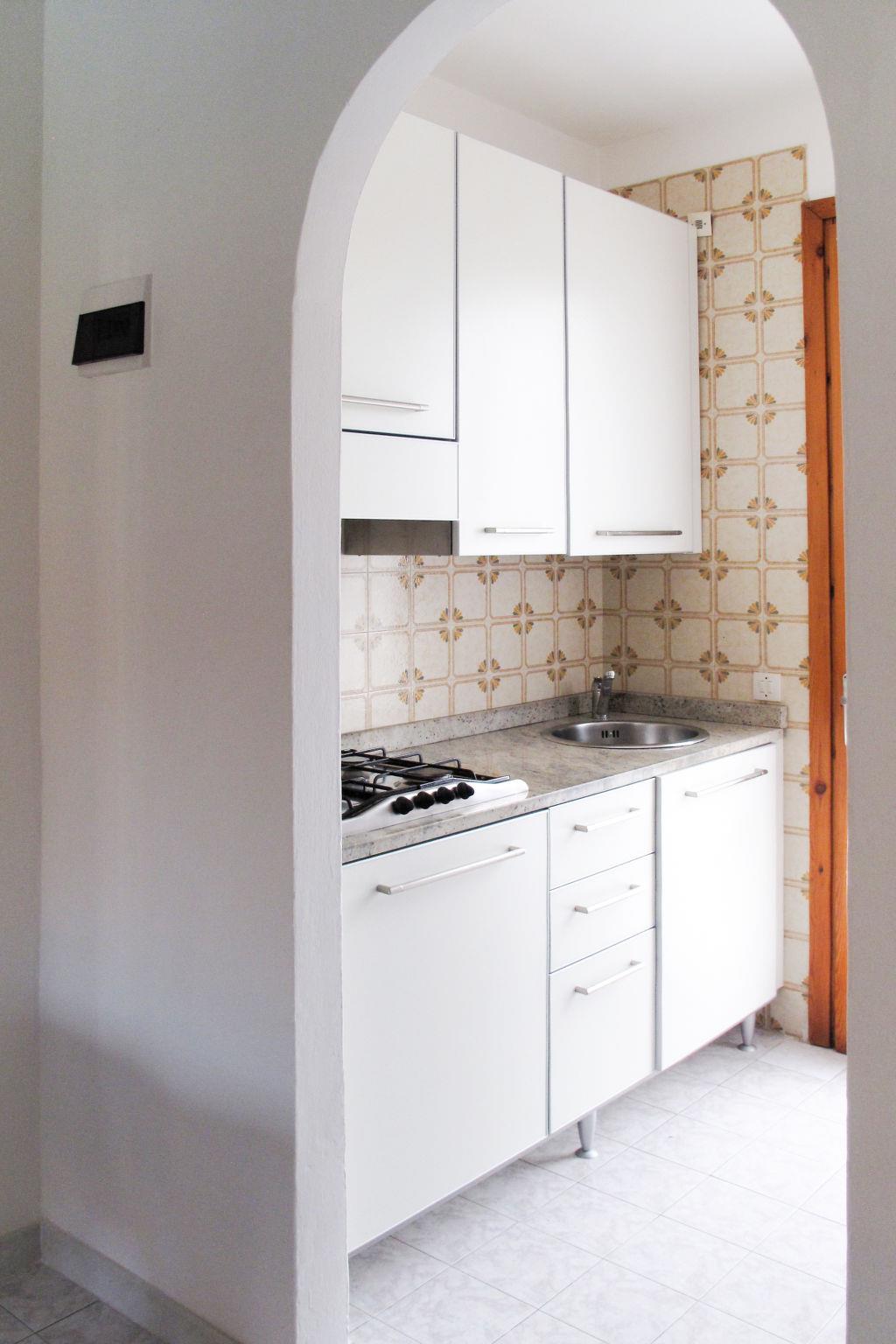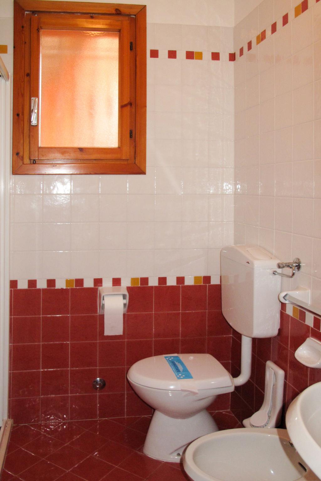 3-room apartment 55 m2, on the ground floor. Practical furnishings: living/sleeping room with 1 double sofabed, dining table and satellite TV. Exit to the terrace. 1 open double bedroom. 1 room with 2 beds. Kitchenette in the entrance (Gas stove, 4 gas rings, microwave, freezer, electric coffee machine). Shower/bidet/WC. Air-conditioning, forced-air heating. Heating not available in all rooms. Terrace roofed, small garden. Terrace furniture, barbecue. Facilities: safe, children's high chair, baby cot. Parking (1 car) at the house. Please note: maximum 1 pet/ dog allowed. Private entrance. IT027034B48WLSV7II