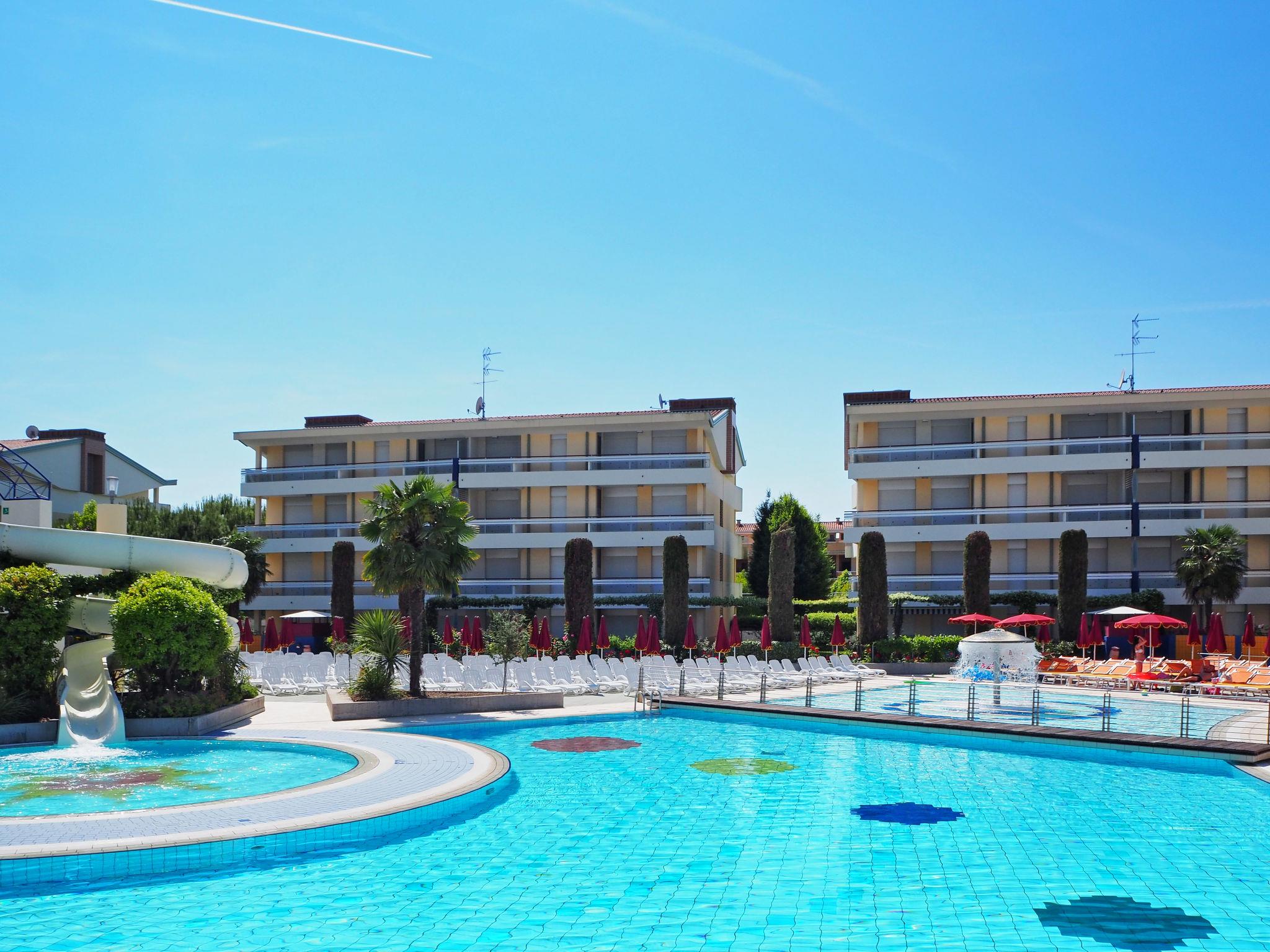 Large, child friendly resort "Villaggio Planetarium", 4 storeys. 9 houses in the residence. 218 apartments in the residence. In the district of Bibione-Spiaggia 1 km from the centre of Bibione, 13 km from the centre of Lignano, 100 km from the centre of Venezia, 1.4 km from the sea. For shared use: property with plants and trees, 4 swimming pools (seasonal availability: 15.May. - 27.Sep.). Children's pool, slide, hot tub, children's playground. In the complex: restaurant, bistro, WiFi (extra). Lift, washing machine, tumble dryer (for shared use, extra), bicycle rental. Half board possible (extra). Supermarket 100 m, bus stop 600 m, railway station "Latisana (Milano-Venezia-Triest)" 21 km, sandy beach 1 km, thermal baths "Bibione Thermae" 2 km. Golf course (18 hole) 11 km. Nearby attractions: Oasi Naturalistica Val Grande - Bibione. Please note: entertainment in the season. Suitable for families. The owner does not accept any groups. Beach service: During summer season 1 parasol and 2 deck-chairs per apartment included in the price. Shuttle service: Within 23.05.-11.09. free shuttle bus to the beach section 'Un Nuovo Posto al Sole' (daily every 30 minutes, from 8-19 h). Bar/restaurant open approx. 23.05.-18.09.