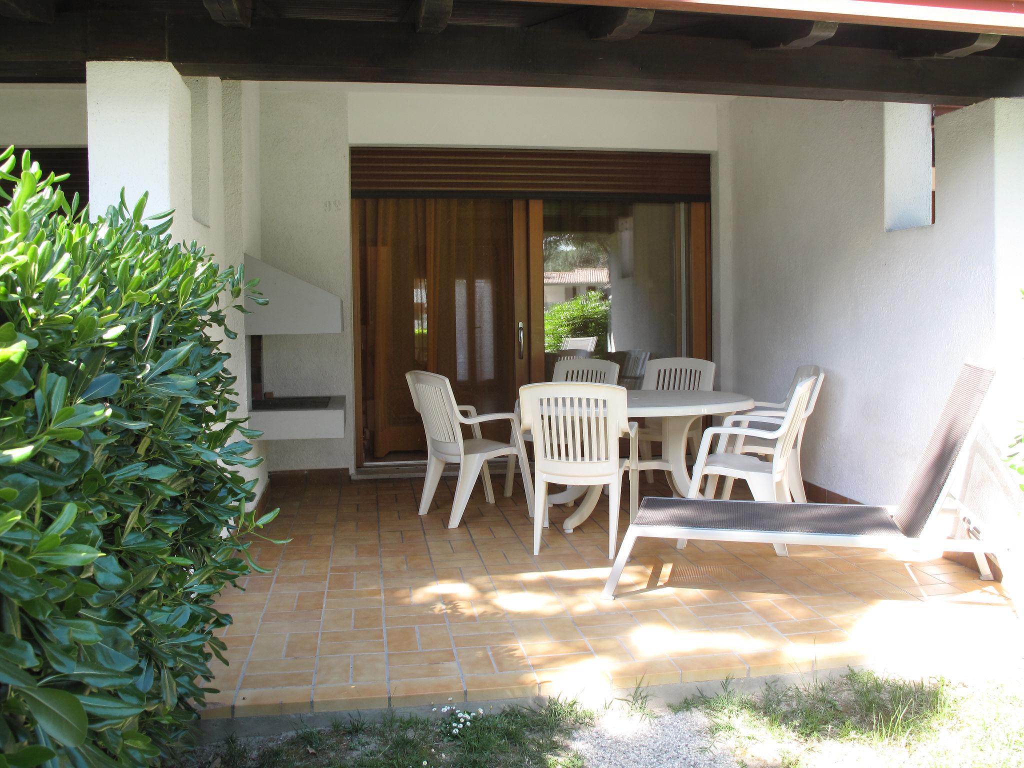 Resort "Club dei Pini". 33 houses in the resort. In the district of Lido dei Pini 150 m from the centre of Bibione - Lido dei Pini, 13 km from the centre of Lignano, 100 km from the centre of Venezia, 500 m from the sea. For shared use: property, well-kept garden lawn and trees, swimming pool (15 x 8 m, seasonal availability: 15.May. - 27.Sep.). Children's pool. In the house: bicycle rental. Shop, restaurant 150 m, bus stop 650 m, railway station "Latisana (Venezia-Trieste)" 21 km, sandy beach 500 m. Golf course (18 hole) 8 km. Nearby attractions: Oasi Naturalistica Val Grande - Bibione. The owner does not accept any groups. Beach service: During summer season 1 parasol and 2 deck-chairs per apartment included in the price.