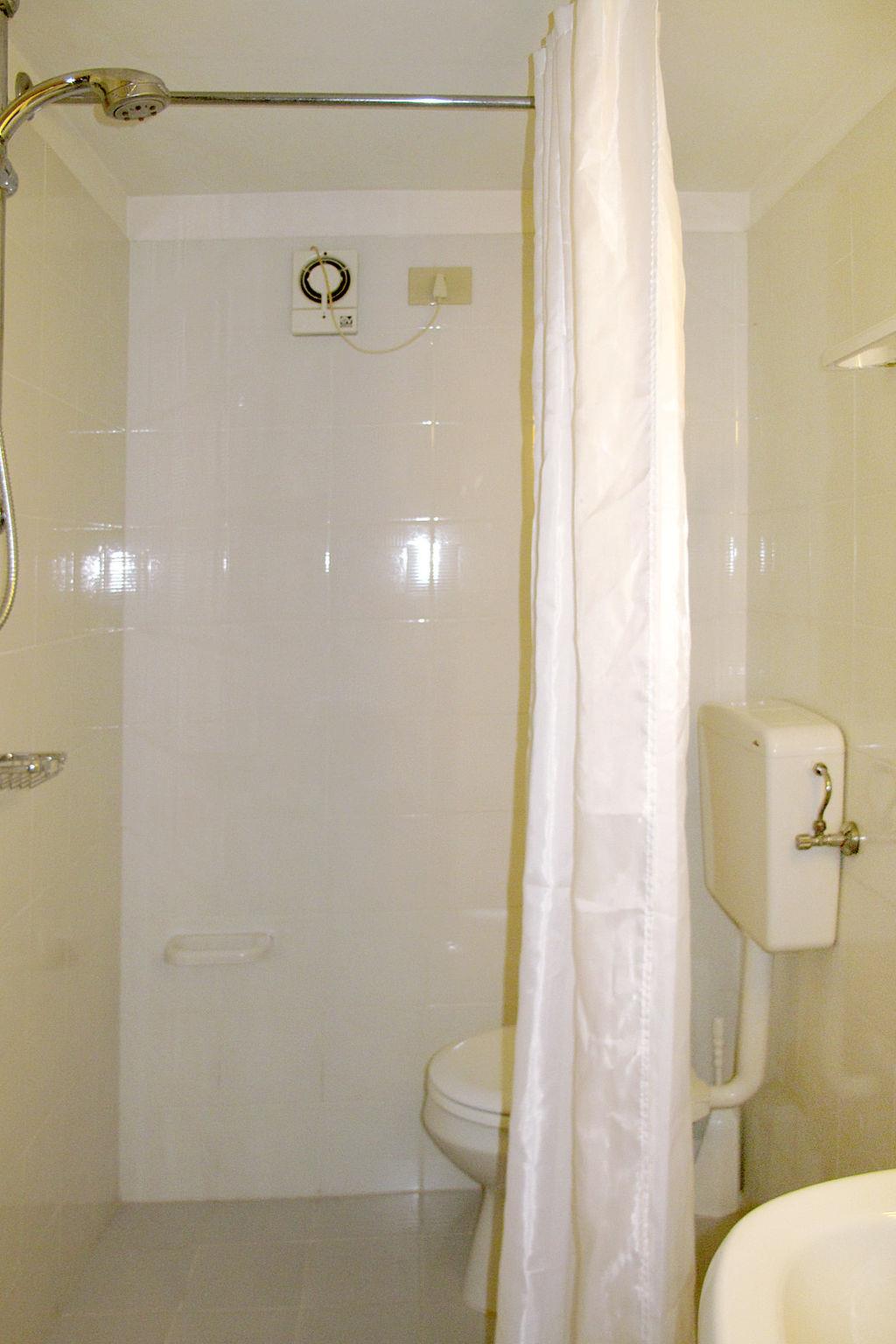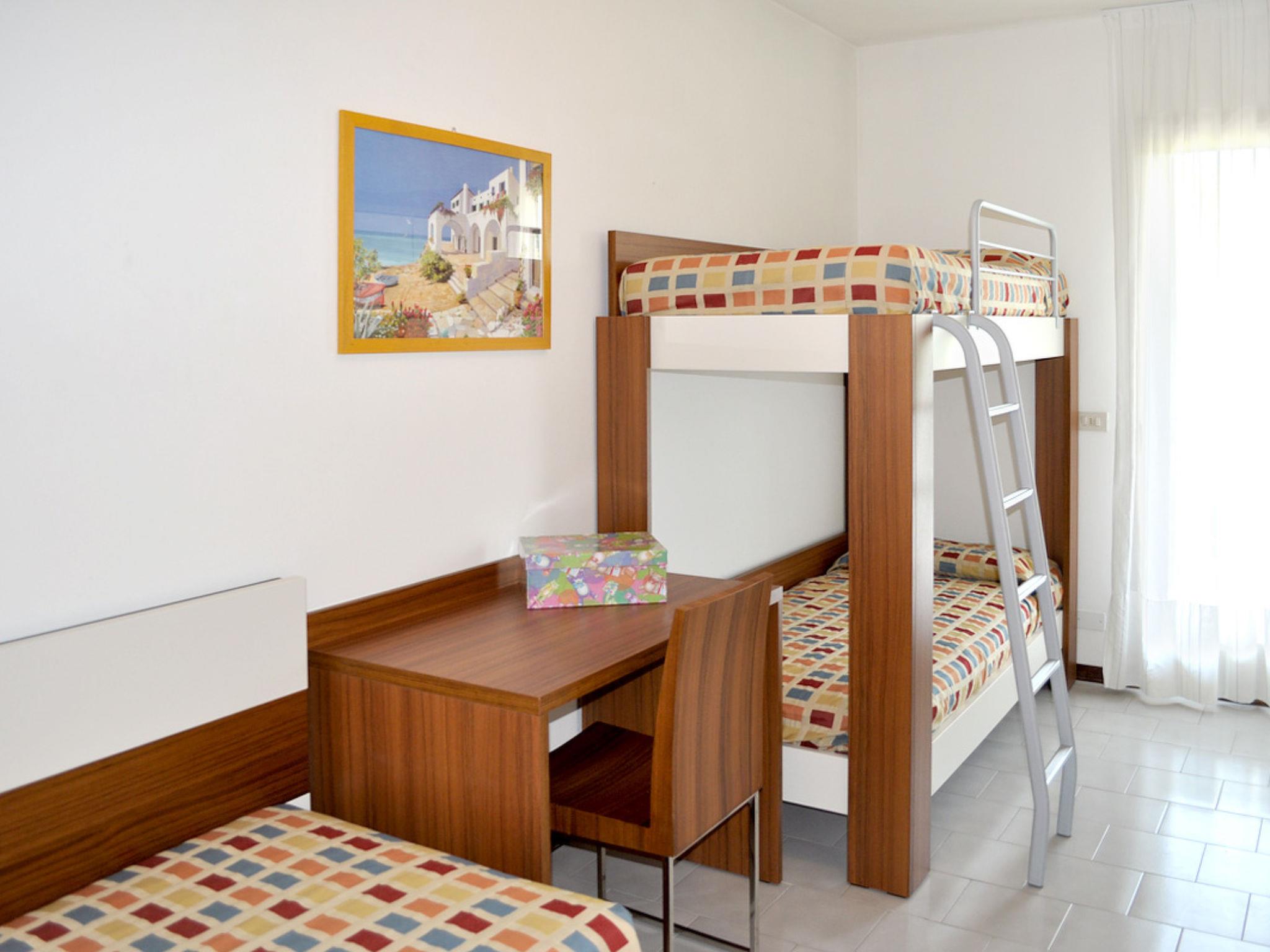 3-room terraced house 85 m2 on 3 levels. Practical and stylish furnishings: living/sleeping room with 2 sofabeds and satellite TV. Exit to the terrace. Kitchen (Gas stove, 4 gas rings, microwave, freezer, electric coffee machine) with dining table. On the lower ground floor: shower/WC. Upper floor: 1 room with 1 bed and 1 double bed. 1 room with 1 bed and 1 x 2 bunk beds. Bath/shower/WC. Heating, air-conditioning. 2 balconies, terrace roofed, small garden. Terrace furniture, barbecue, deck chairs (2). Facilities: washing machine, safe, children's high chair, baby cot. Parking (1 car), garage on the property (1 car) at the house, height 250 cm. Maximum 1 pet/ dog allowed. No mandatory extra charges to be paid on-site except for local tax. Bedlinen, towels, final cleaning and all energy costs are included. IT027034B4GH4V3DDD