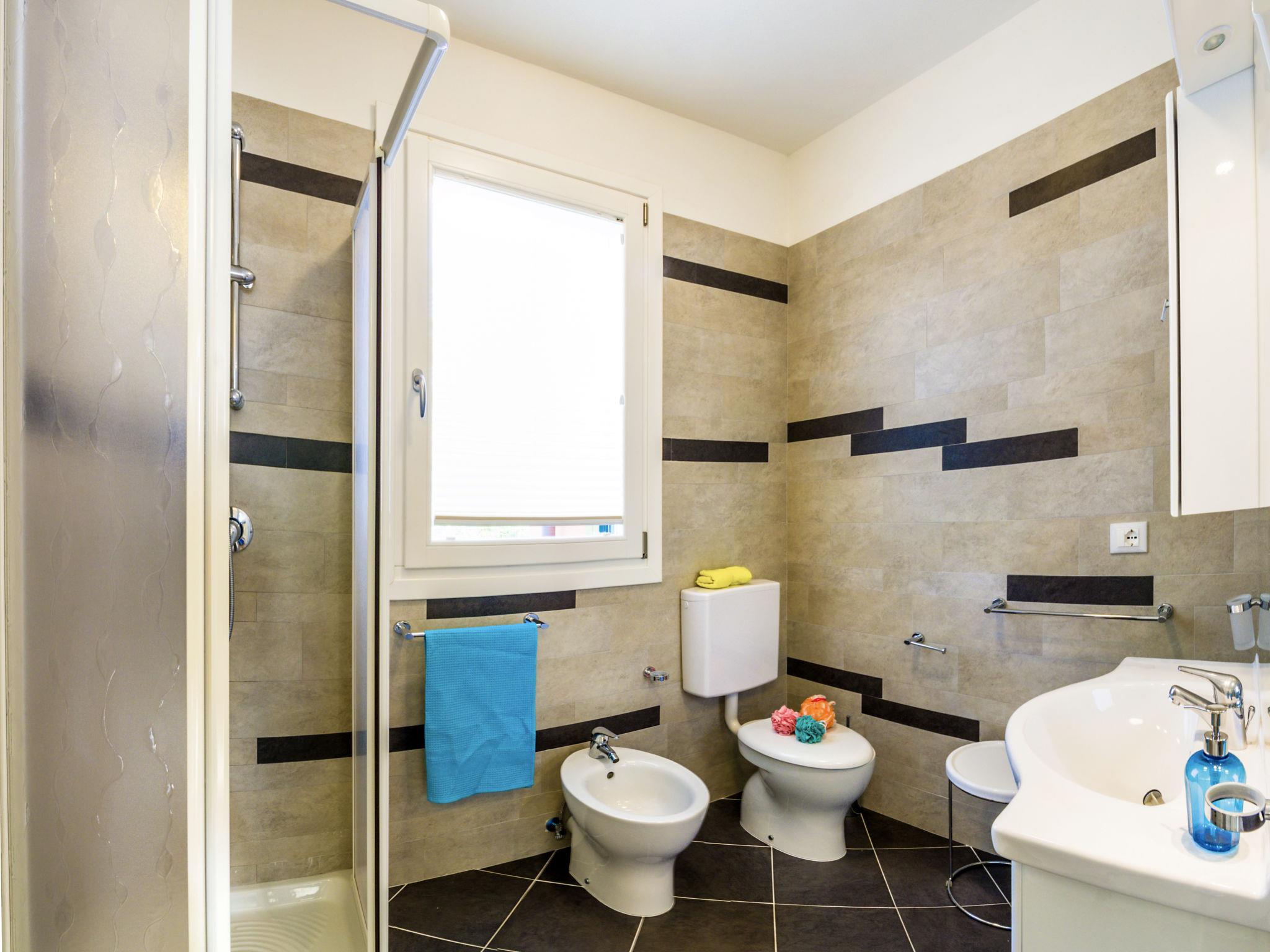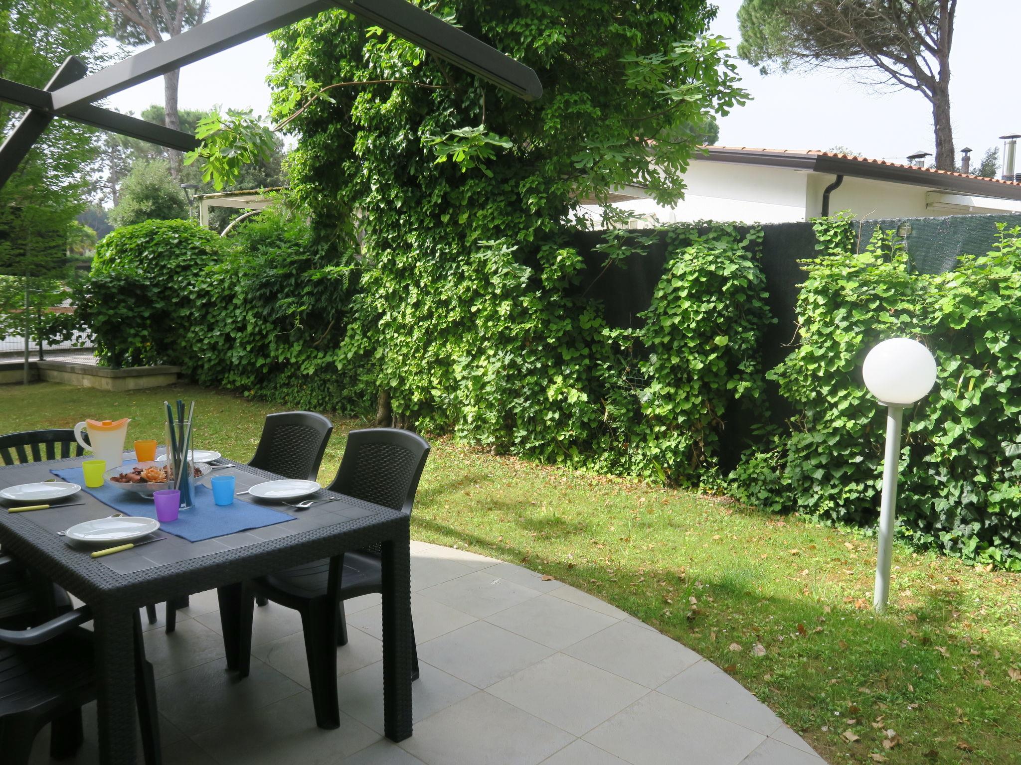 Terraced house "Begonie", 3 storeys. 3 houses in the residence. In the district of Bibione-Pineda 3.2 km from the centre of Bibione, 13 km from the centre of Lignano, 100 km from the centre of Venezia, 750 m from the sea. Grocery 450 m, restaurant 470 m, bus stop 400 m, railway station "Latisana (Milano-Venezia-Triest)" 21 km, sandy beach 750 m, thermal baths "Bibione Thermae" 2.9 km. Golf course (18 hole) 11 km. Nearby attractions: Oasi Naturalistica Val Grande - Bibione. The owner does not accept any groups. Beach service: During summer season 1 parasol and 2 deck-chairs per apartment included in the price. The beach with included beach service is about 1.4 km from the holiday home.