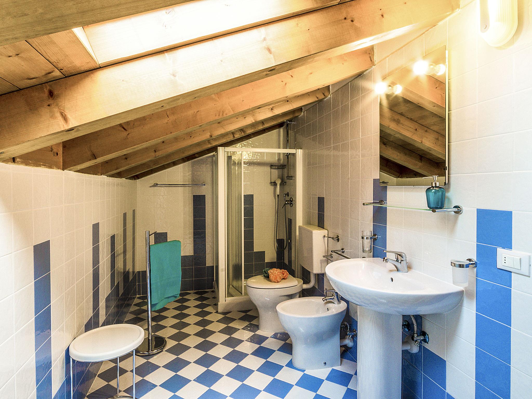 4-room terraced house 80 m2. Modern furnishings: living/dining room with dining table, kitchen corner and satellite TV. Exit to the terrace. Open kitchen (dishwasher, Gas stove, 4 gas rings, microwave, freezer, electric coffee machine). Upper floor: 1 room with 1 bed and 1 double bed. 1 room with 2 beds. Shower/bidet/WC. Top floor: 1 room with sloping ceilings with 1 bed and 1 double bed. Shower/bidet/WC. Air-conditioning, forced-air heating. Parquet floors. 2 small balconies, terrace roofed, garden. Terrace furniture, barbecue. Facilities: washing machine, safe, mosquito net, children's high chair, baby cot. Internet (WiFi, free). Parking (1 car) at the house. IT027034C2SO3X5O8I