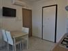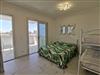 The studio is equipped with a double bed with a faux leather headboard and a practical bunk bed, complete with a kitchenette equipped with hob, large fridge with freezer, ventilated oven and microwave.