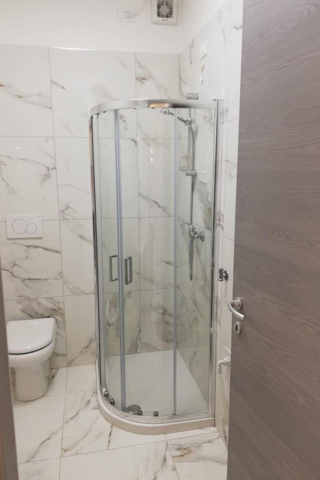Each flat has a graceful and modern design, with sober lines and monochrome colours, and is designed to ensure a comfortable stay for both couples and families with children. The studio is equipped with a double bed with a faux leather headboard and a single bed, complete with a kitchenette equipped with a hob, a large fridge with freezer, a ventilated oven and a microwave. A sofa bed that can be converted into an additional comfortable bed. A cosy balcony where you can relax in the fresh air. The bathroom is bright and windowed, with modern tiling, and offers a clear glass shower stall. In addition, the apartment is equipped with air conditioning and a heat pump to ensure an ideal climate in every season, TV and free WiFi . Washing machines are available on the ground floor for all guests.