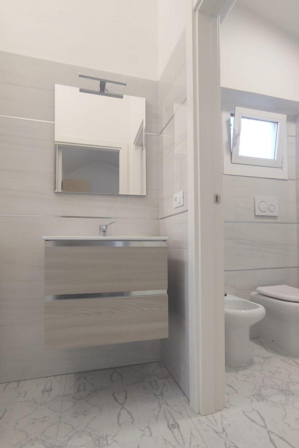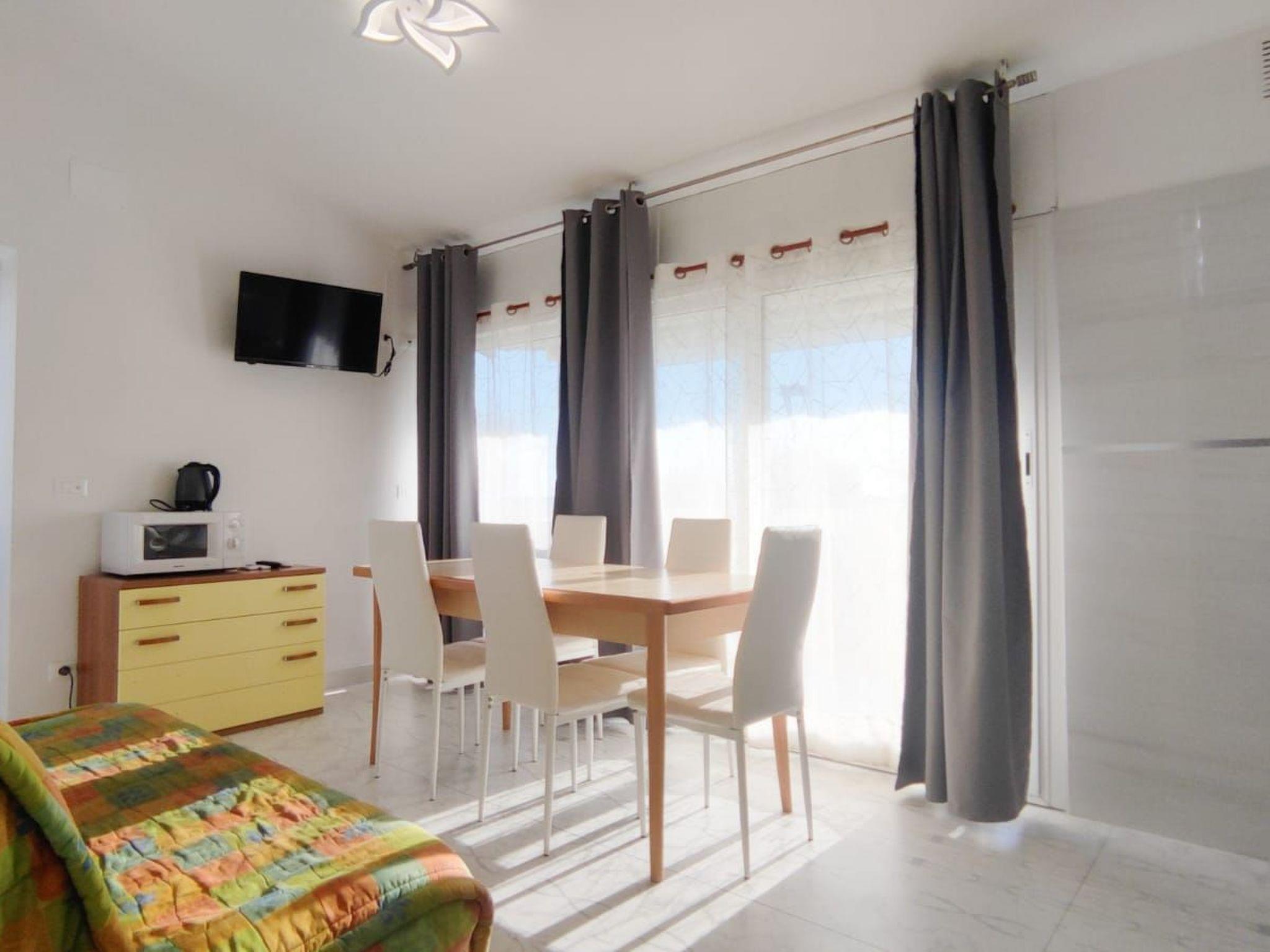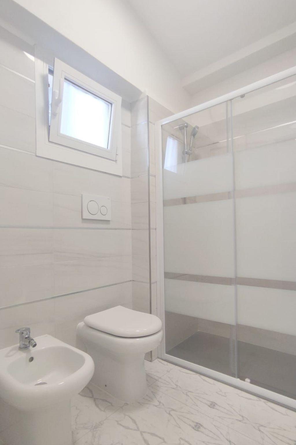 The flat is located on the first floor of the villa. Guests will have access to a separate entrance, which leads directly into a cosy open space. This living space opens onto a south-facing terrace, perfect for enjoying the sea view while sipping your morning coffee. The fully-equipped, open-plan kitchen is flanked by a dining area with seating for six, complemented by a comfortable sofa bed and refrigerator to ensure maximum comfort during your stay. In addition, the apartment is equipped with air conditioning and a heat pump to ensure an ideal climate in every season. The two bedrooms, one of which is a master bedroom with the addition of a bunk bed for children, offer the perfect night's rest. In addition, the flat has a windowed, functional bathroom with a shower cubicle, while an external washing machine is available for all guests.