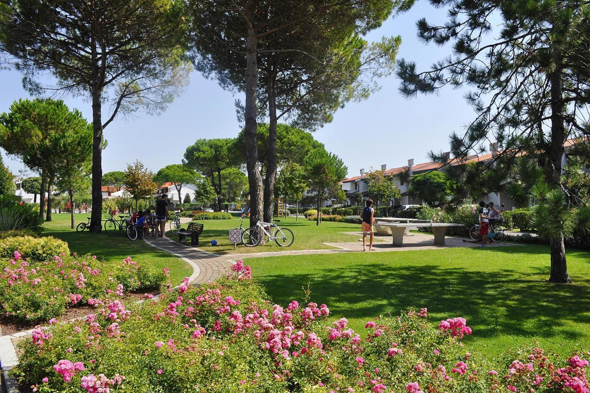 Hyggelige rækkehuse på en smuk havegrund. Det velholdte feriekompleks ligger i den livlige bydel Bibione Spiaggia. Du kan nå den brede sandstrand, som er ideel for familier, med en kort gåtur. Landsbyens centrum med gode butikker, barer og restauranter ligger også inden for gåafstand. Aktiviteter: 2 fælles udendørs pools (åben fra begyndelsen af juni til midten af september, pool lukket ved frokosttid, hvis vejret tillader det). Børnepool. For børn: legeplads Ekstra inkluderet: 1 gang pr. ophold deltagelse i en spaghetti-fest (fra slutningen af maj til midten af september, hvis vejret tillader det). Invitation til vinsmagning med typiske snacks (fra midten af april til midten af oktober). Strandservice (1 liggestol, 1 solseng, 1 parasol) fra begyndelsen af maj til september. 10% rabat i forskellige restauranter og butikker 20% rabat på greenfee (fra mandag til fredag) på 18-hullers Golf Club Lignano Aktiviteter i nærheden: De termiske bade, ca. 500 meter væk, tilbyder et unikt wellness-område med forskellige saunaer og et tyrkisk dampbad samt medicinske behandlinger som massage, fysioterapi, termiske kure, klimaterapi osv. Hvis du foretrækker sport, kan du træne i de tilstødende fitnesshaller. I den udendørs termiske pool kan du nyde en undervandsmassage eller slappe af på en solseng.Vil du sende feriehilsner på stranden, skal du blot bruge det gratis WiFi. Ikke egnet til personer med nedsat mobilitet
