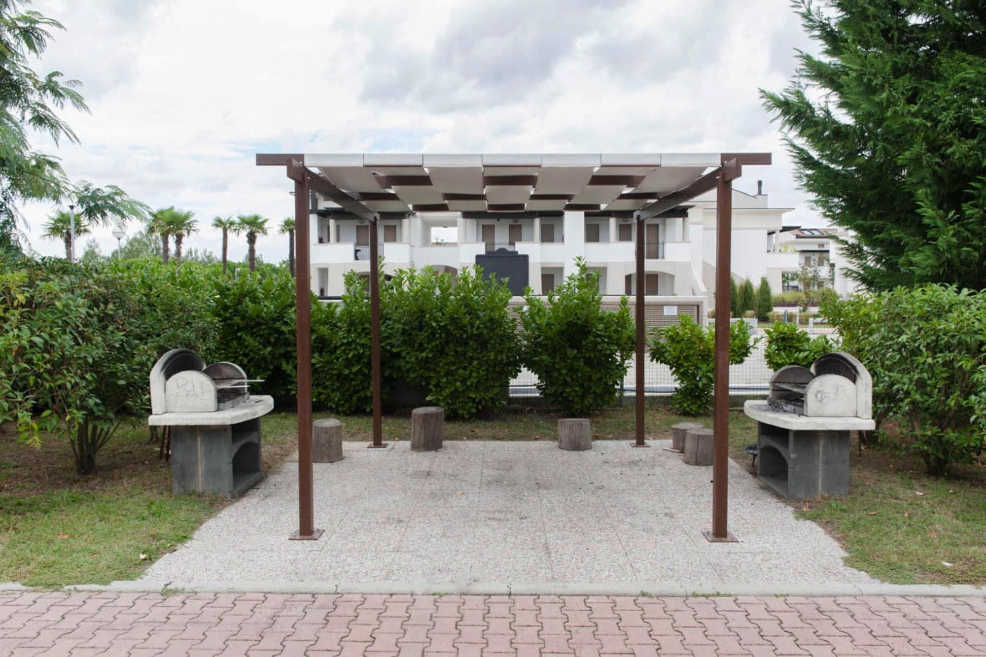 Familievenligt feriekompleks i Bibione Spiaggia med pool og børnepool i rolige omgivelser på en 7.000 kvm havegrund beklædt med fyrretræer. De meget velholdte rækkehuse ligger kun få skridt fra havet. Komplekset har tre vaskemaskiner til fælles brug. Efter anmodning og afhængig af tilgængelighed er det muligt at reservere et hus med hegn til små/mellemstore hunde. Adriaterhavets nordkyst byder på mange muligheder for udflugter, fx ligger lagunebyen Venedig godt 100 kilometer væk og den kroatiske grænse er også let tilgængelig, hvis du planlægger en dagstur. Ekstra inkluderet: TRÅDLØS INTERNETADGANG Strandtjenester (2 liggestole, 1 parasol) fra omkring midten af maj til midten af september. Aktiviteter i nærheden: Du kan slippe damp med alle former for vandsport (mod betaling) på sandstranden, som er over 8 kilometer lang. Mobilitet: Ikke egnet til personer med begrænset mobilitet