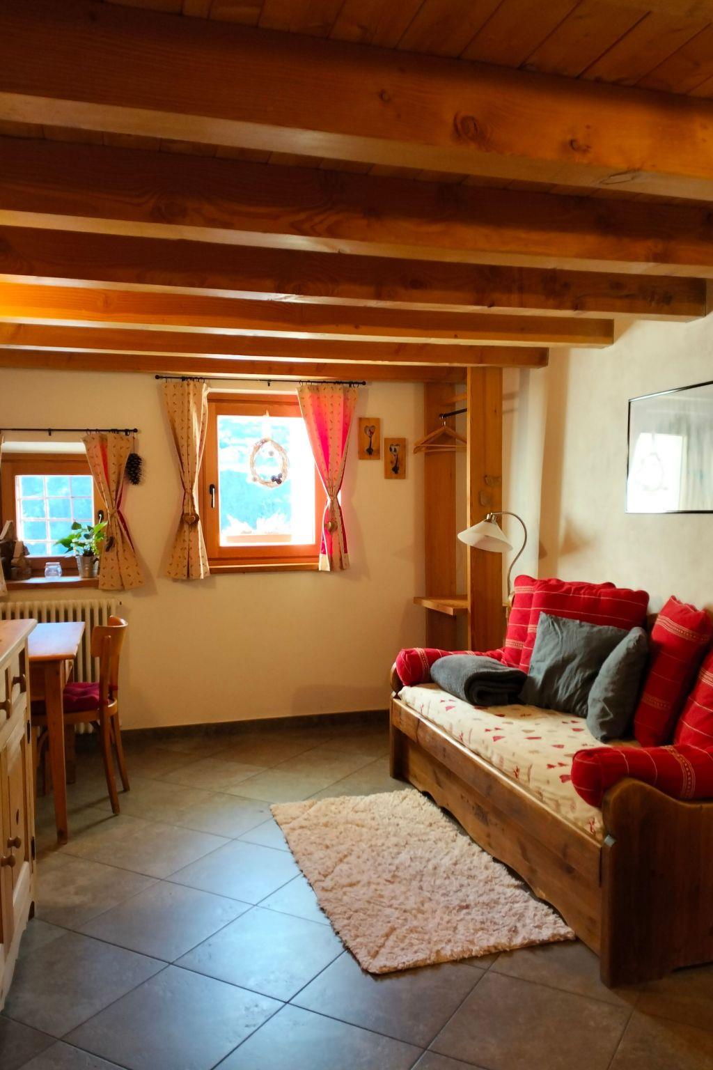Nestled in an enchanting mountain landscape, Gignod offers a variety of services such as restaurants, pizzerias, a tobacconist bar, a pharmacy, a post office and a small grocery shop where fresh bread and milk can be found. Just 1 km away, guests can visit a local farm that sells its dairy products directly. The proximity to nature is further accentuated by the presence of numerous animals that share the farm: a dog, a horse, a pony, two sheep and six chickens, all ready to interact with visitors.