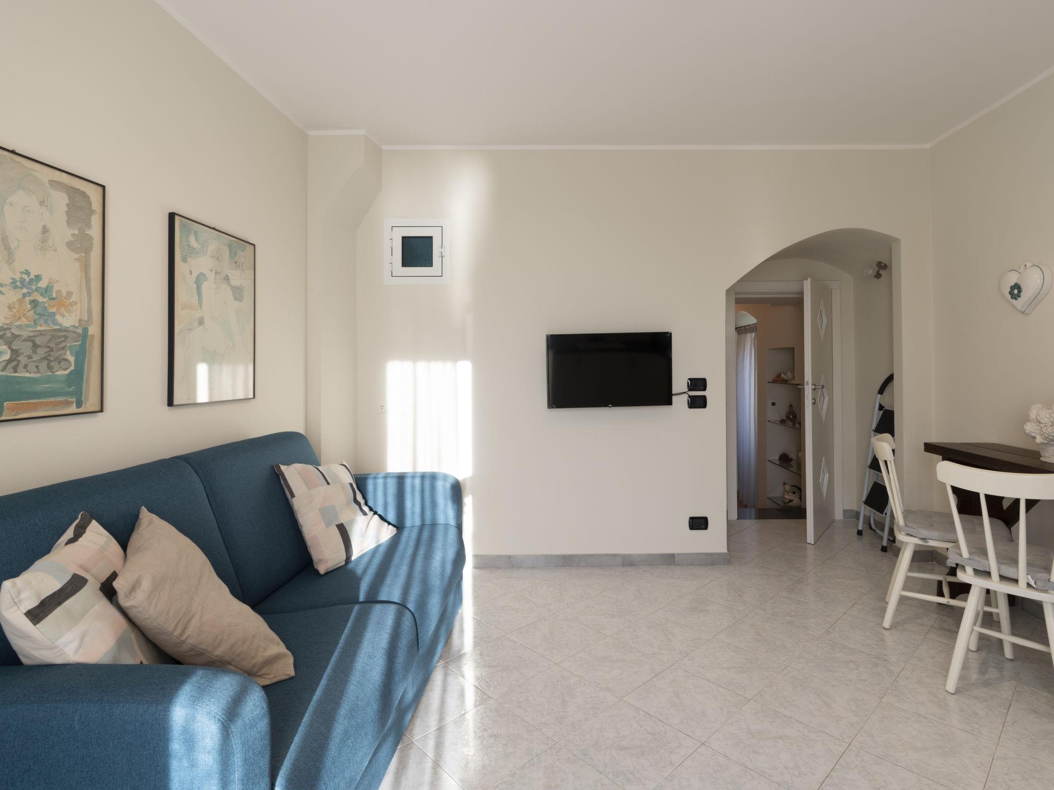 "il Rifugio", 2-room apartment 60 m2 on 3rd floor. Modern and tasteful furnishings: living/dining room with 1 double sofabed (160 cm, length 200 cm). 1 double bedroom. Kitchenette (4 induction hot plates, toaster, kettle, electric coffee machine). Shower/bidet/WC. Air-conditioning, forced-air heating. Heating available only from 01.11. to 08.04. Side view of the sea and the resort. Facilities: washing machine, hair dryer. Internet (WiFi, free). IT008008C25RA9KAGN