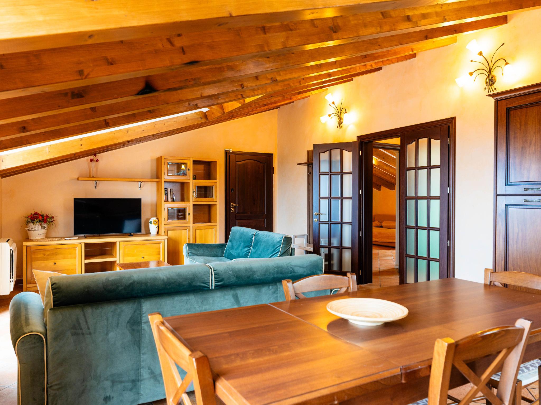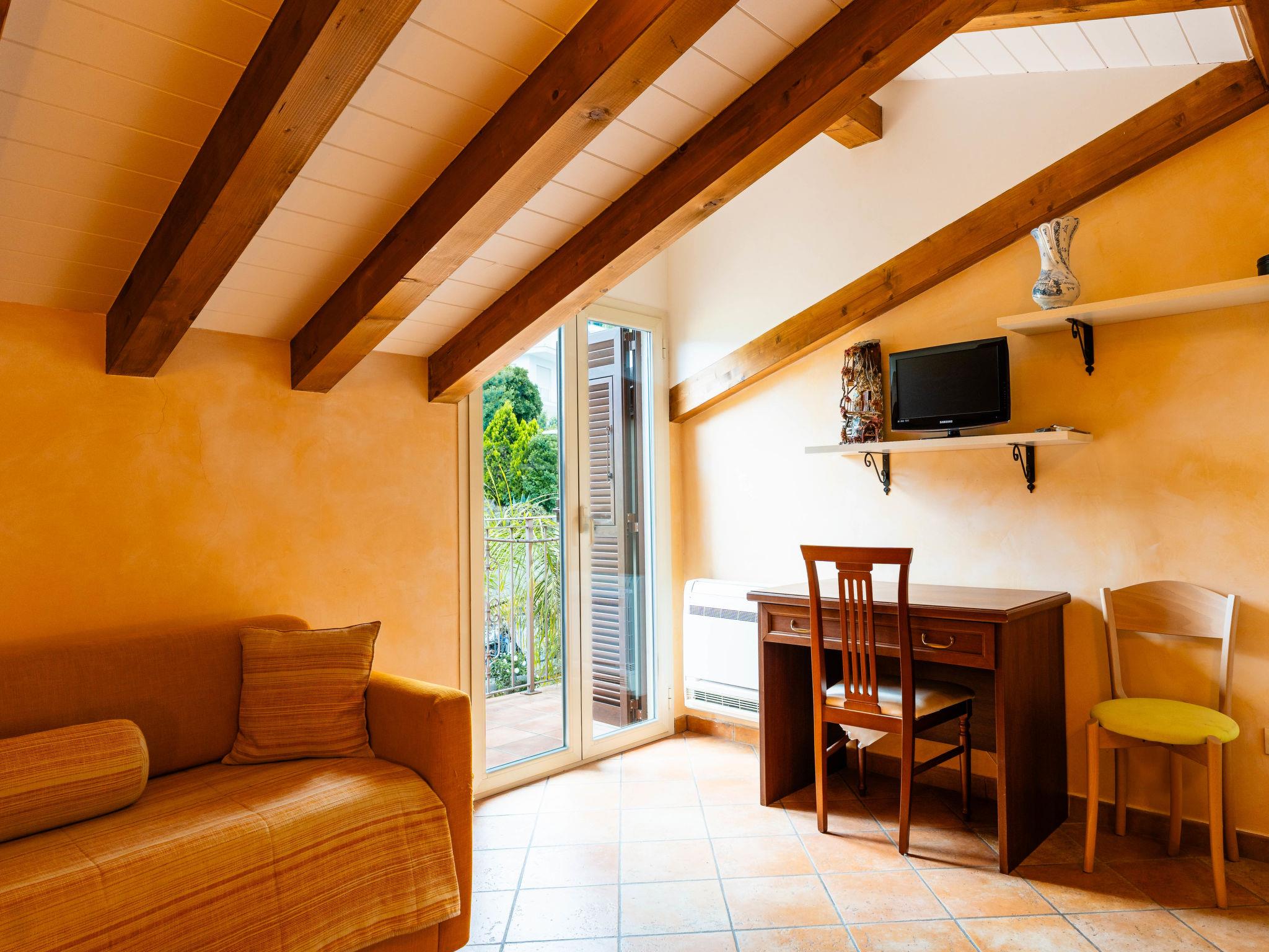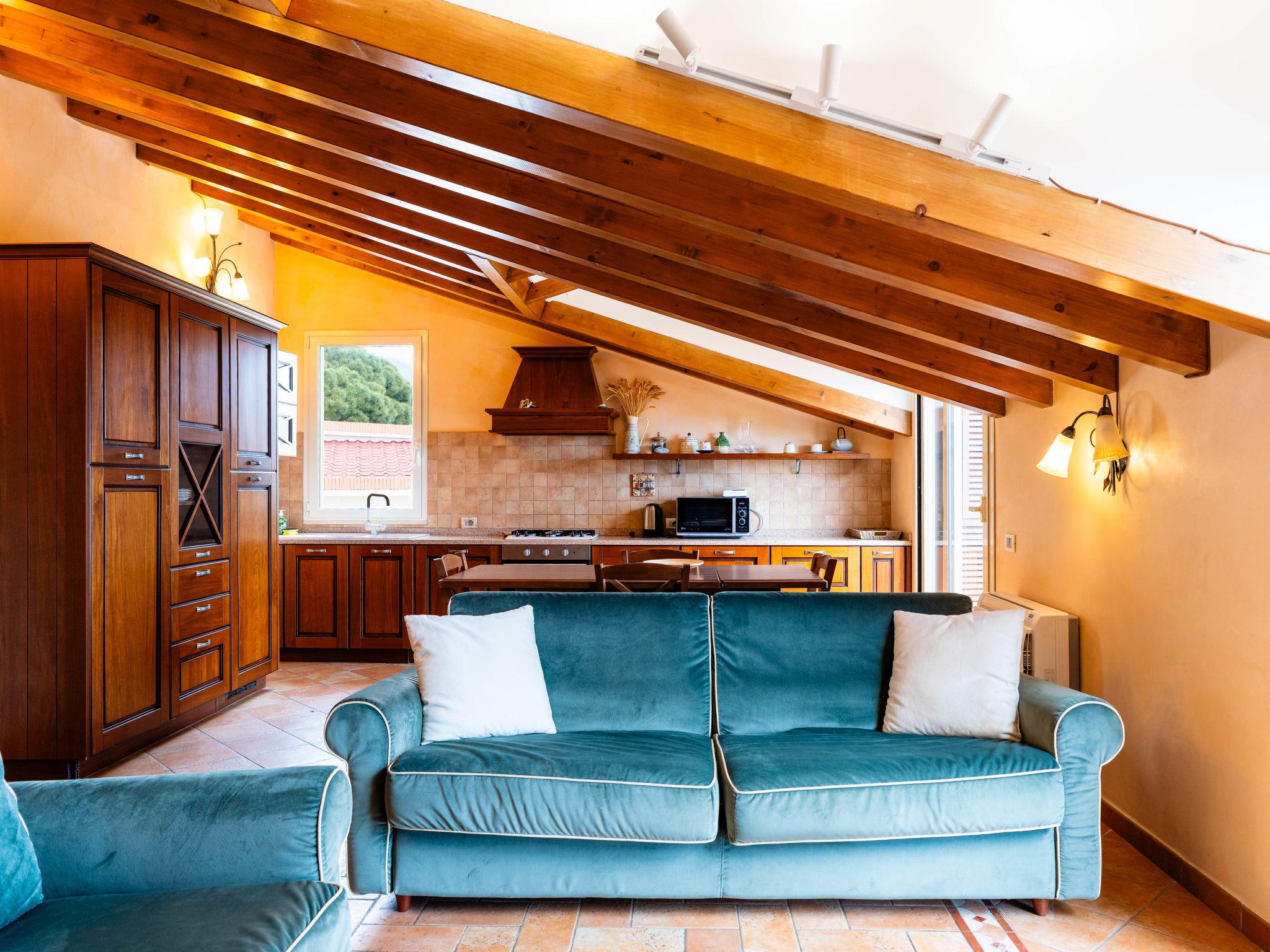 "Pineland app Mansardo", 3-room apartment on 2nd floor. Comfortable and cosy furnishings: 120 m2, with sloping ceilings with 1 sofabed (140 cm, length 200 cm). Exit to the balcony. 1 double bedroom. Exit to the balcony. 1 room with 1 bed (90 cm, length 200 cm), 1 sofabed (120 cm, length 200 cm). Kitchen-/living room (oven, 5 gas rings, toaster, kettle, microwave). Exit to the balcony. Shower/bidet/WC. Gas heating, air-conditioning, forced-air heating. Heating available only from 01.11. to 15.04. Balcony 20 m2. Panoramic view of the sea and the resort. Facilities: washing machine, baby cot for up to 2 year olds, hair dryer. Internet (WiFi, free). Please note: maximum 1 pet/ dog allowed. Private entrance, smoke alarm, no lift. IT009012B4V9HGBJWF