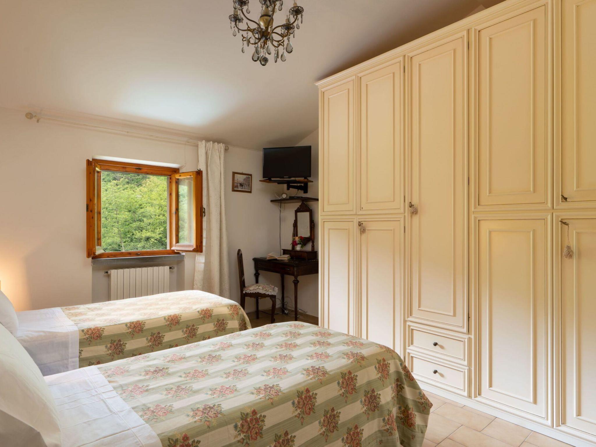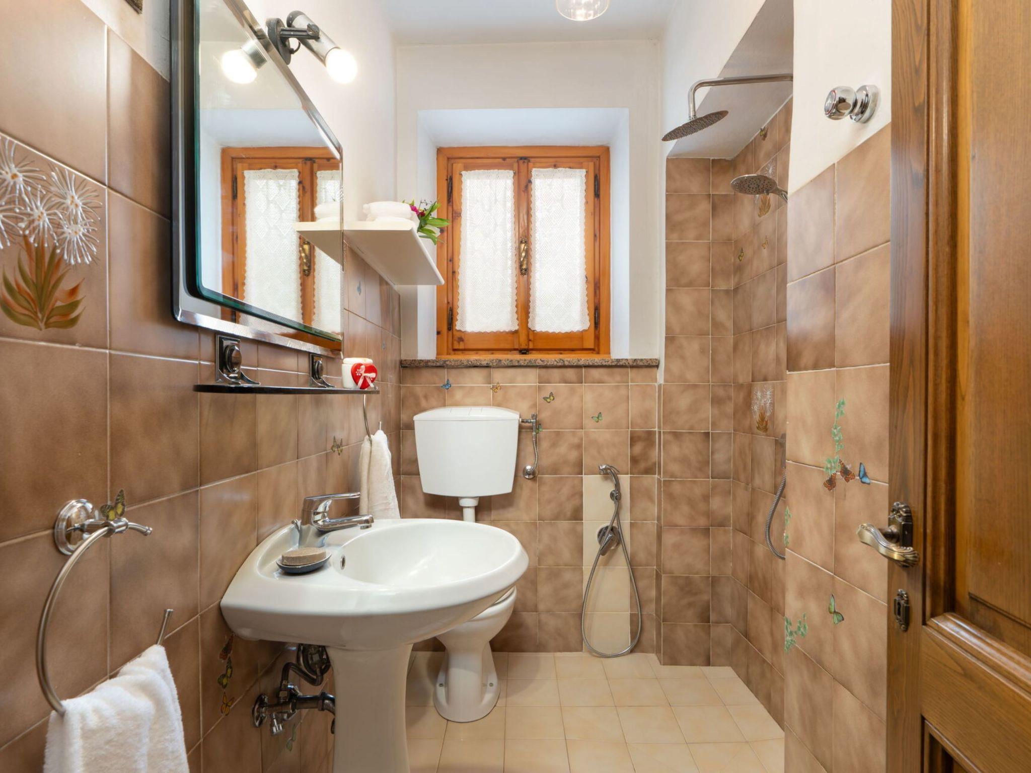 5-room house 100 m2 on 2 levels, on the ground floor. Comfortable and cosy furnishings: open living room with open-hearth fireplace and satellite TV. Living/dining room with 1 double sofabed, kitchen corner, bath/bidet/WC and satellite TV. Open kitchen (5 hot plates, oven, dishwasher, toaster, kettle, microwave, freezer, electric coffee machine). Shower/bidet/WC. Upper floor: 1 double bedroom with satellite TV. 1 room with 2 beds and satellite TV. 1 room with 2 beds and satellite TV. Shower/bidet/WC. Terrace furniture, barbecue. Facilities: iron, children's high chair, baby cot for up to 2 year olds, hair dryer. Internet (WiFi, free). Please note: suitable for families. Maximum 1 pet/ dog allowed. Smoke alarm, fire extinguisher. No internal connecting door between the separated properties. IT048004C2RVXUAGRK