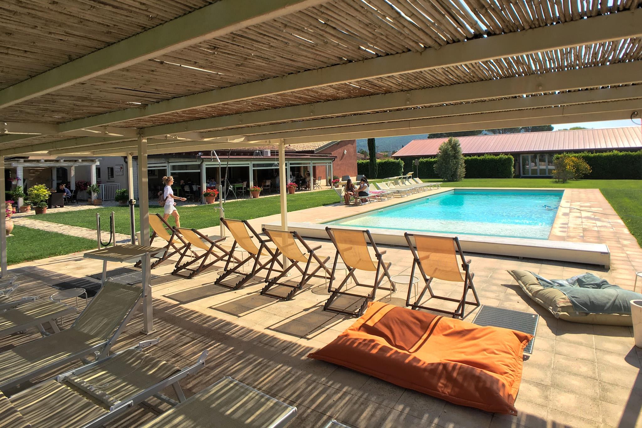 Beliggende i smukke Braccagni, ligger dette feriehus med aircondition i et resort med wellnesscenter, swimmingpool, udendørs jacuzzi og stor have. Besøg den toscanske kyst (15 km), hvor du finder smukke resorts som Castiglione della Pescaia (15 km) og Marina di Grosseto (25 km). Landskabet er også vidunderligt at udforske med storslået natur og attraktioner som middelalderbyen Massa Marittima (35 km). Ikke nok med det, du har også golf (100 m), tennis (10 km) og havet (15 km) i nærheden. Køb dagligvarer i supermarkedet 1 km væk. Gæsterne kan nyde smagen af typisk toscansk køkken i haven om sommeren, på verandaen eller i Sala delle Feste. Der er wellnesscenter (mini-hydromassagebassin, hammam, følsomt brusebad, sauna og massageområde), golfbane, cykler og elcykler, adskillige løbe- og vandreruter, ladestationer til elbiler, ortopædiske senge og allergivenlige puder, udendørsspil, herunder bordtennis, bordfodbold og billard. Bemærk venligst, at der med dit ophold er gratis adgang til swimmingpoolen (med jacuzzi), afslapningsområdet (med liggestole), legepladsen og et sæt toiletartikler.