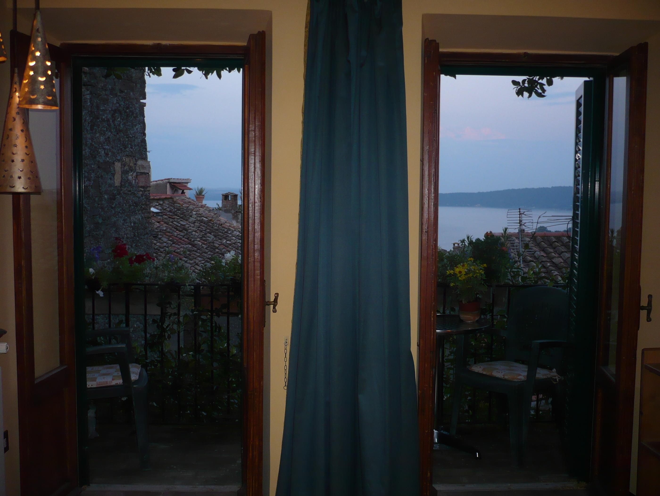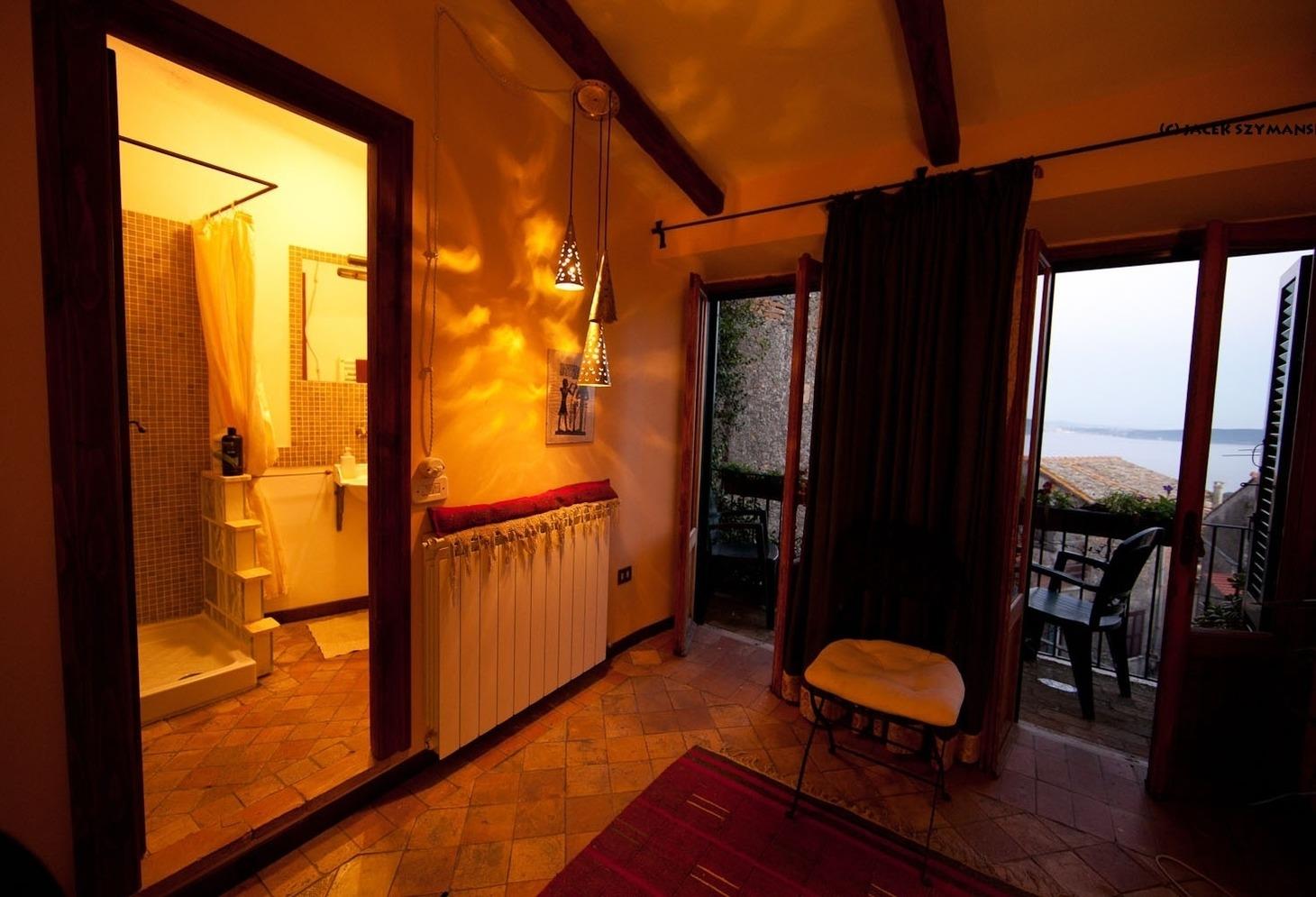 Ein herrlicher Blick über die Dächer der Altstadt auf den Bracciano See bietet sich vom Balkon des obersten Stockes: ein Wohnschlafzimmer (2 - 4 Schlafplätze, sowie Baby Bett verfügbar) mit Bad.