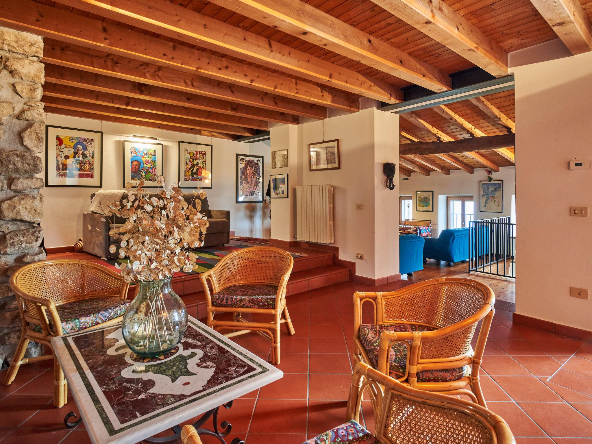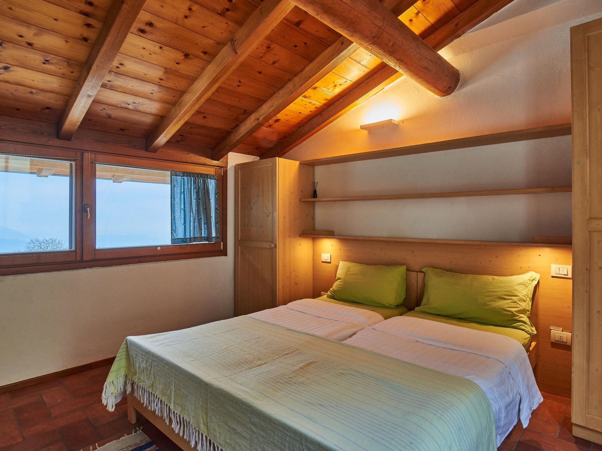 "Casa Stella + Casa Susanne", 5-room house 175 m2 on 3 levels. Beautiful and tasteful furnishings: 1 double bedroom with sloping ceilings. Exit to the patio. Kitchen-/living room (oven, dishwasher, 5 gas rings) with dining table. Exit to the patio. Shower/WC. On the lower ground floor: (exterior staircase) small living/dining room with dining nook, kitchen corner and shower/WC. Exit to the terrace. Upper floor: open living/sleeping room with 1 double sofabed and open-hearth fireplace (only for decoration), satellite TV. Exit to the terrace. 2nd upper floor: with sloping ceilings, 2 double bedrooms. Shower/bidet/WC. Gas heating. Terrace 12 m2, roofed, large patio 25 m2. Terrace furniture, barbecue. Distant view of the lake. Facilities: washing machine. Internet (WiFi, free). Please note: one double bedroom is outside the apartment. Non-smokers only. Private entrance. No internal connecting door between the separated properties. No mandatory extra charges to be paid on-site. IT023018C2U4KIPP6T