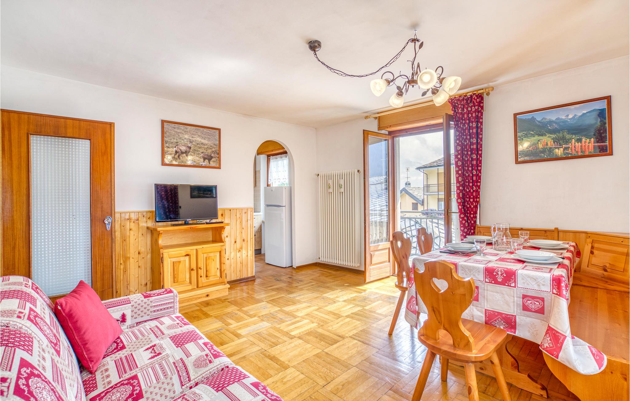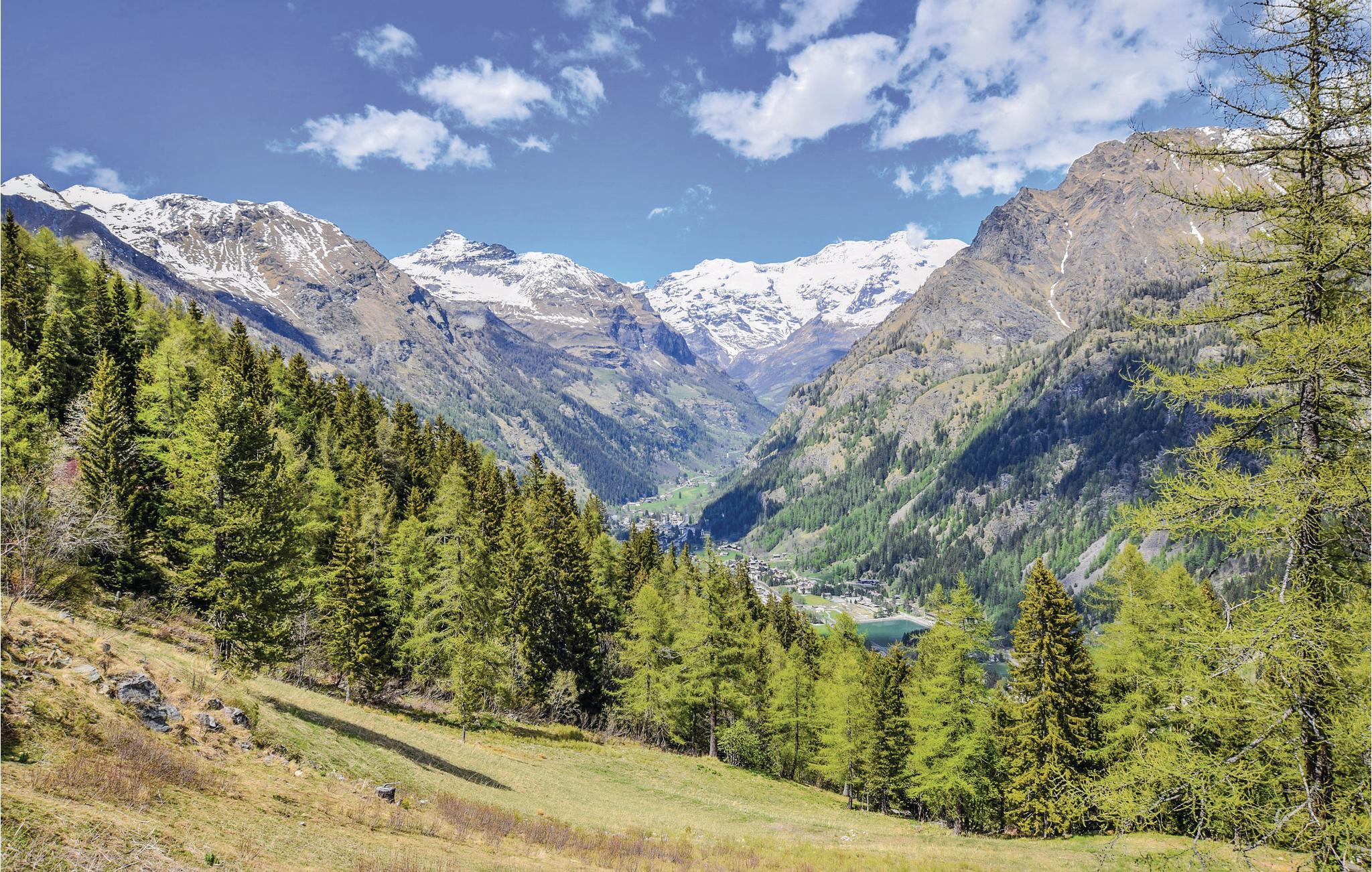 Lige i centrum af Brusson og med udsigt til bjergene ligger denne ferielejlighed på første sal i en lille bygning fra 1970erne. Brusson (1338 moh) er en turistby i Valle d'Ayas som er meget populær blandt familier. I Champoluc 10 km fra huset finder I skiliften til skiområdet Monte Rosa Sky. Her er 180 km piste, hvor I kan køre freeride, heliskiing, sommerski og downhill. Derudover kan I gå på klatreskole og bestige bjerge på ski. I Brusson er der over 30 km langrendsløjper, mens "Foyer de fond" har alt, hvad langrendsentusiaster kan forlange. Der er også gode vandremuligheder i området. I Estoul finder I et skiområde, som er velegnet for familier. I kan også tage til disse skiområder: Gressoney (56 km), Cervinia (57 km) og La Thuile (95 km). Hvis I vil forkæle jer selv, kan I besøge de berømte kurbade i Saint Vincent (22 km). Torino ligger 95 km fra lejligheden. I Aosta (57 km) er der talrige romerske og romanske seværdigheder. Her kan I smage DOP-råvarer som Lardo di Arnad og fontinaost.