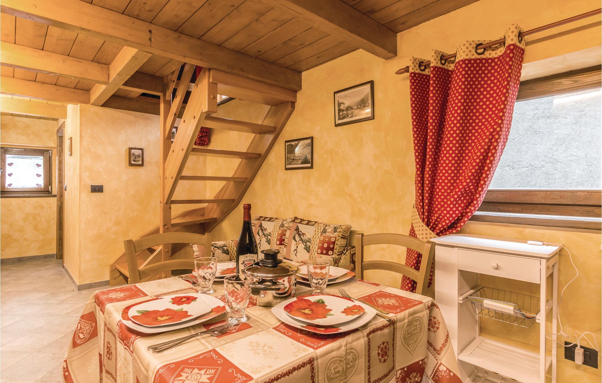 I Valle d'Ayas, som er kendt for sit milde klima og er meget populær blandt familier, ligger denne ferielejlighed i Brusson, i en række af historiske hus der er gennemrenoverede. Skisportsgæster har meget at vælge mellem: 10 km til Champoluc med skilifterne til Monterosa Sky, med 180 km pister, freeride, heli-skiing, klatreskole, ski-bjergbestigning, sommer skiløb, alpine pister mv. I selve Brusson er der over 30 km langrendsløjper. I Estoul er der flere skilifte, særligt velegnet til familier. Gressoney (56 km), Cervinia (57 km) og La Thuile (95 km) er andre kendte skisportssteder. Der er kilometervis af vandrestier gennem dalens smukke natur. Her er også mange former for kunst og kultur: I Aosta (57 km) er der utallige romerske og romanske monumenter. Smag også på regionens udsøgte DOP-produkter: Lardo di Arnad og Fontina. I Saint Vincent, 22 km, er der kurbade og et bredt udvalg af wellnesscentre. 95 km til smukke Torino, Italiens første hovedstad, med sine mange monumenter og museer, egyptisk museum og det kongelige palads i Venaria Reale!