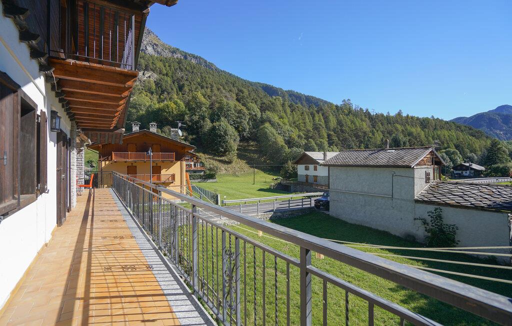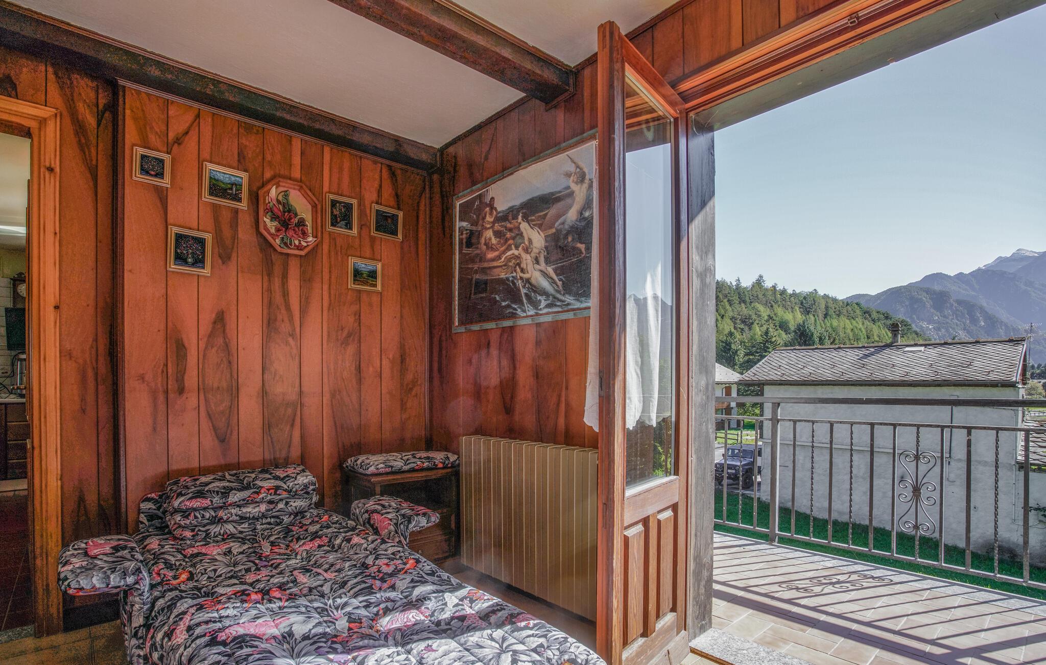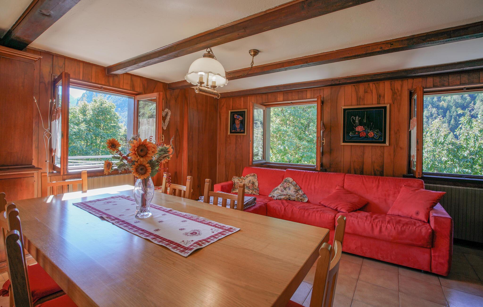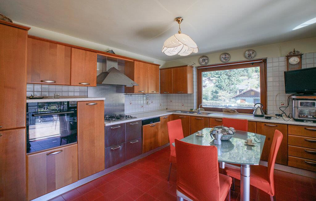 Jeres hyggelige feriehus i Vollon byder på rustik charme og varme træelementer. Den dejlige opholdsstue med komfortable siddepladser og et stort spisebord er ideel til hyggelige aftener med familie eller venner. Gør det behageligt foran brændeovnen og mærk husets hygge brede sig. Gå ud på balkonen og nyd den vidunderlige udsigt over de omkringliggende bjerge og den grønne dal. Her kan I slappe af med en kop kaffe eller te og nyde roen i naturen. Brug det veludstyrede køkken til at tilberede jeres yndlingsretter og nyd dem med udsigt over det maleriske landskab.
