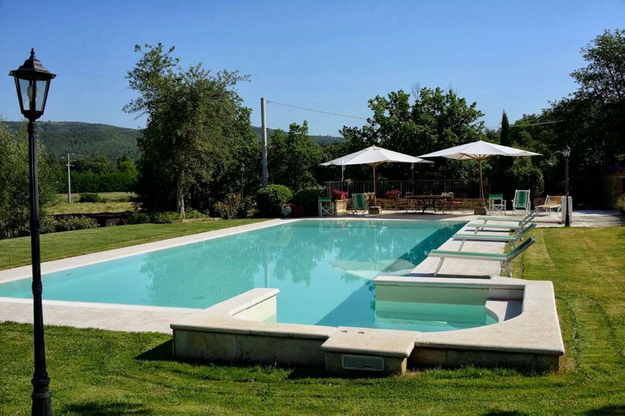 Beliggende i de bølgende bakker i Toscanas landskab, tilbyder dette autentiske feriehus i Bucine et fredeligt og naturskønt tilflugtssted for familier eller venner, der søger plads, komfort og en ægte italiensk oplevelse. Den 2-etagers villa har komfortabel plads til 10 gæster med et varmt og indbydende interiør. Opholdsområderne byder på traditionel charme blandet med moderne bekvemmeligheder, hvilket skaber et indbydende rum til fælles måltider og afslappede aftener. Det veludstyrede køkken gør det nemt at lave mad selv, og de lyse opholds- og spisestuer giver plads til, at alle kan samles, hygge sig og slappe af. Sovepladserne er rummelige ovenpå med 5 store soveværelser, alle med eget badeværelse. Udenfor bliver din private swimmingpool hjertet af oplevelsen og tilbyder forfriskende dukkerter på varme toscanske dage og masser af plads til solbadning. Den omkringliggende have og terrasse med havemøbler er ideelle til udendørs spisning, morgenkaffe i solen eller fredelige aftener under åben himmel. Det indhegnede udendørsområde tilføjer privatliv og sikkerhed for børn eller kæledyr. Beliggende nær den charmerende by Bucine, giver villaen dig nem adgang til lokale caféer, bagerier og traditionelle trattorier, hvor du kan nyde toscansk køkken. Udforsk nærliggende middelalderlandsbyer, naturskønne landeveje og bølgende landskaber, der kendetegner denne berømte region. Dagsture til Arezzo, Siena, Firenze eller vinmarkerne i Chianti-regionen er også inden for rækkevidde. Med praktiske bekvemmeligheder som aircondition, Wi-Fi, privat parkering og gennemtænkt planløsning overalt blander dette feriehus rustik karakter med hverdagens bekvemmeligheder - og skaber den perfekte base for en mindeværdig toscansk ferie.