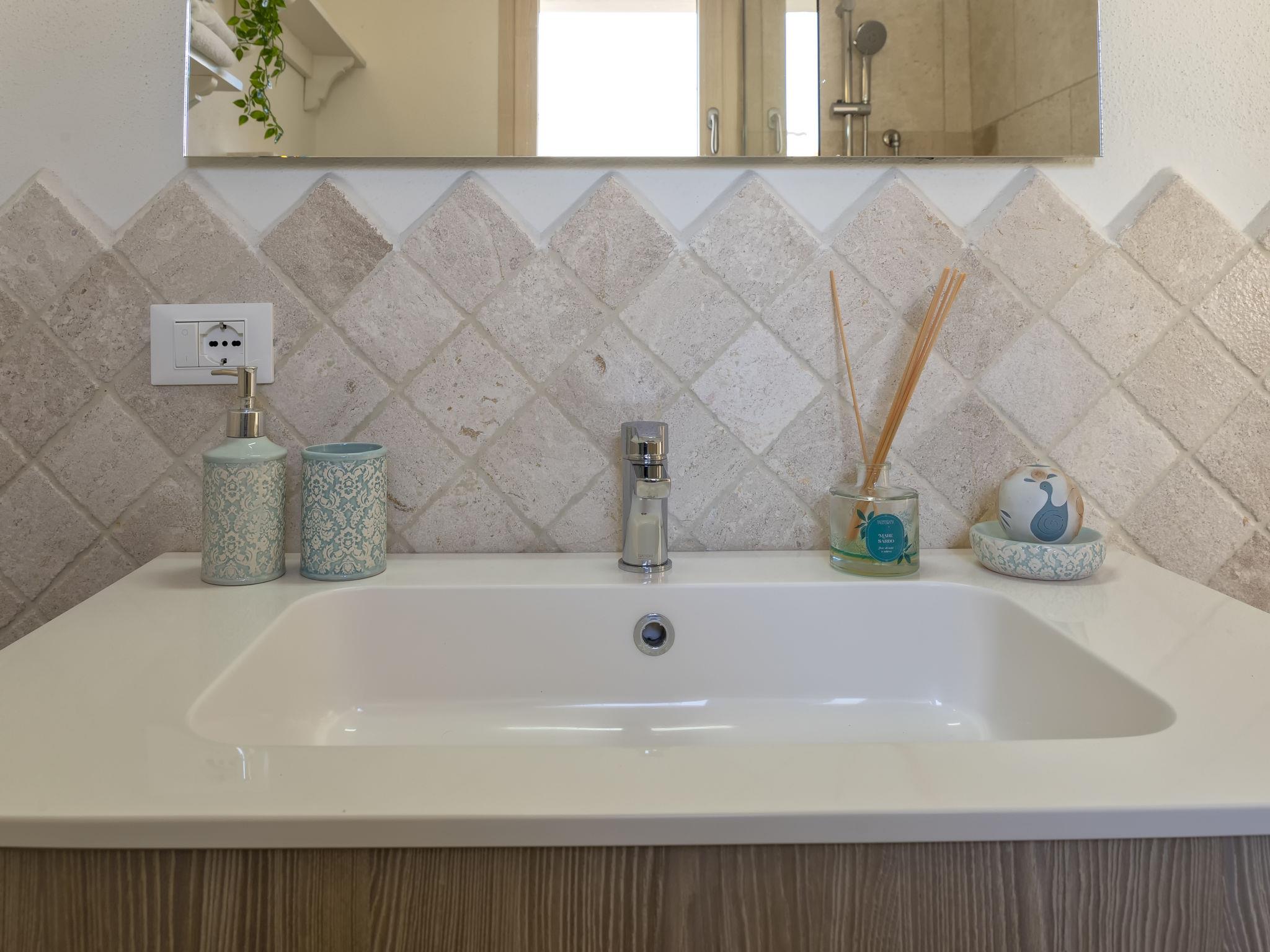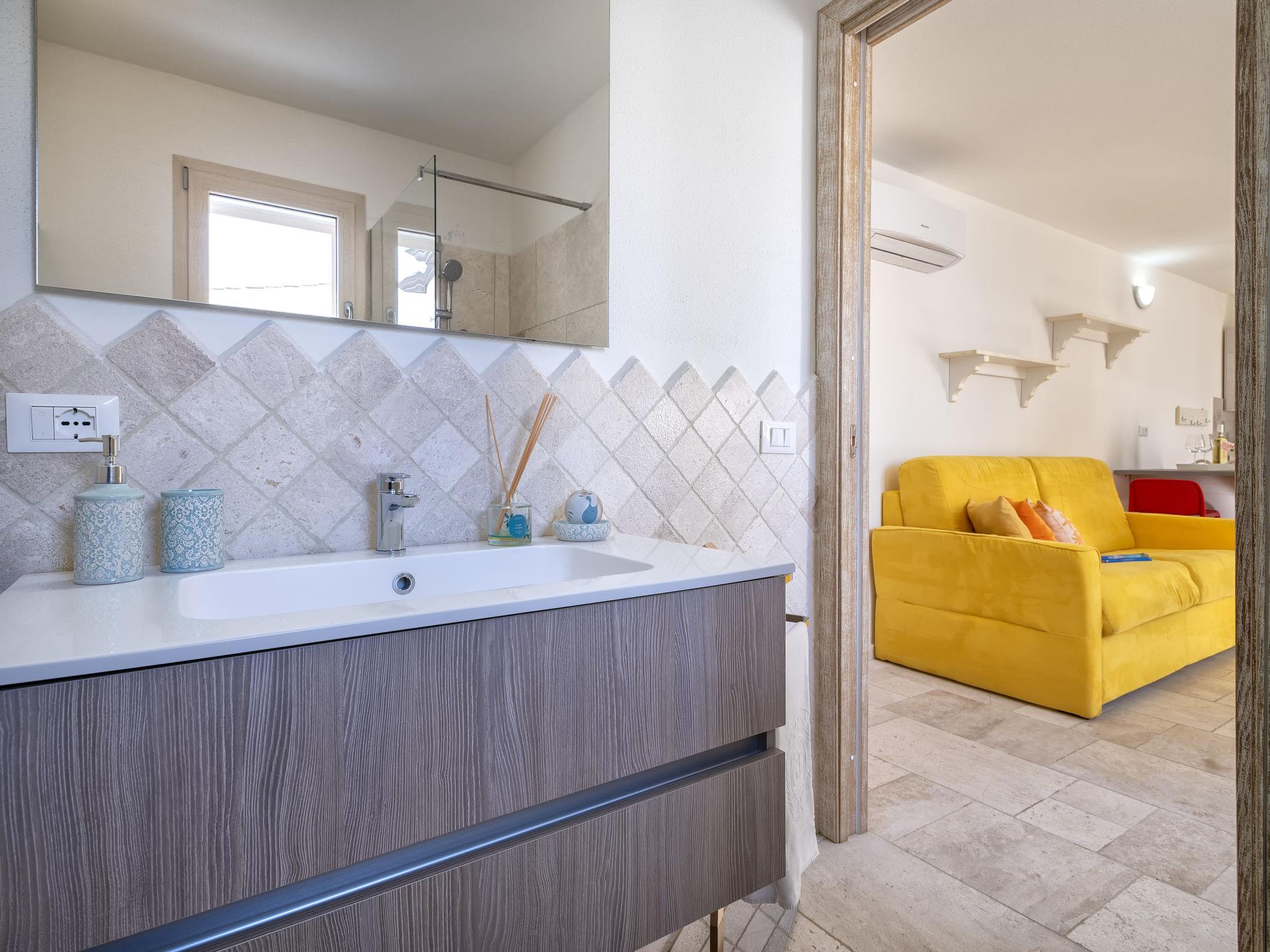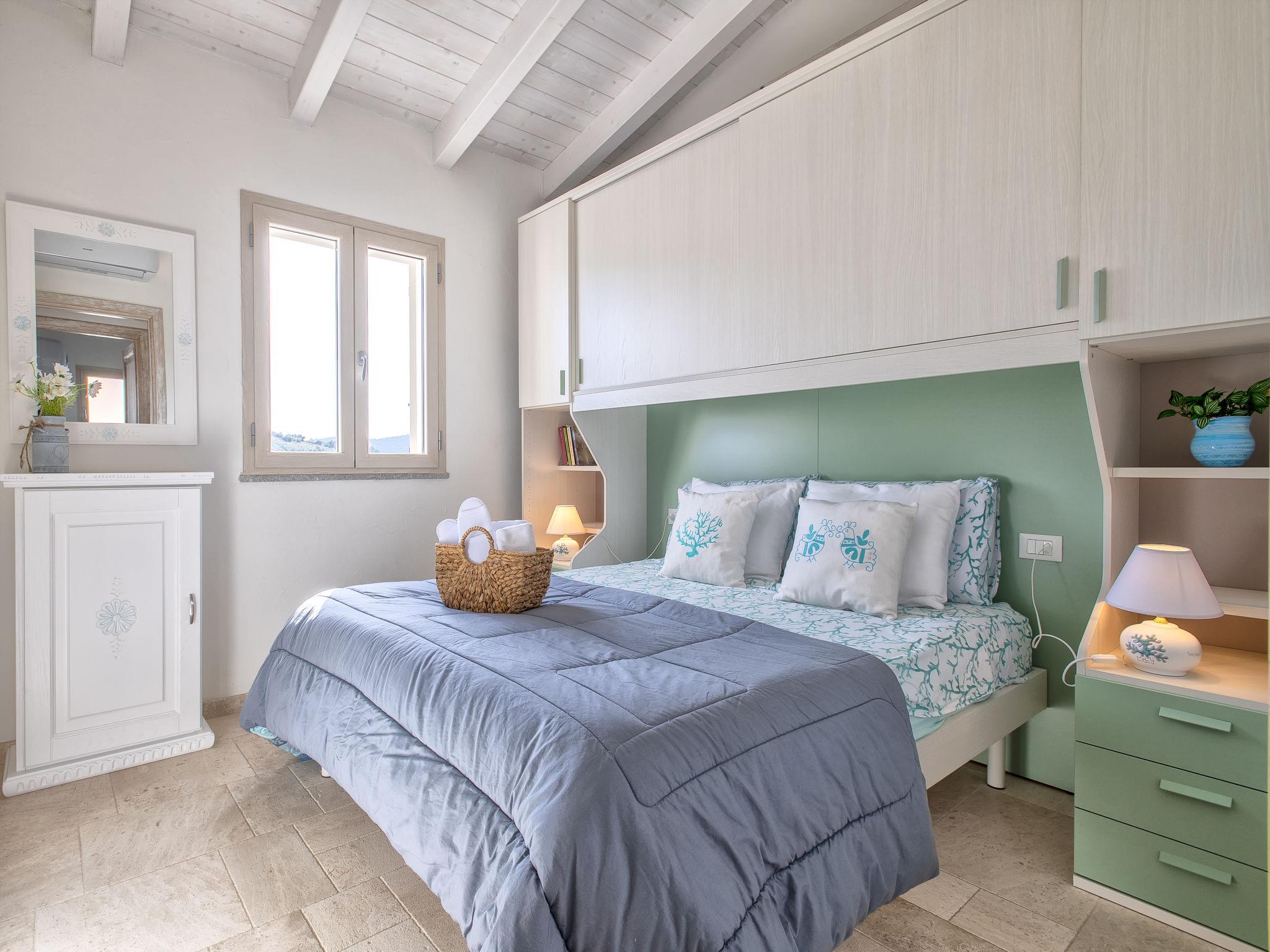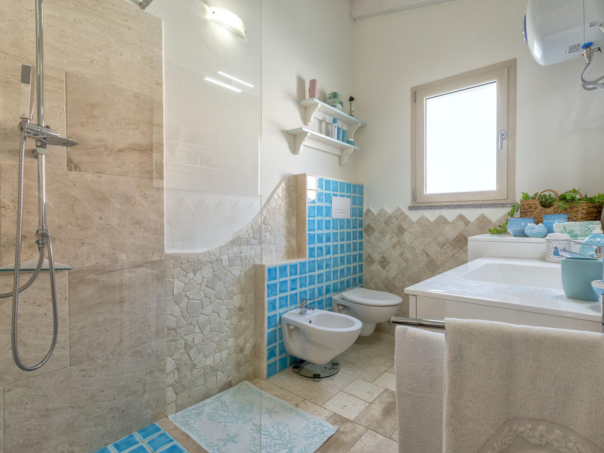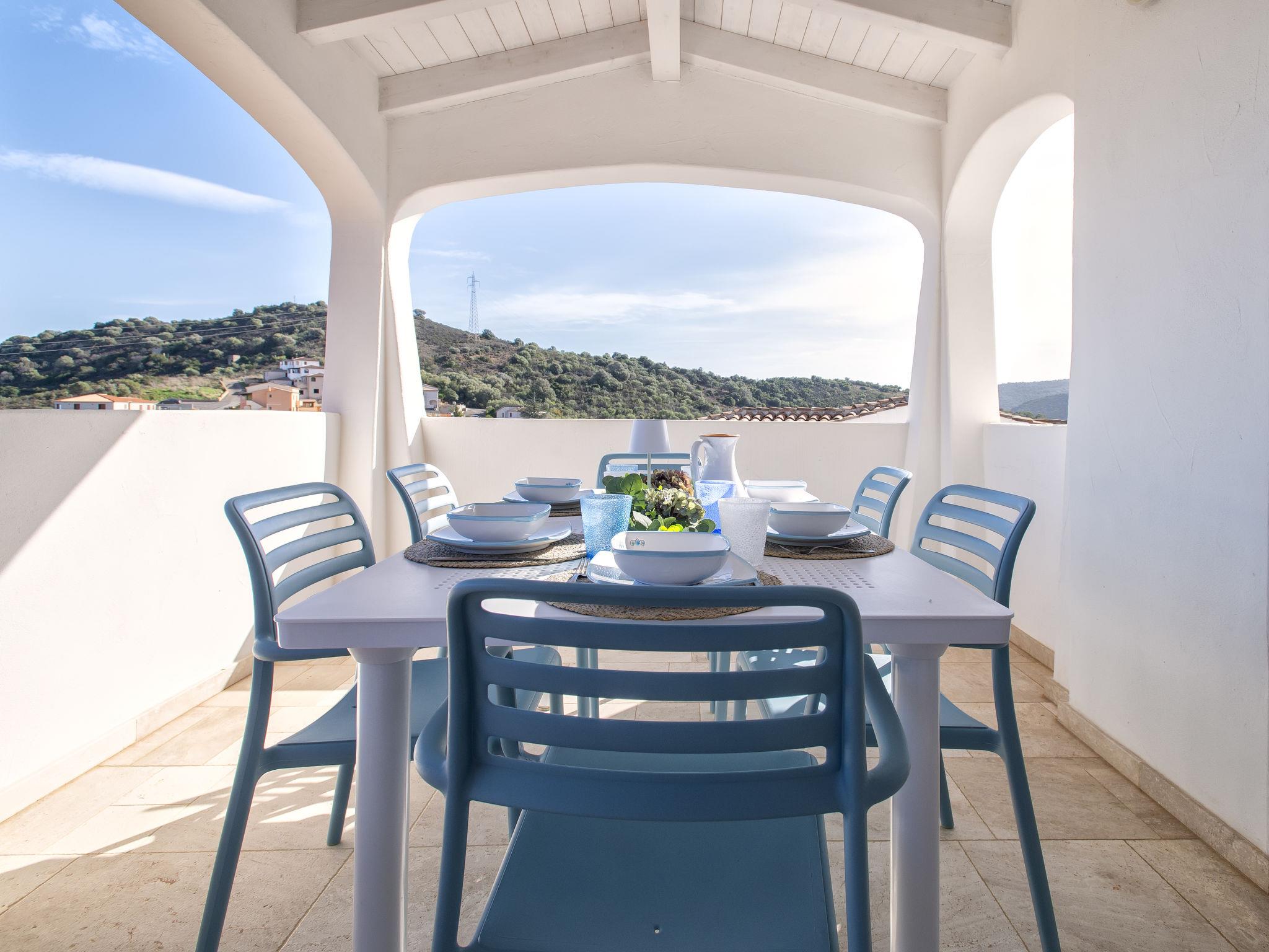 Modern 2-family house "La Conchiglia D'oro", 2 storeys, semi-detached. In the district of San Lorenzo 4 km from the centre of Budoni, in a quiet, sunny position on top of a hill, in the residential district, residential area (villas), 5 km from the sea, 5 km from the beach, in a cul-de-sac. Private: swimming pool (6 x 3 m, depth 150 cm, seasonal availability: 19.Apr. - 30.Oct.). Outdoor shower, parking (limited number of spaces) at the house. Grocery 600 m, restaurant 500 m, bar 400 m, bus stop 50 m, sandy beach "Budoni" 5 km. Sports harbour 5 km, surf school 5 km, tennis 5 km. Nearby attractions: Budoni 5 km, Porto Ottiolu 12 km, San teodoro 18 km, Olbia 40 km, Posada 9 km, Porto Cervo 68 km. Please note: car recommended, no lift. The pool is cleaned every Monday.
