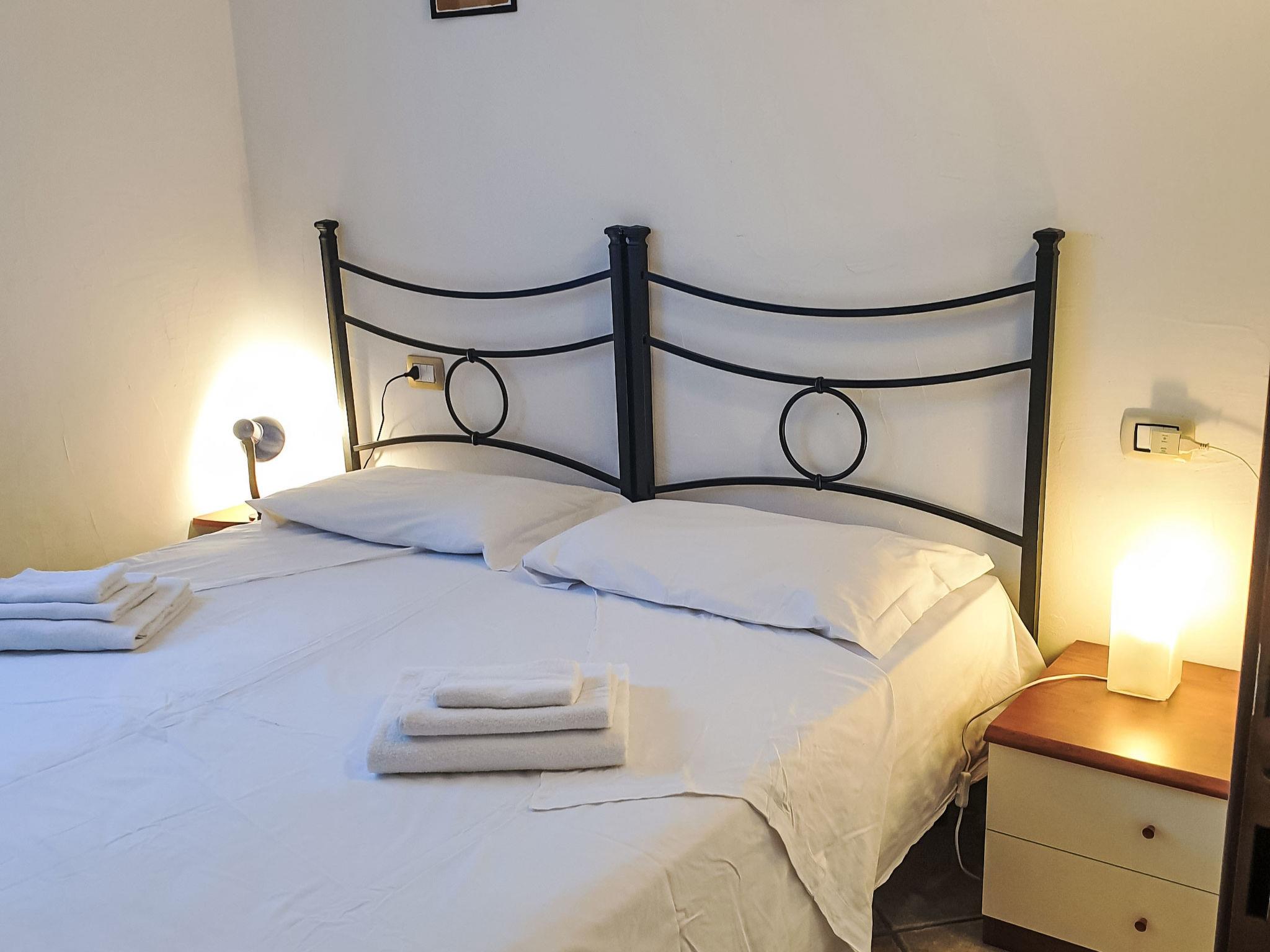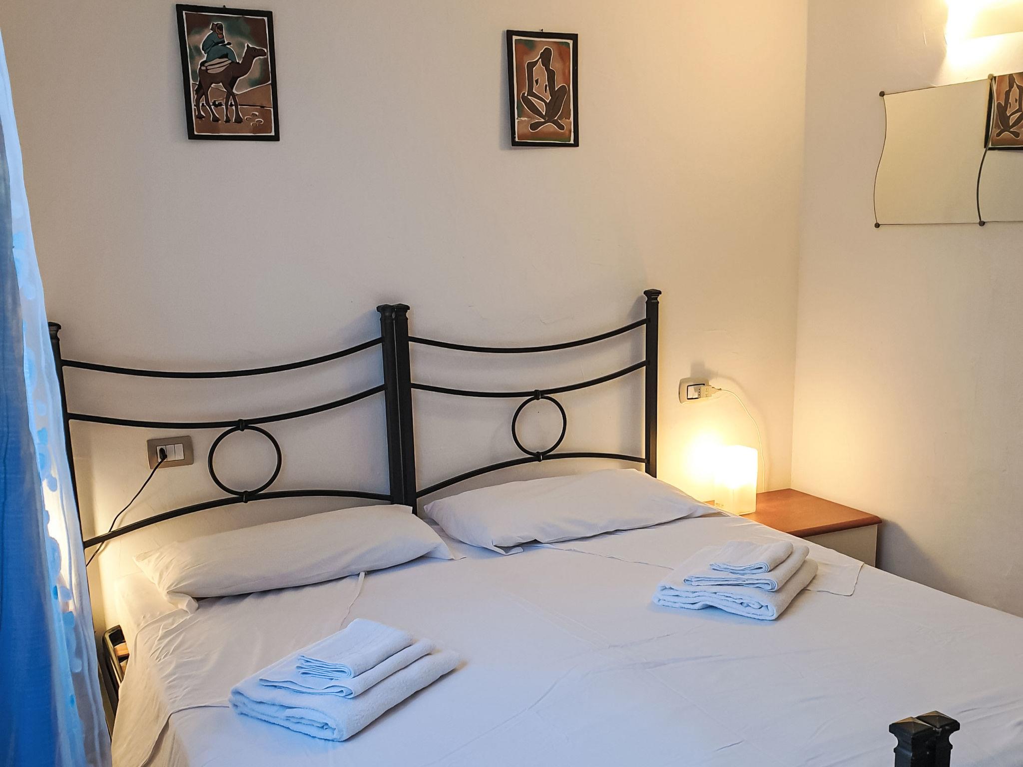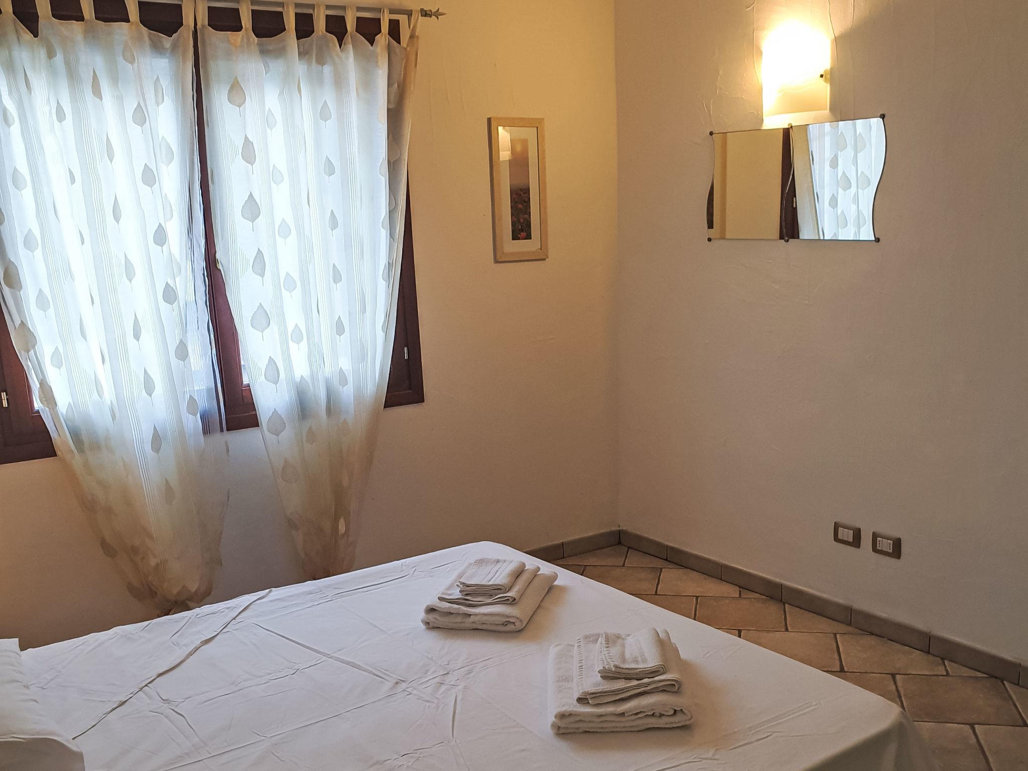3-room terraced house 65 m2, on the ground floor. Practical and comfortable furnishings: living room with 1 sofabed and satellite TV. 1 room with 1 double bed. 1 room with 2 beds. Kitchenette (oven, Gas stove, freezer, electric coffee machine) with dining table. Shower/bidet/WC. Electric heating, air-conditioning. Terrace 9 m2, roofed. Terrace furniture, conservatory. Facilities: washing machine, baby cot, hair dryer. Internet (WiFi, free). Please note: non-smoking house. Smoke alarm, fire extinguisher. Bed layout is flexible. There are more sleeping options available than the maximum number of people allowed which may, however, not be exceeded. IT090091C2000T7161