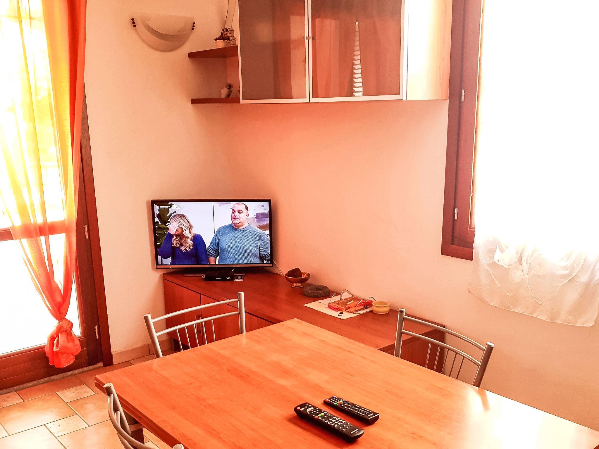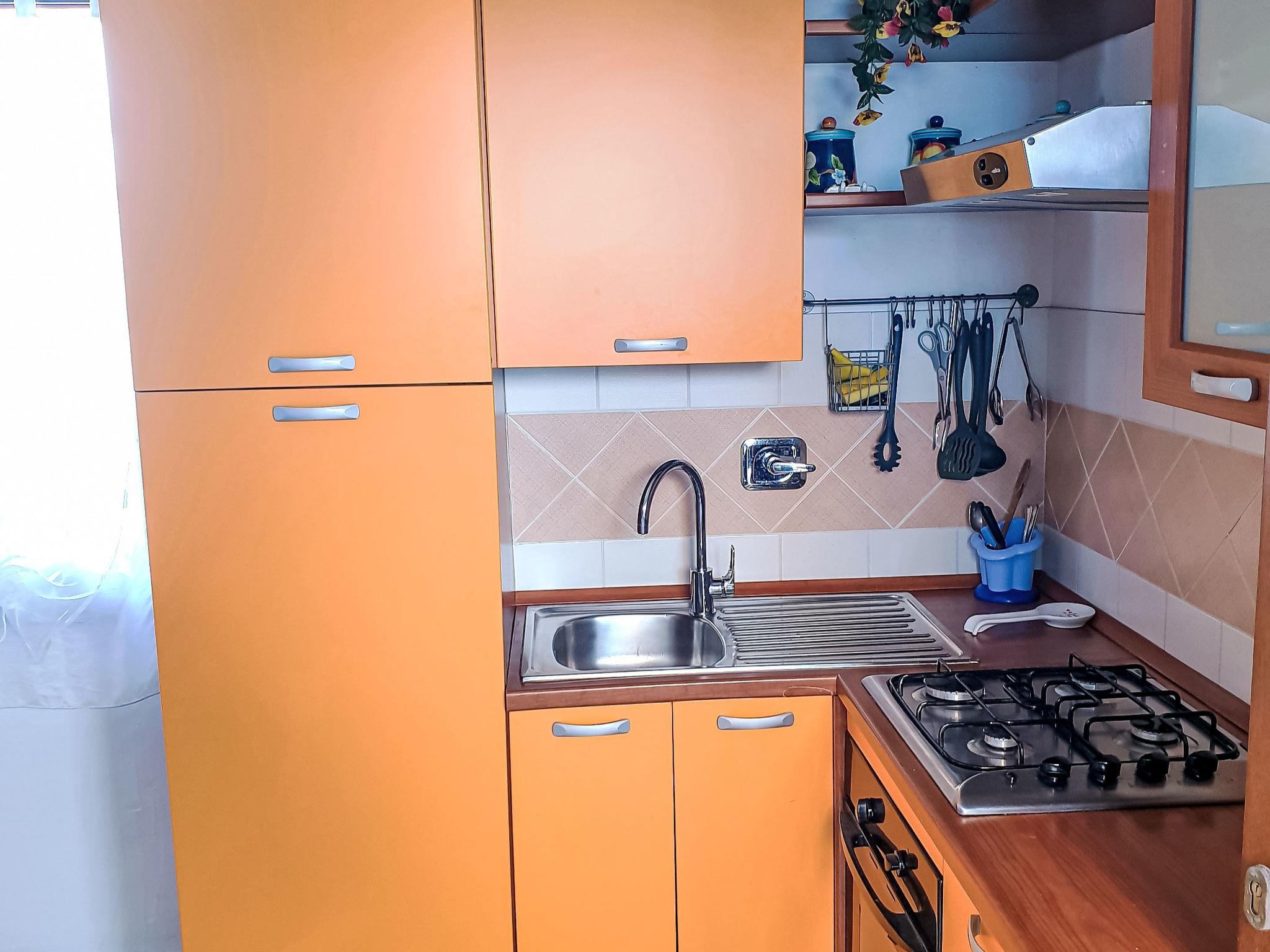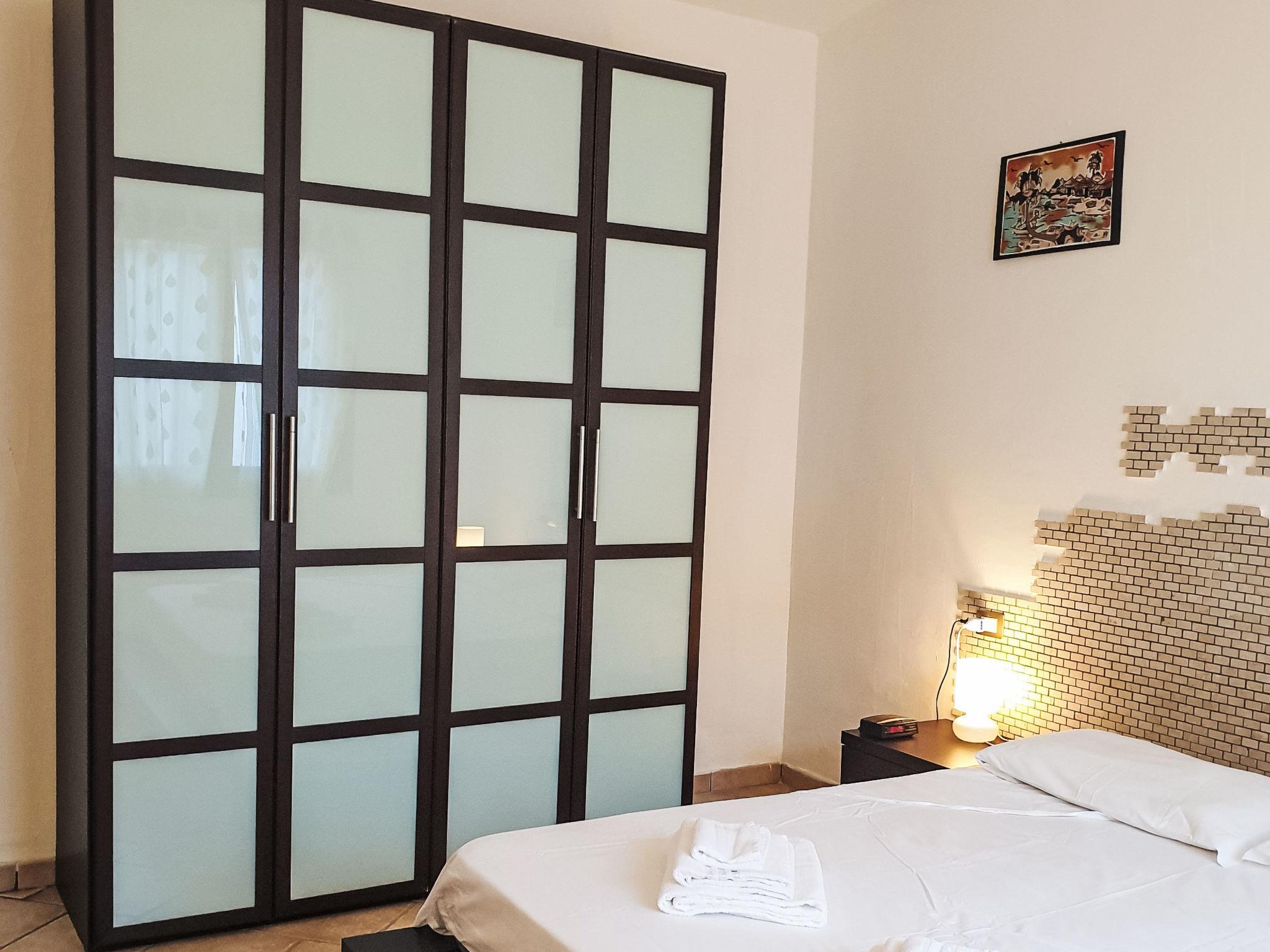 3-room terraced house 65 m2, on the ground floor. Practical and comfortable furnishings: living room with 1 sofabed and satellite TV. 1 room with 1 double bed. 1 room with 2 beds. Kitchenette (oven, Gas stove, freezer, electric coffee machine) with dining table. Shower/bidet/WC. Electric heating, air-conditioning. Terrace 9 m2, roofed. Terrace furniture, conservatory. Facilities: washing machine, baby cot, hair dryer. Internet (WiFi, free). Please note: non-smoking house. Smoke alarm, fire extinguisher. Bed layout is flexible. There are more sleeping options available than the maximum number of people allowed which may, however, not be exceeded. IT090091C2000T7161