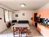 Stueetage: (Stue(dobbeltsovesofa), åbent køkken(kogeplade, ovn, køle-fryseskab), soveværelse(dobbeltseng), badeværelse(bruser, håndvask, toilet, bidet, vaskemaskine)) patio, havemøbler, parkering, swimmingpool(deles med andre gæster, opened from 1/2 Jun upto and including 1/2 Sep)