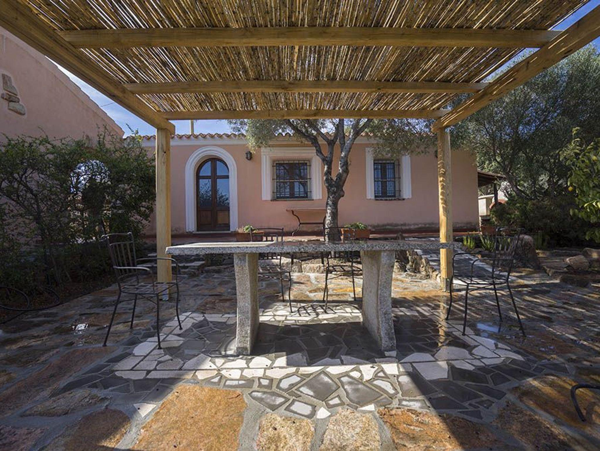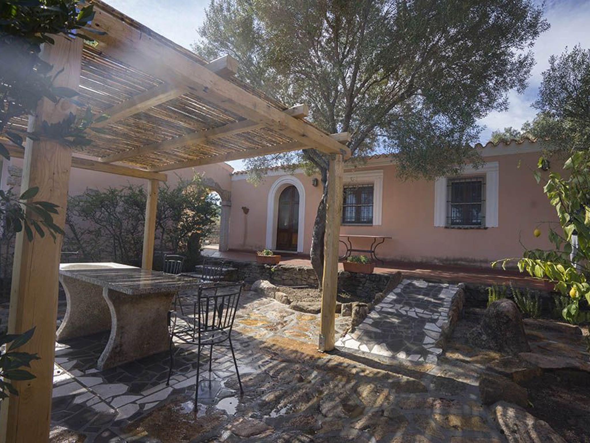 Wohnen Sie doch, wo der Pfeffer wächst! Alle Hirtenhäuser bei Sardafit haben besondere Reize! War es in der 112 die Terrassenlandschaft mit den archaischen Oliven, so fällt bei 115 der große Pfefferbaum auf, der auch in Sardinien überaus rar und eine willkommene Zuat beim Barbecue ist. Und natürlich die gelungene Einbettung in die Landschaft auf, die jedes der drei Einfamilienhäuser auf dem Grundstück der 115 gleichermaßen kennzeichnet: