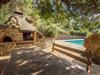 In Richtung Meer gleitet der Blick nur über Natur, und schon dieser Ausblick sucht an Schönheit seinesgleichen! Im Tal, etwa 50 Meter unterhalb der Häuser, befindet sich ein unter Bäumen versteckter Grillplatz und ein Pool, exklusiv für die 115. Dorthin führt ein wunderschöner Weg in Granitsteinen, vorbei an einem rechts der Straße liegenden Gärtchen mit allerlei Bäumen, darunter Kiwi, Zitrus- und Feigenbäume. Rechts davon gedeihen Melonen und anderes Gemüse. Der Vorteil dieses Pools ist, dass er seitlich von den Häusern liegt und darum deren beschauliche Athmosphäre nicht tangiert.