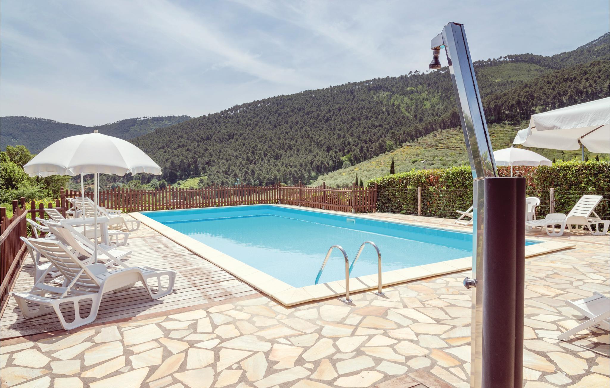 På Monte Pisanos bjergside, over landsbyen Buti, omgivet af oliventræer og vinbjerge, i en by der er rig på traditioner, gastronomiske festivals og producenter af DOP-olivenolie og med en skøn panoramaudsigt, ligger denne skønne ejendom. Den består af to karakteristiske stenhuse med i alt fire lejligheder i toskansk stil. Når først I er ankommet, kan I bare lade bilen stå for restauranter, dagligvarebutikker og forretninger af alle slags er i gåafstand. Til alle jer, der gerne vil holde en skøn afslappet ferie, er her en 7.000 m² stor grund hvor I kan nyde ferien under åben himmel. Her er der solparasoller, liggestole, borde, stole og en grill. En fælles pool (mellem 1,1 m og 2 m dyb) er åben til kl. 20.30. Til hver lejlighed hører et udendørs område med havemøbler. Afstande til seværdige udflugtsmål: Firenze 75 km, Pisa 25 km og Lucca 25 km. Se også ITP273-ITP274.