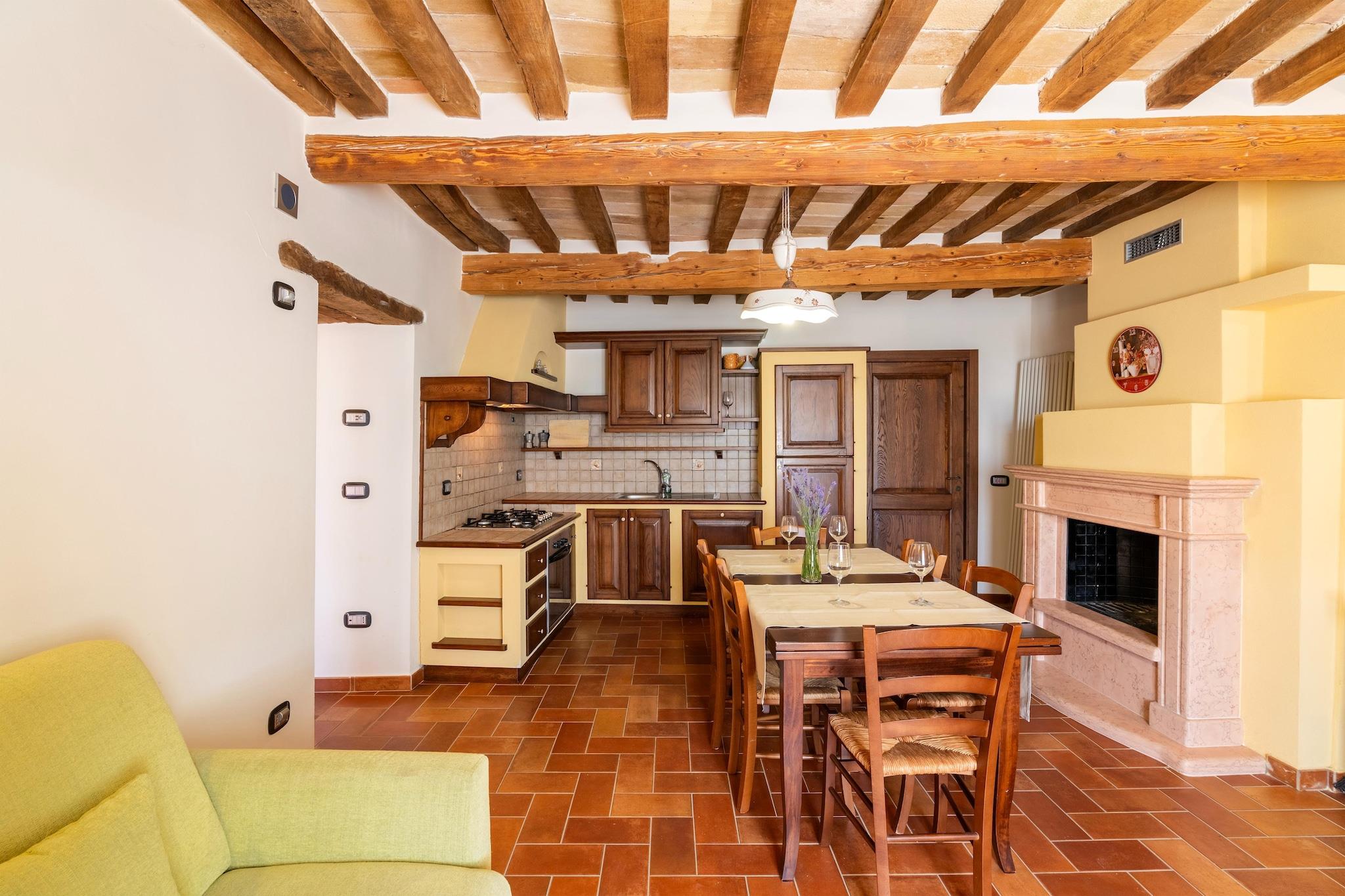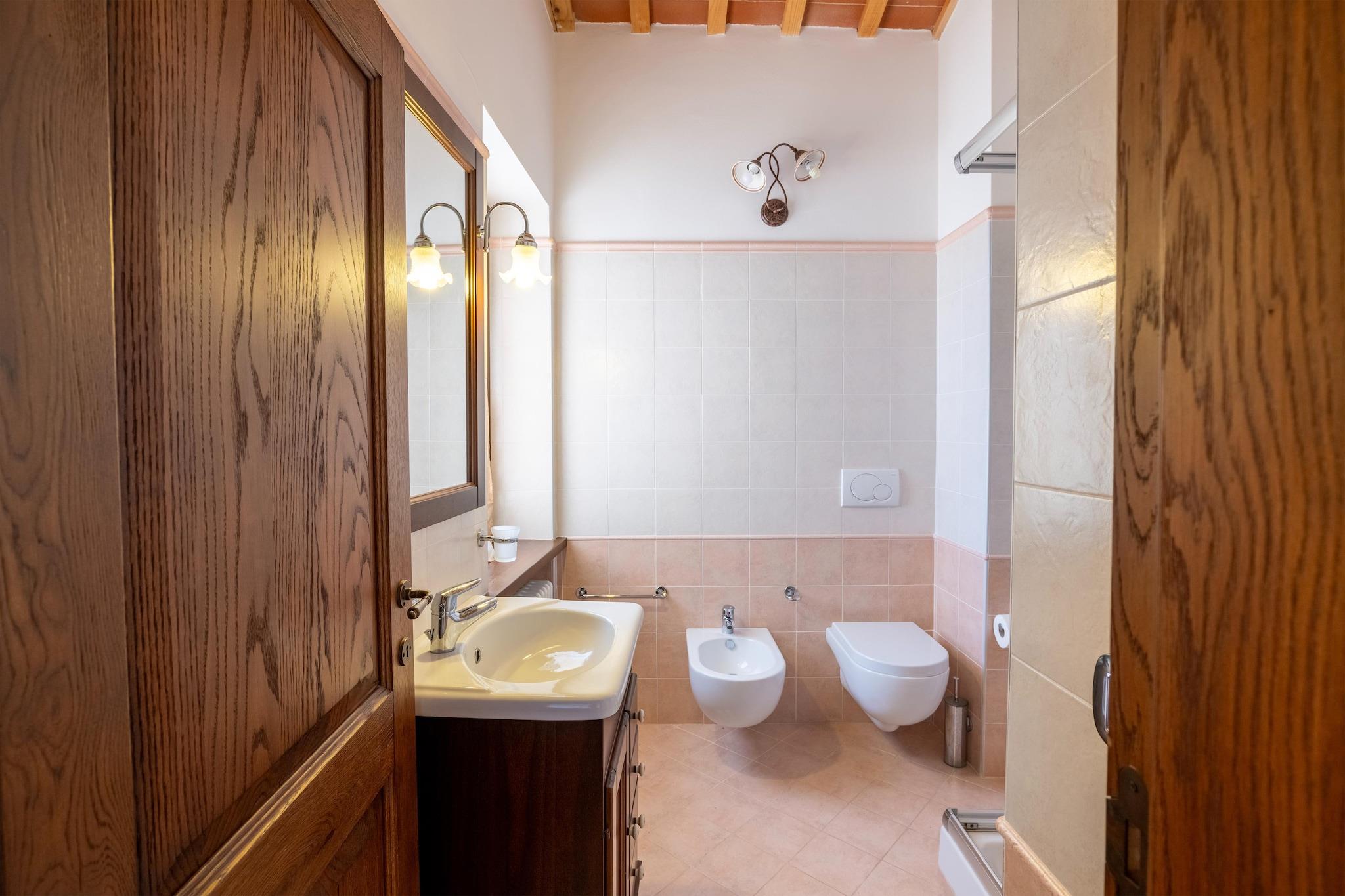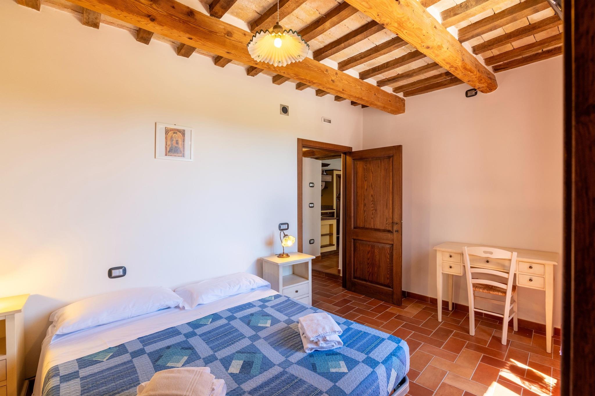 En bakketop flugt med panoramaudsigt Beliggende på en naturskøn bakketop tilbyder dette smukt restaurerede landsted en flot udsigt og rolige omgivelser. Stuehuset er blevet omhyggeligt renoveret, der kombinerer rustik charme med moderne bekvemmeligheder. Lejligheden har rummelig indretning, tre store soveværelser, tre badeværelser og en hyggelig stue med sovesofa. Gæsterne kan nyde udendørs spisning i deres private udendørs rum, mens en forfriskende swimmingpool kun få skridt væk inviterer dig til at slappe af i solen på liggestole eller under parasoller. Udforsk tidløse landsbyer og kulturelle perler Området er rigt på kultur, historie og naturskønhed. Inden for en kort køretur kan du udforske charmerende middelalderlandsbyer og -byer, beundre renæssancekunst og opdage skjulte hjørner af Italien væk fra turistmængder. Fra århundreder gammel arkitektur til håndværksbutikker, hver udflugt lover noget særligt. Naturelskere vil sætte pris på de blide bølgende landskaber, vandrestier og stille landeveje perfekt til cykling. Smag af regionen og afslappet forkælelse Kun en kort gåtur fra lejligheden venter en anden pool - komplet med en bar og en lokal restaurant. Nyd en aperitivo i solnedgangen eller forkæl dig selv med autentiske regionale retter lavet af lokale råvarer. Trøfler, fine vine og årstidens specialiteter er kun begyndelsen på din kulinariske rejse. Uanset om du spiser under stjernerne eller nipper til vin ved poolen, er hvert øjeblik her designet til komfort, smag og ro.